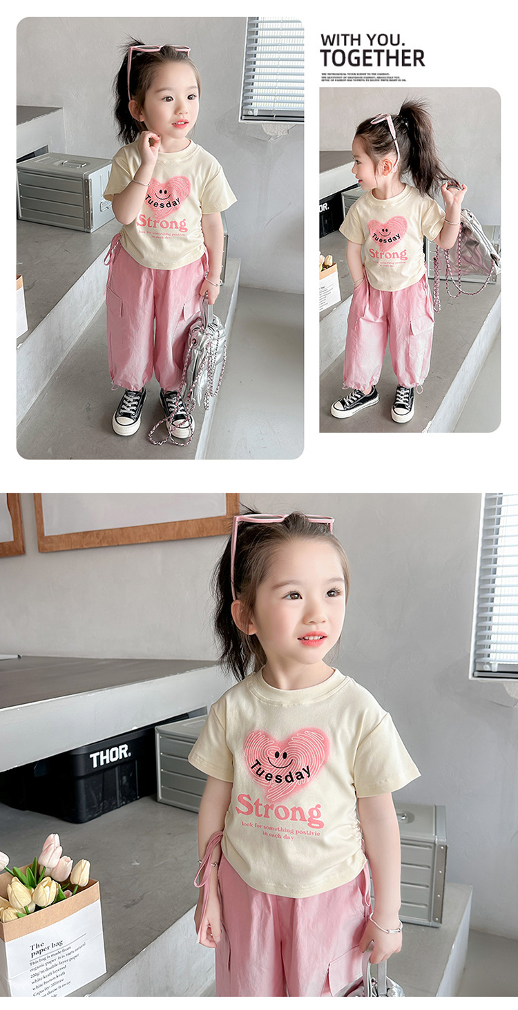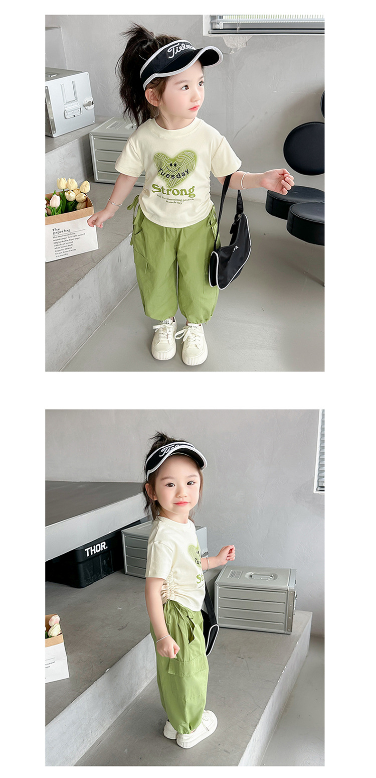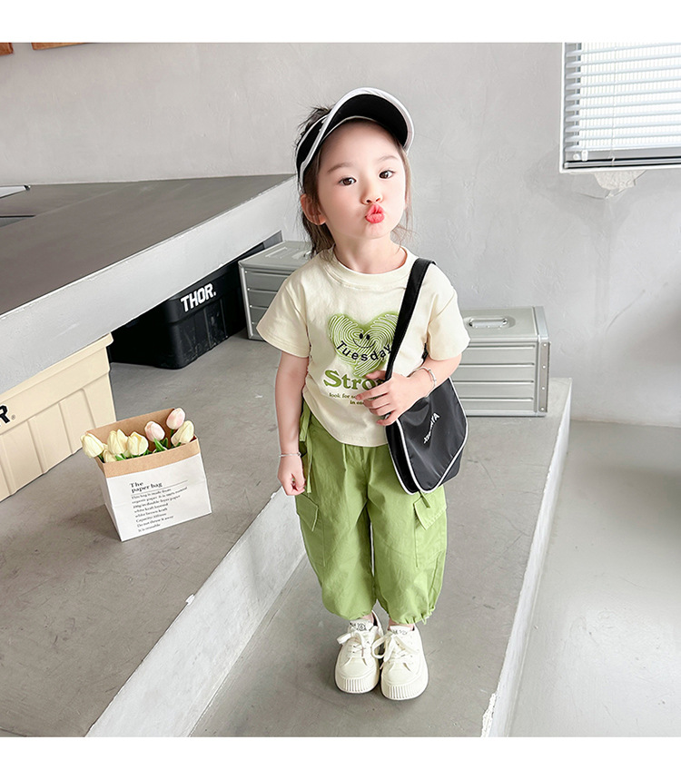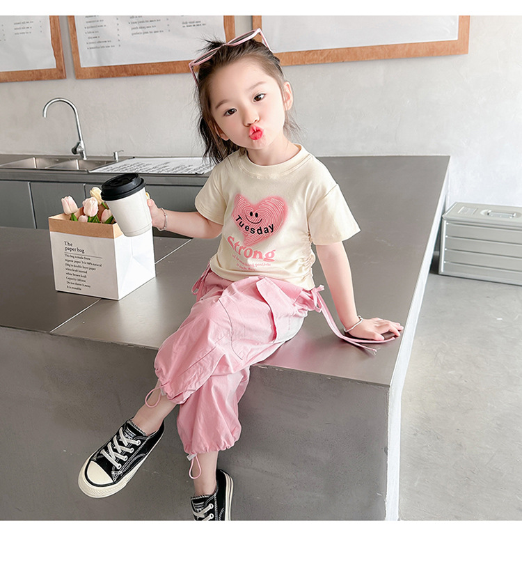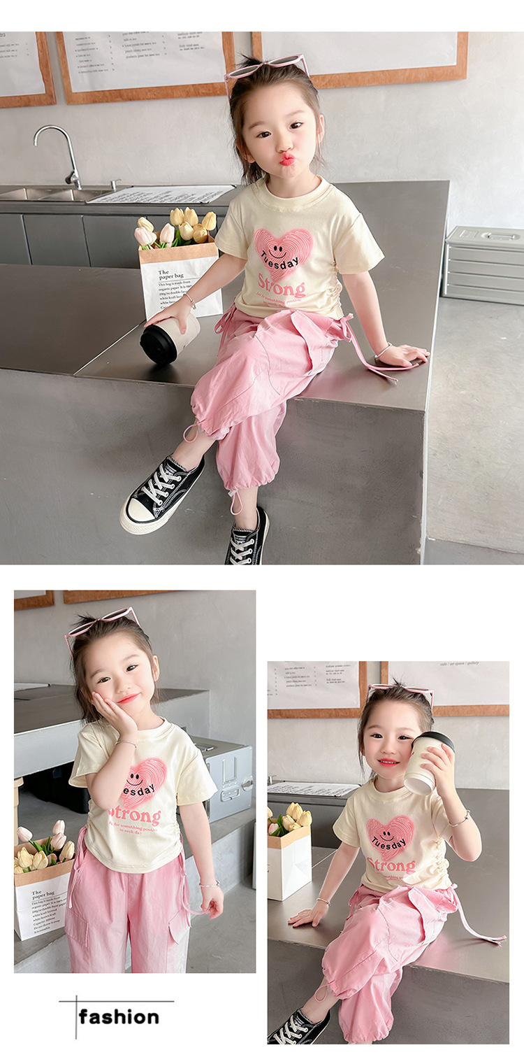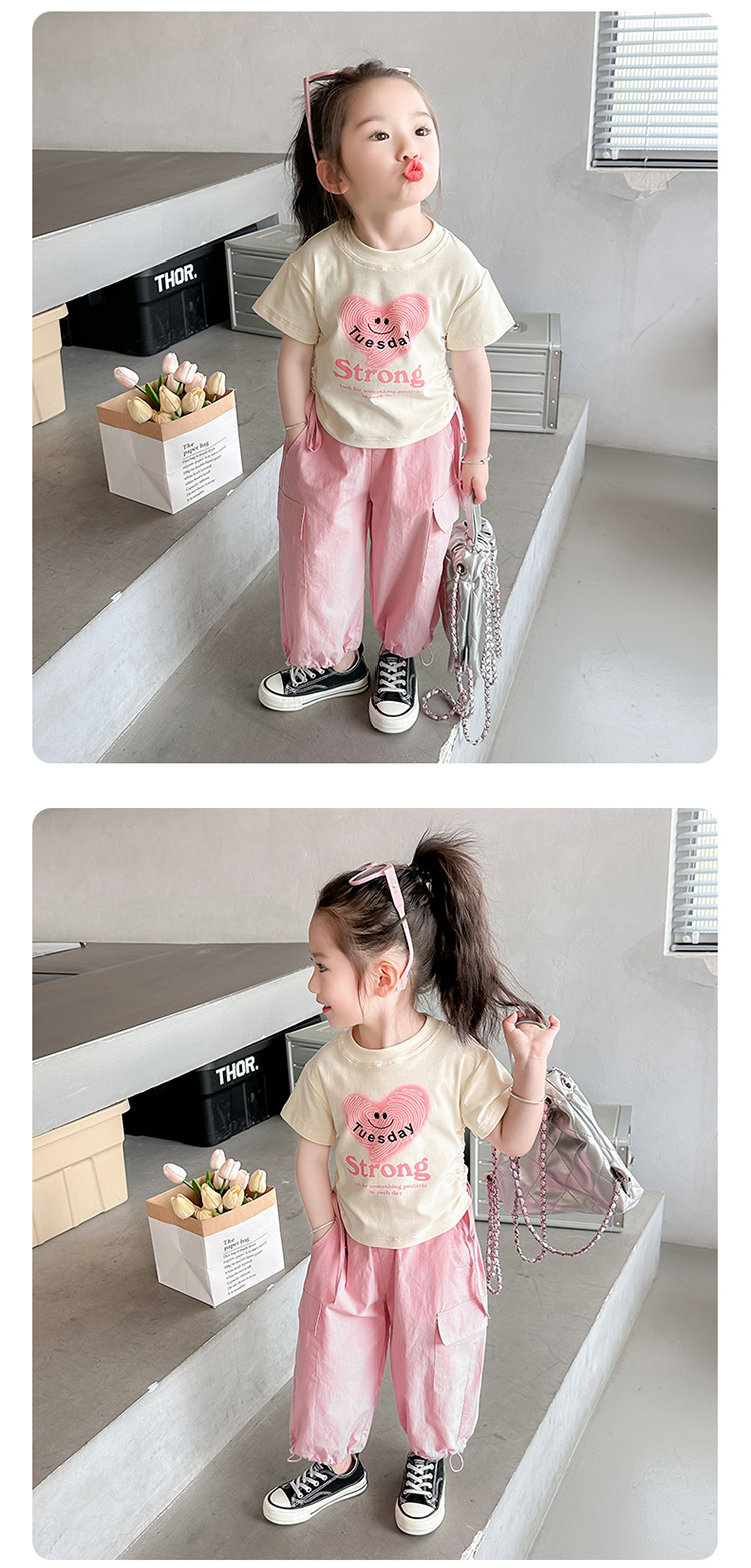 【多巴胺懒人套装】韩国潮流女童刺绣卡通短袖套装 洋气网红休闲两件套