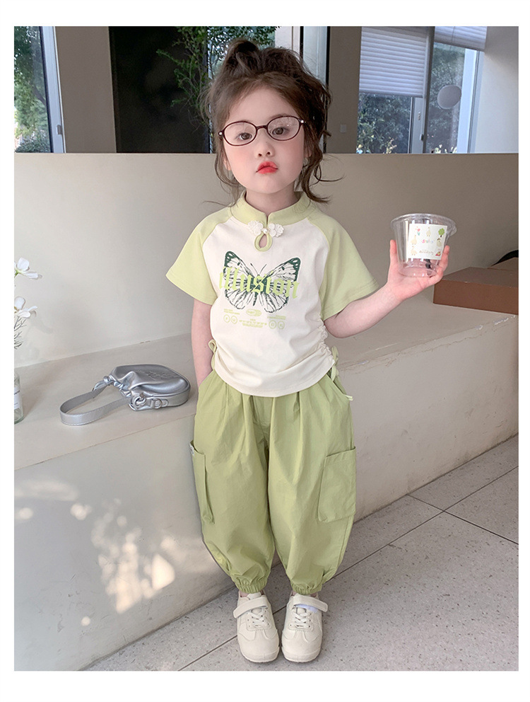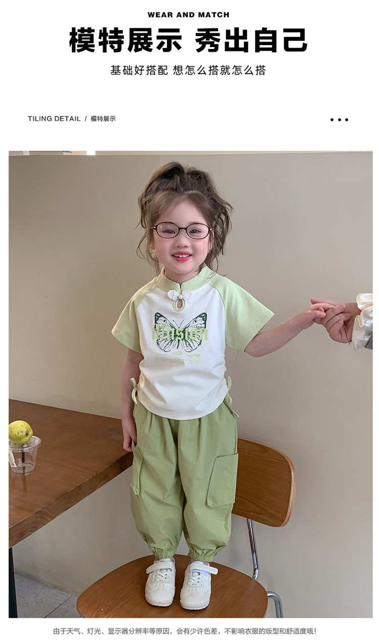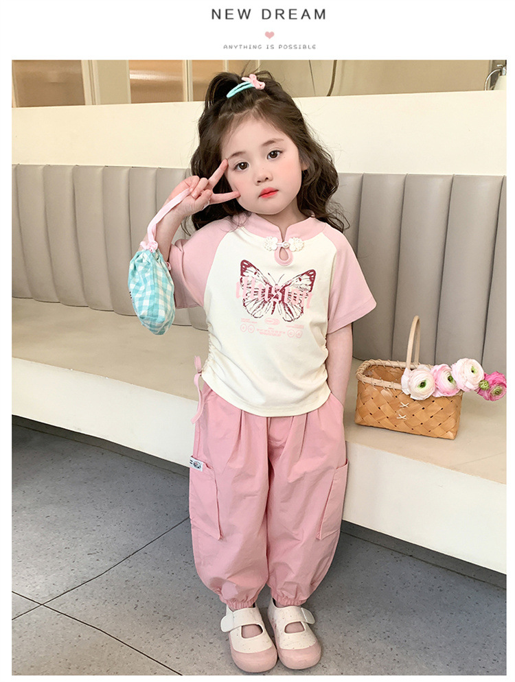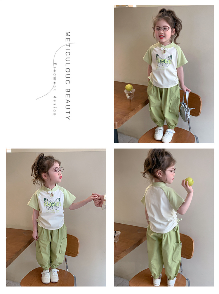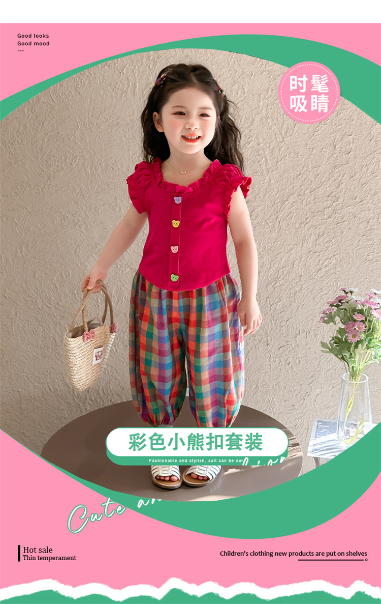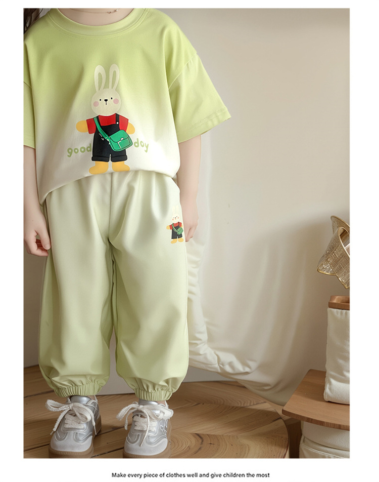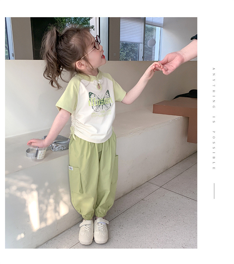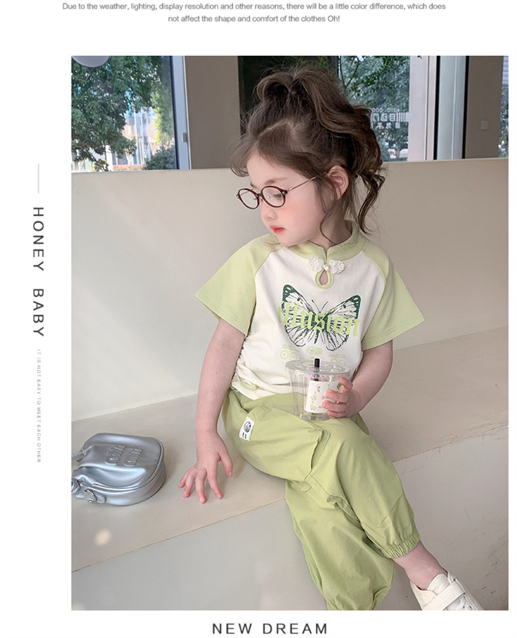 【多巴胺懒人套装】韩国潮流女童刺绣卡通短袖套装 洋气网红休闲两件套