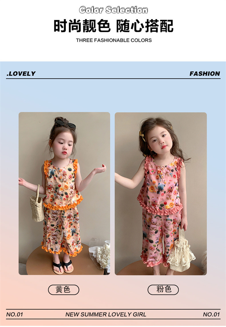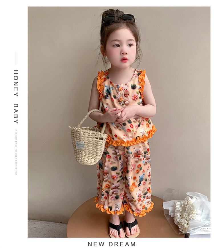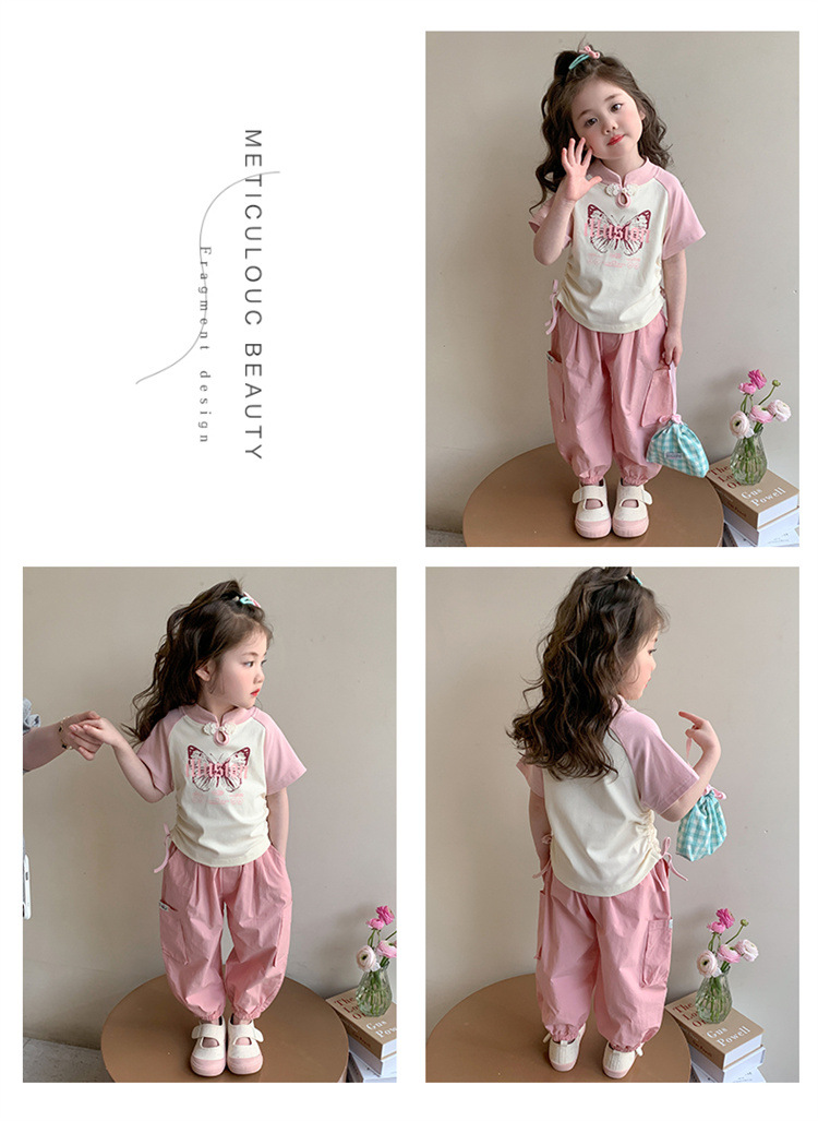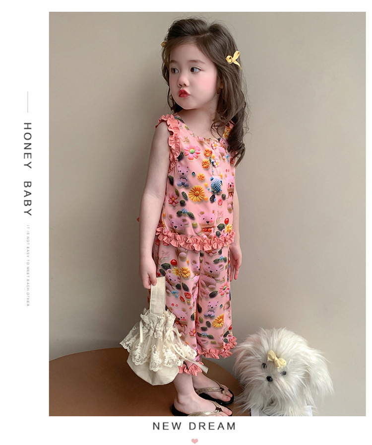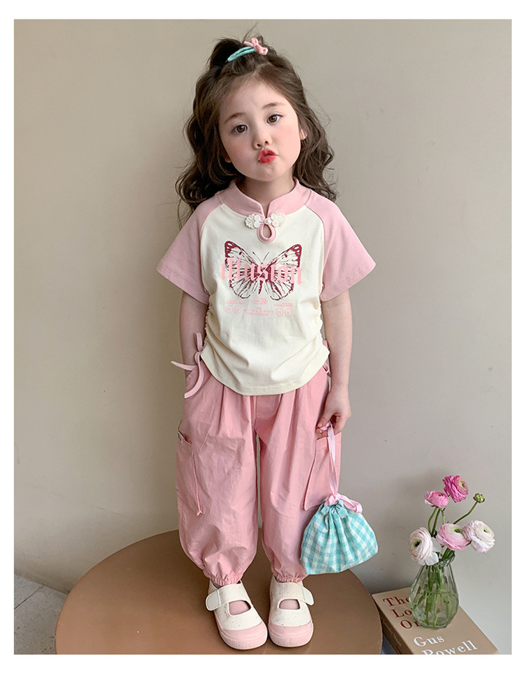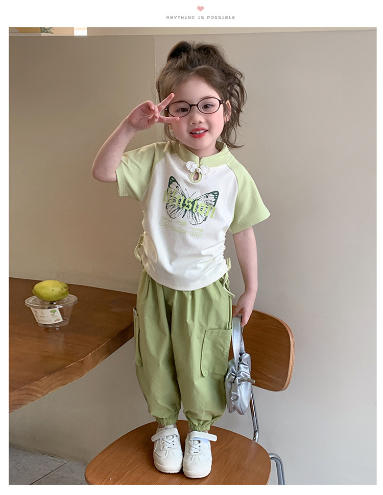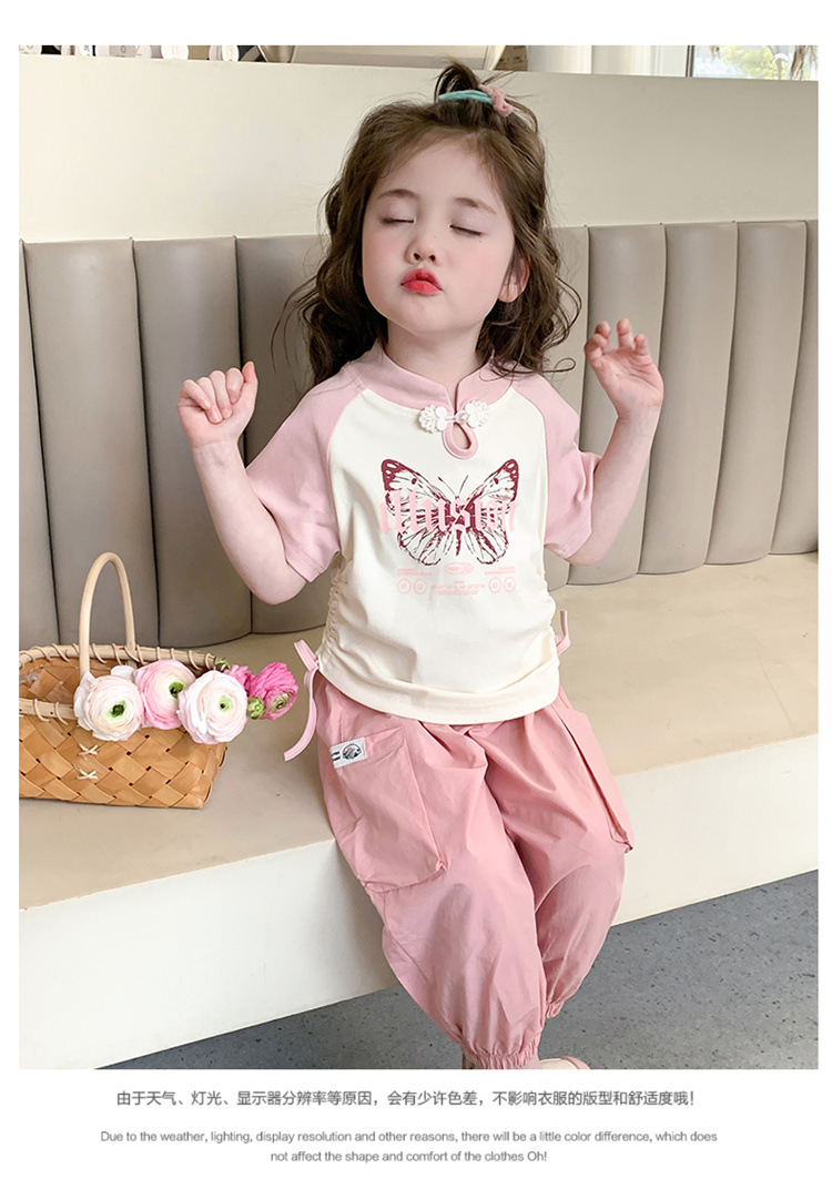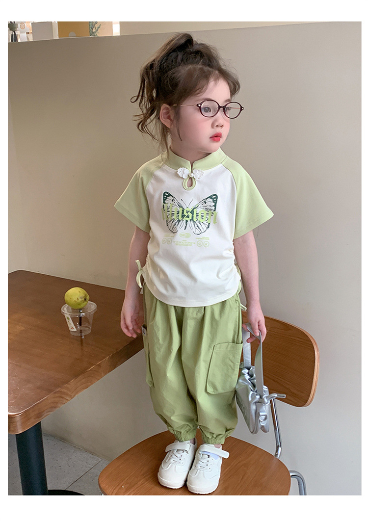 【多巴胺懒人套装】韩国潮流女童刺绣卡通短袖套装 洋气网红休闲两件套