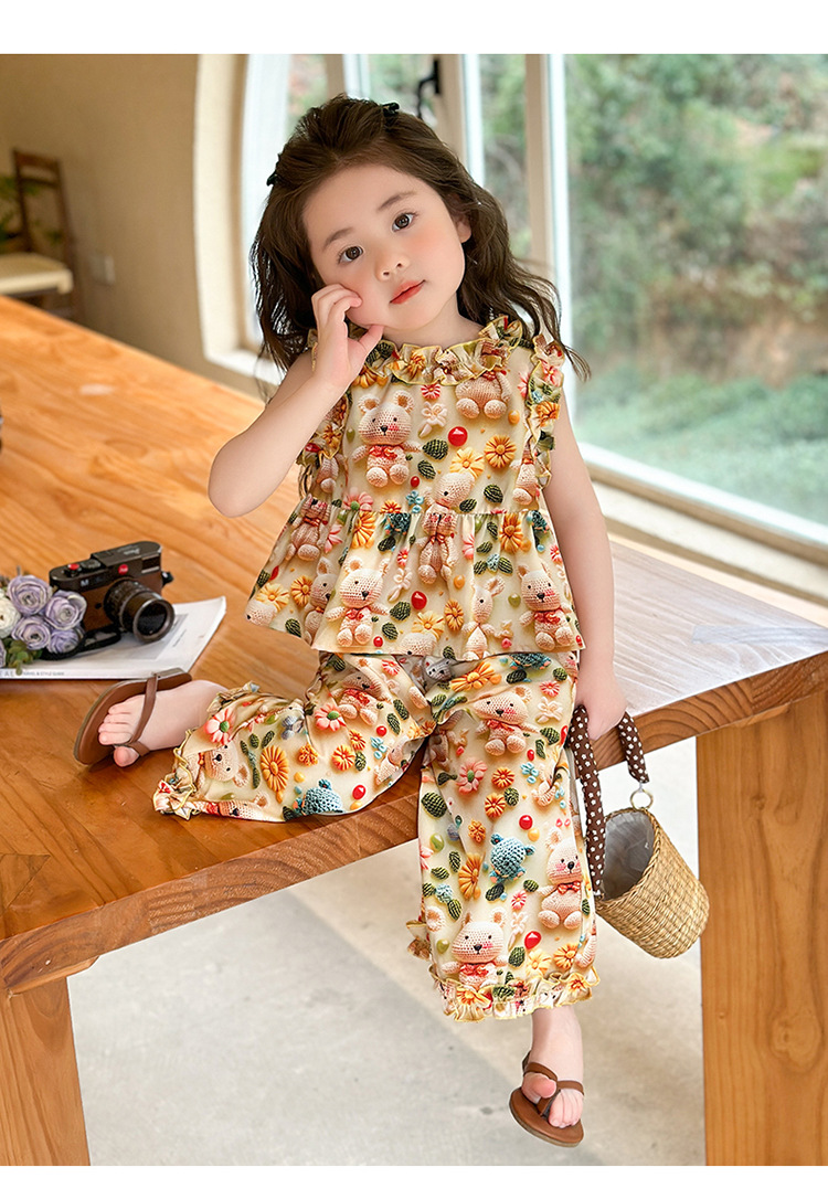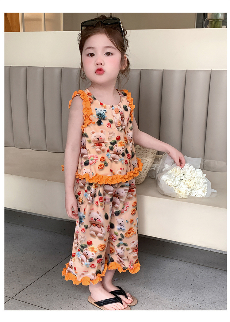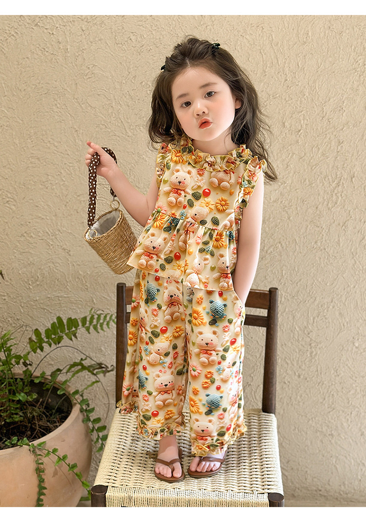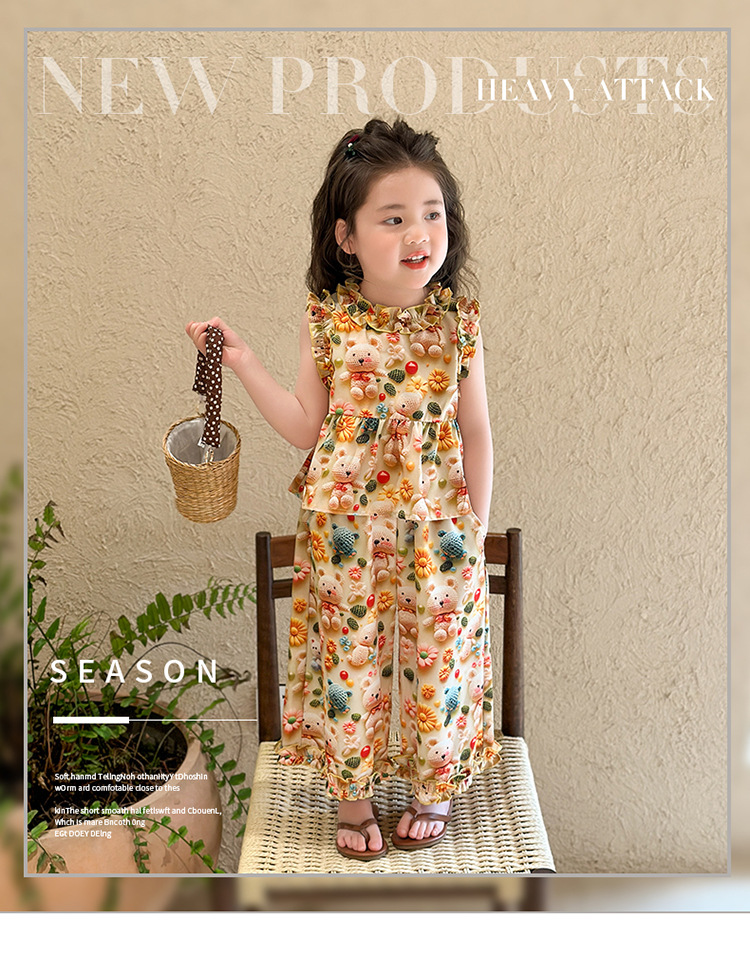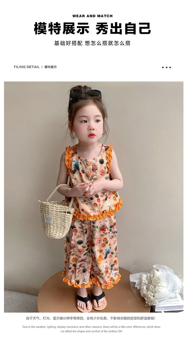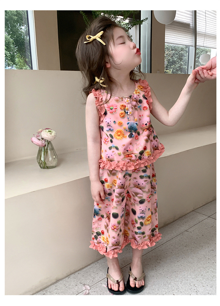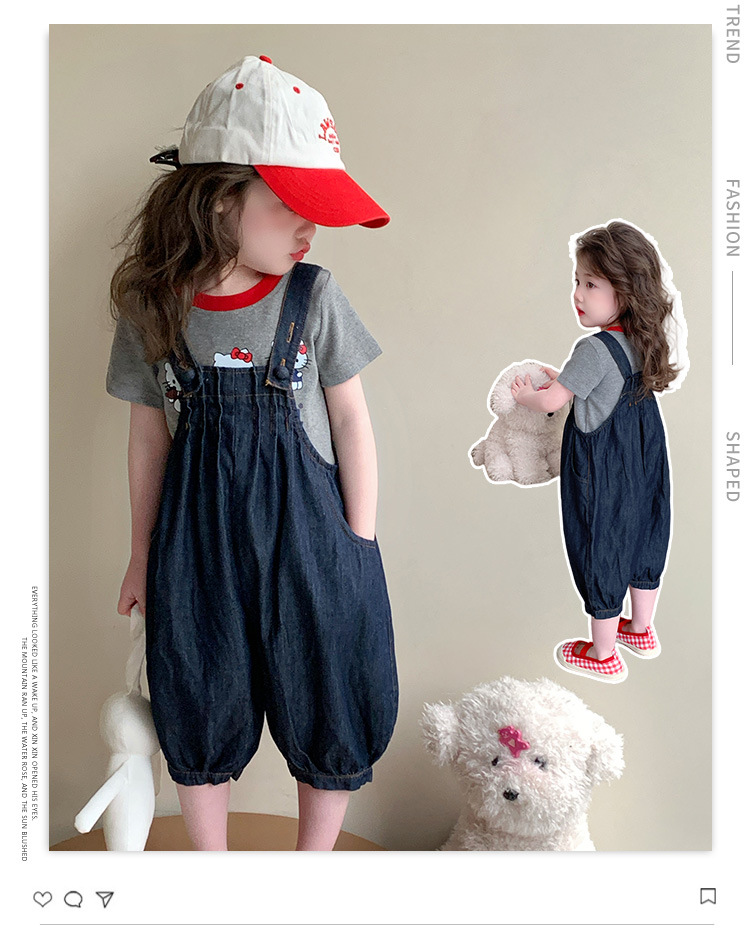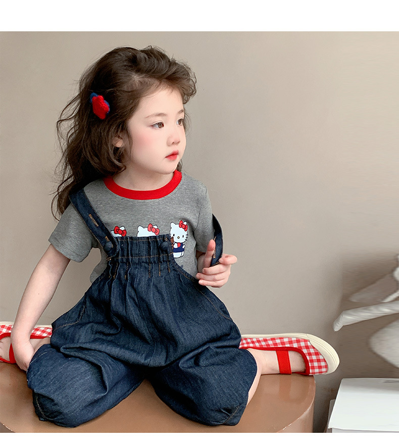 【多巴胺懒人套装】韩国潮流女童刺绣卡通短袖套装 洋气网红休闲两件套