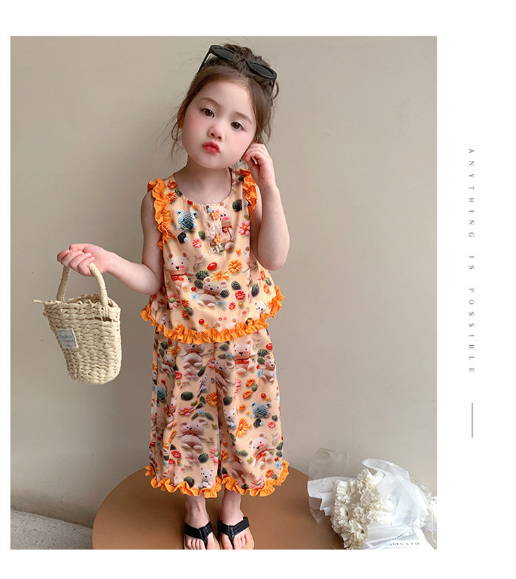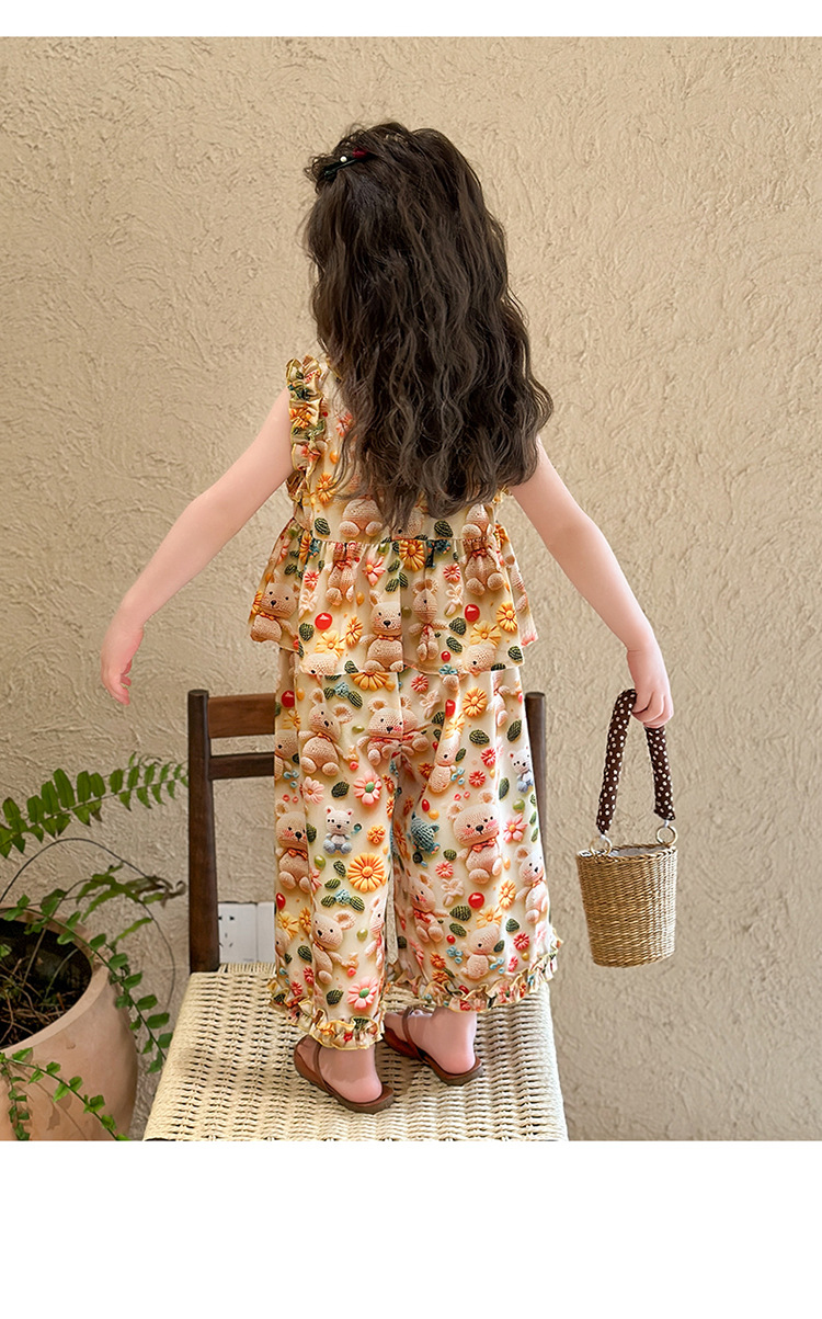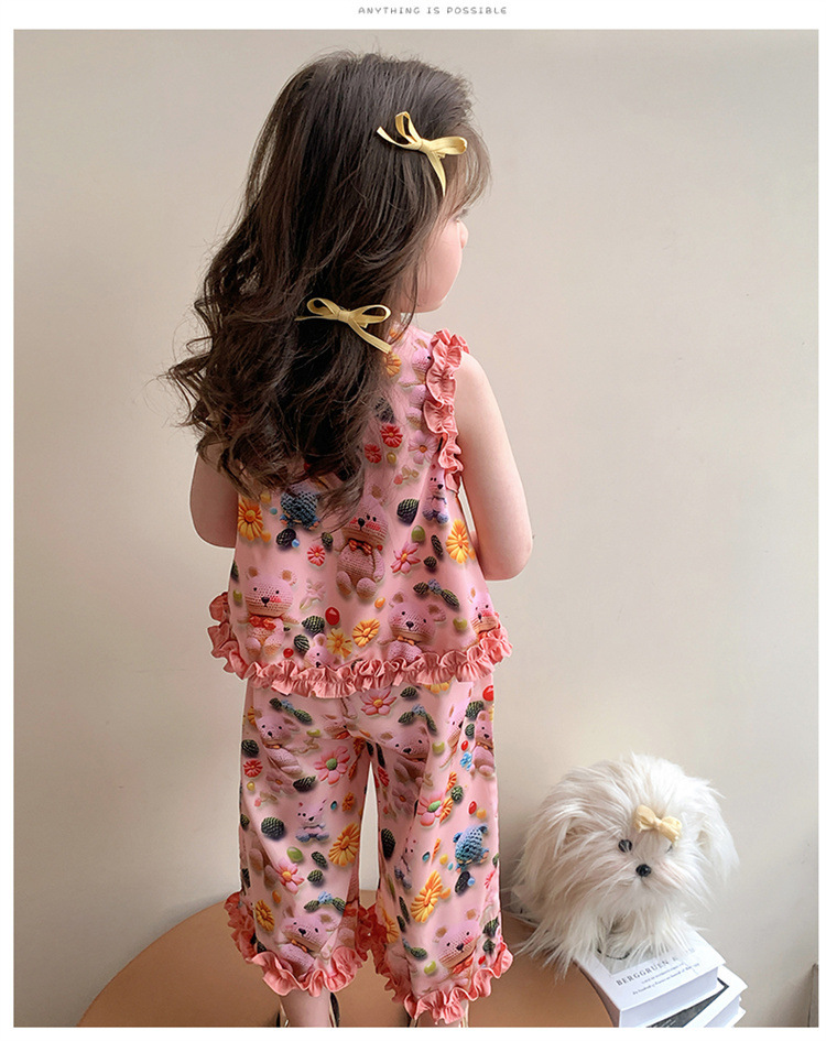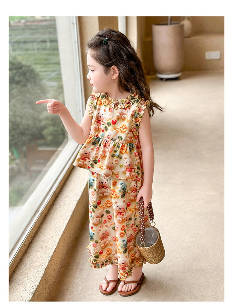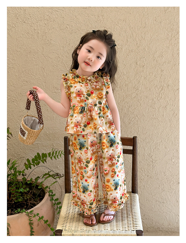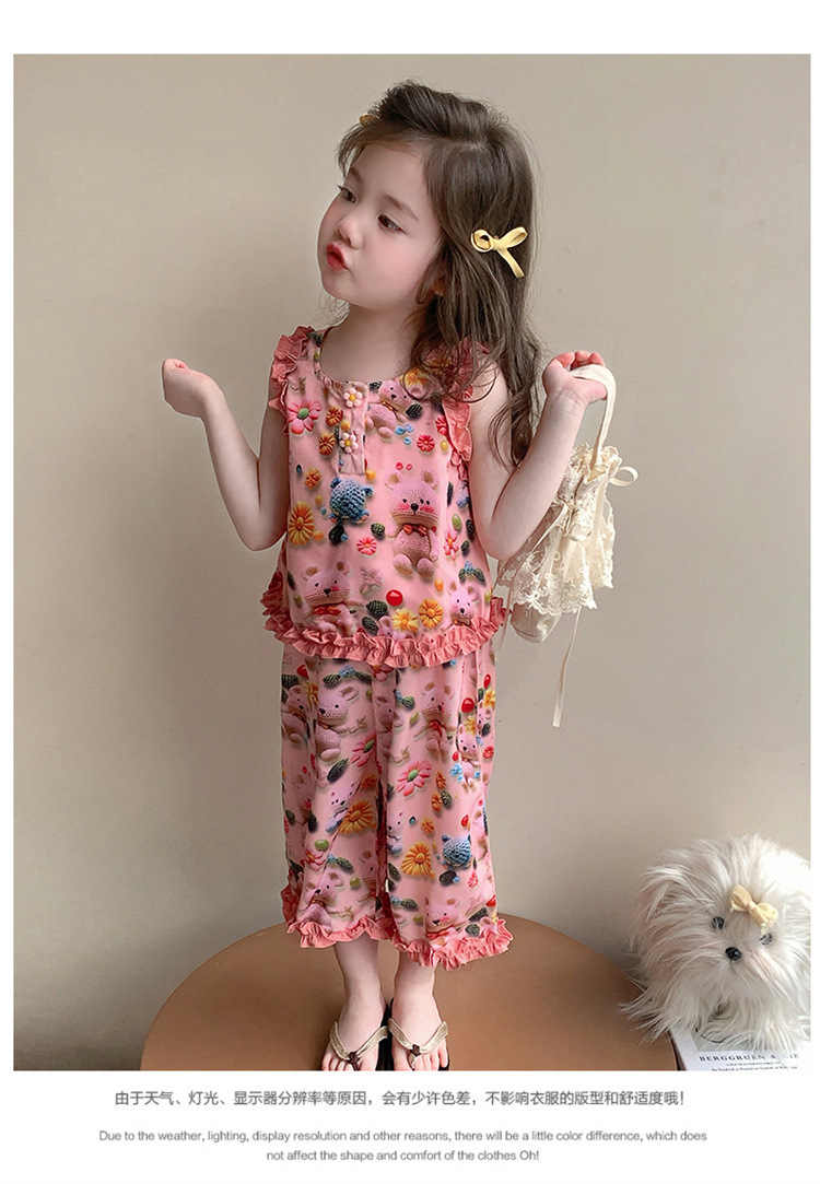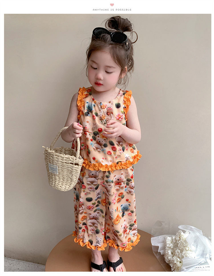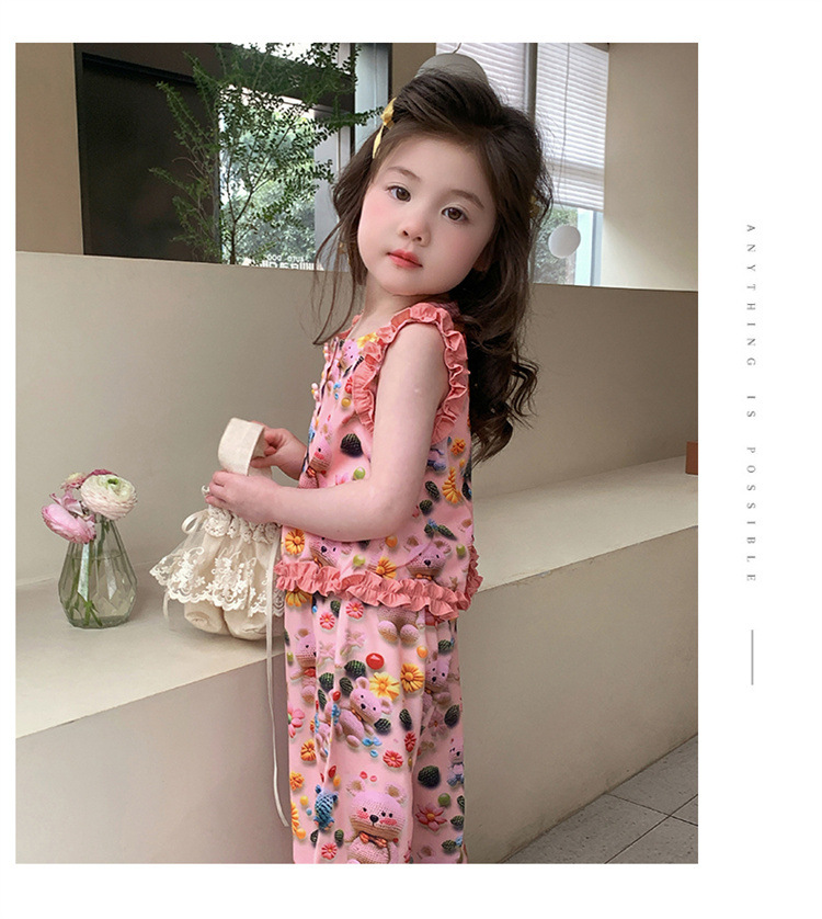 【多巴胺懒人套装】韩国潮流女童刺绣卡通短袖套装 洋气网红休闲两件套