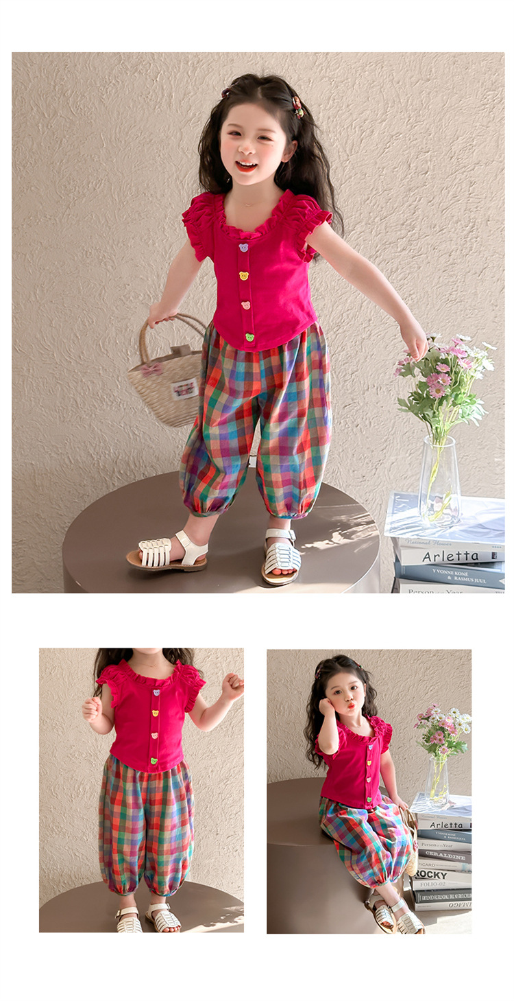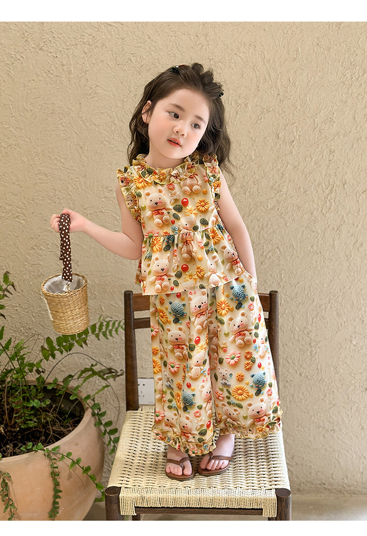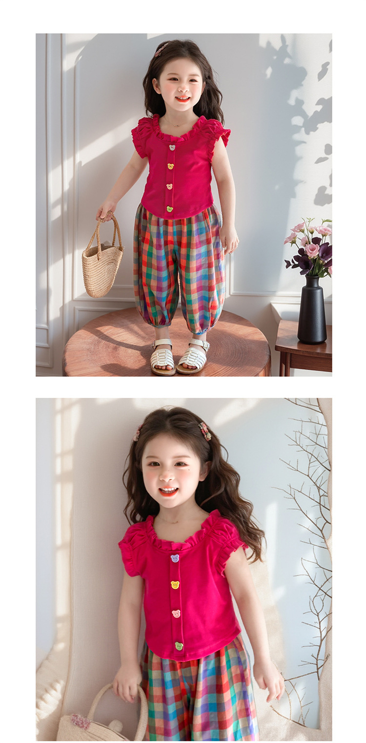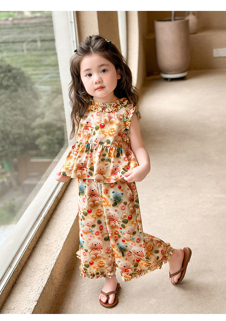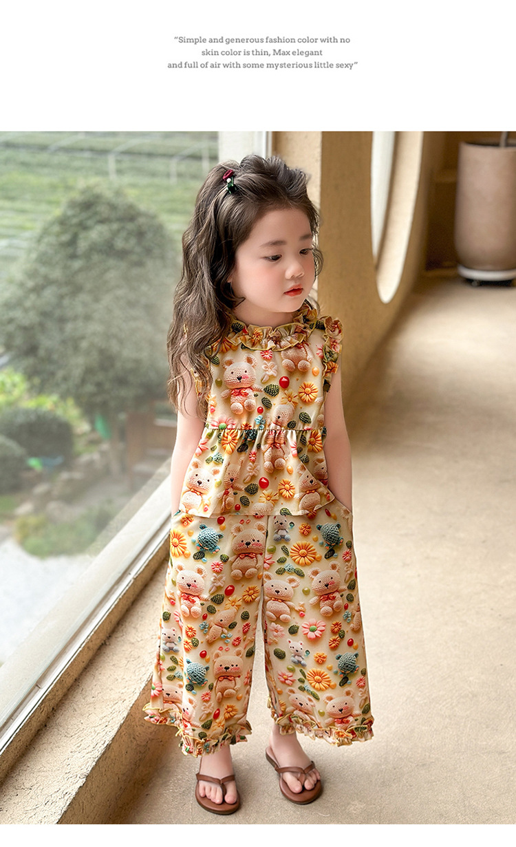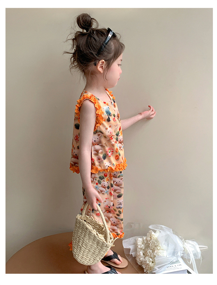 【多巴胺懒人套装】韩国潮流女童刺绣卡通短袖套装 洋气网红休闲两件套
