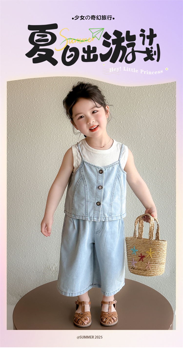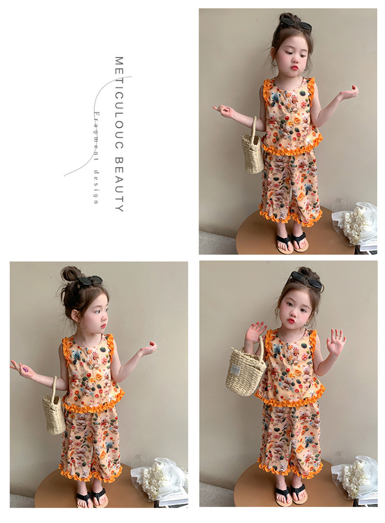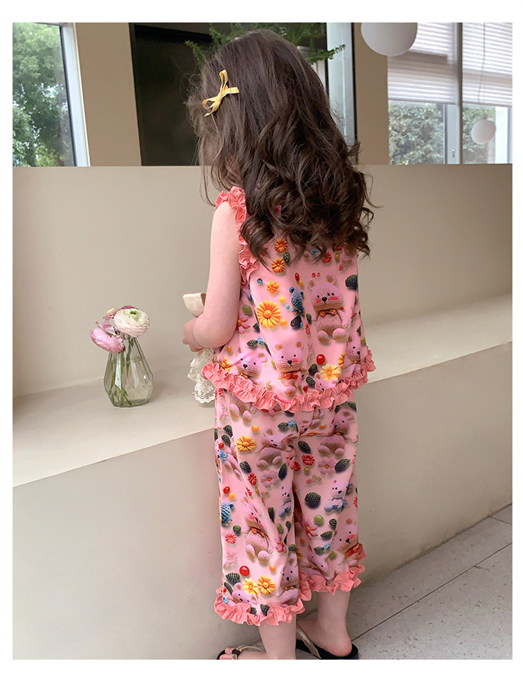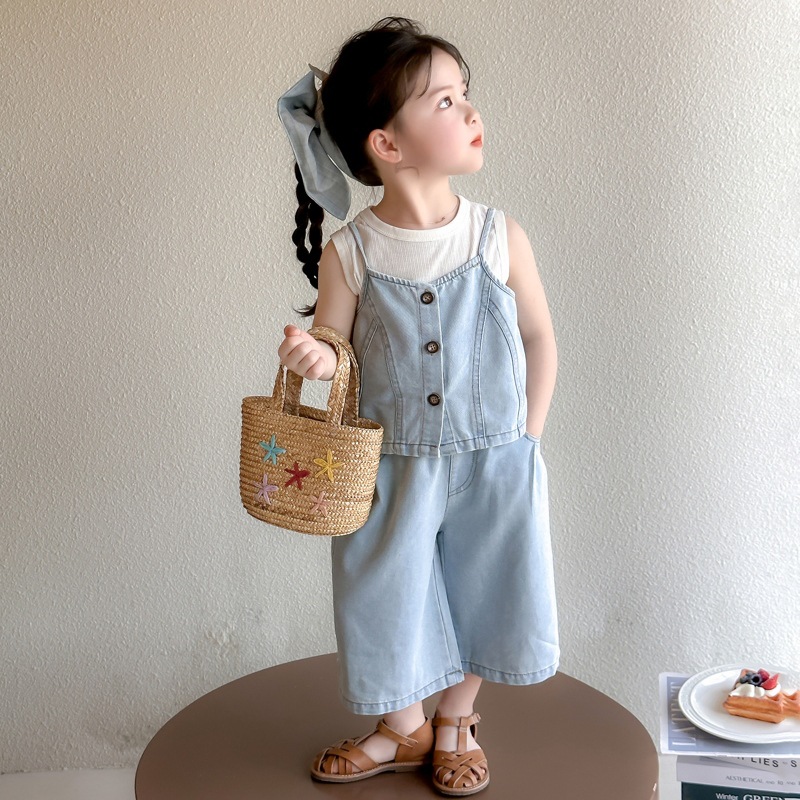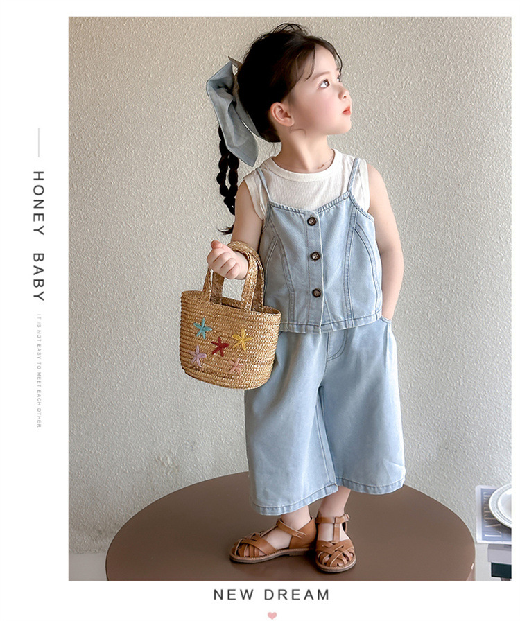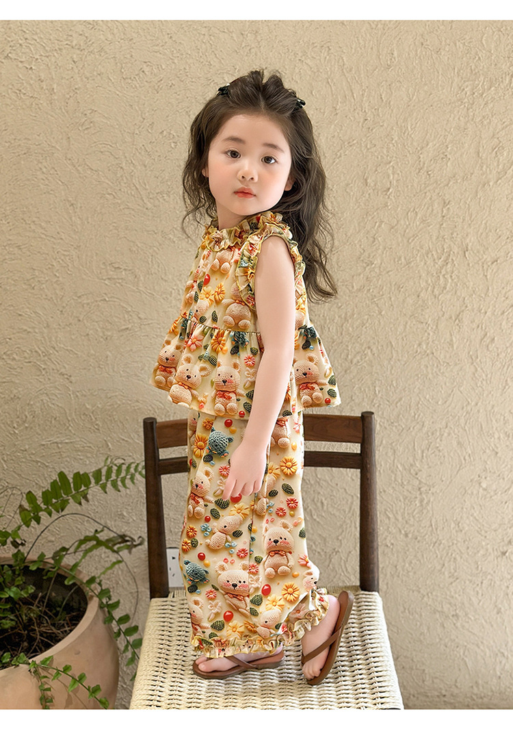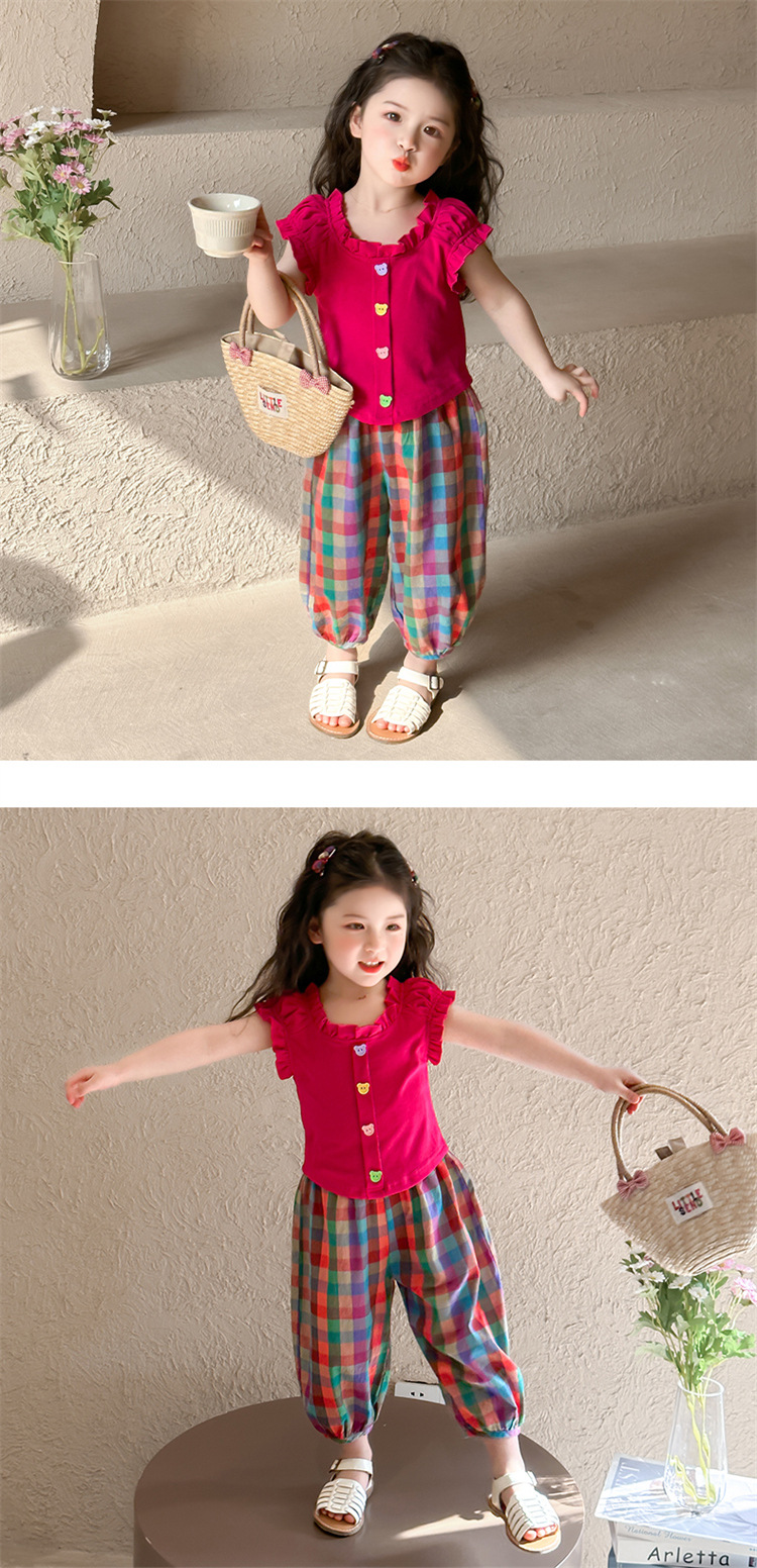 【多巴胺懒人套装】韩国潮流女童刺绣卡通短袖套装 洋气网红休闲两件套