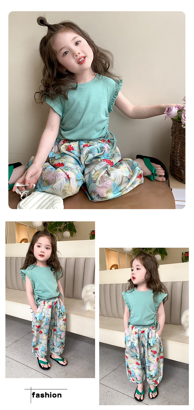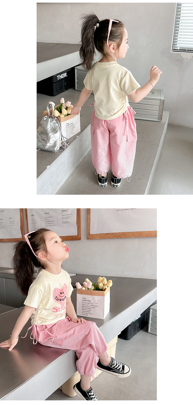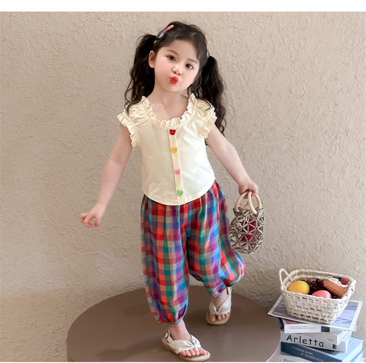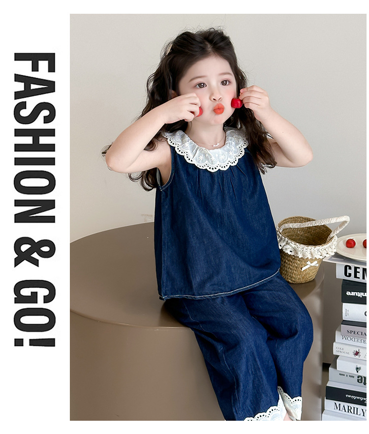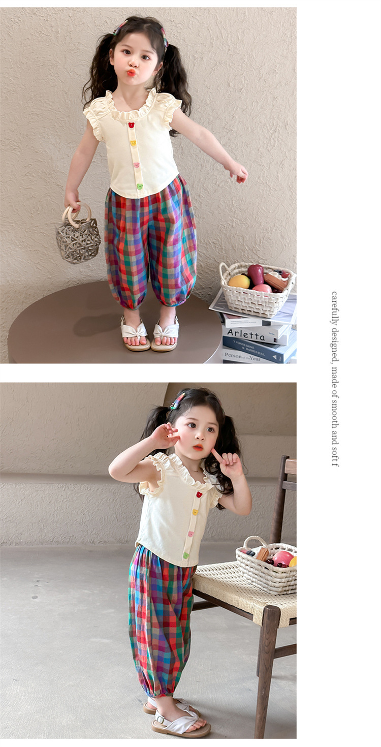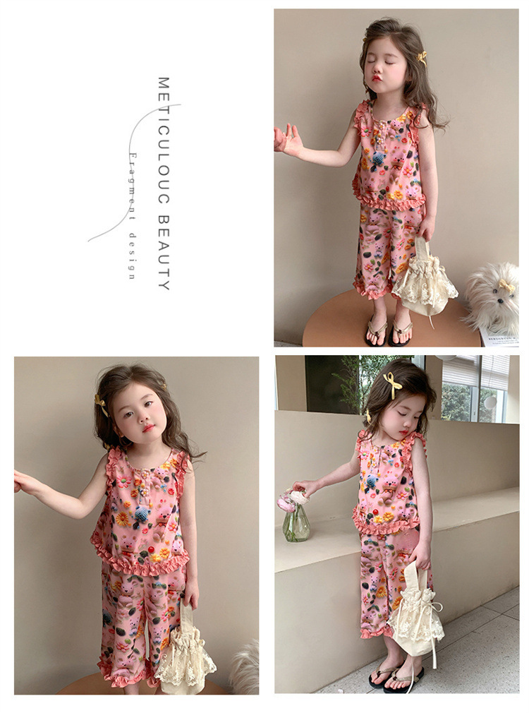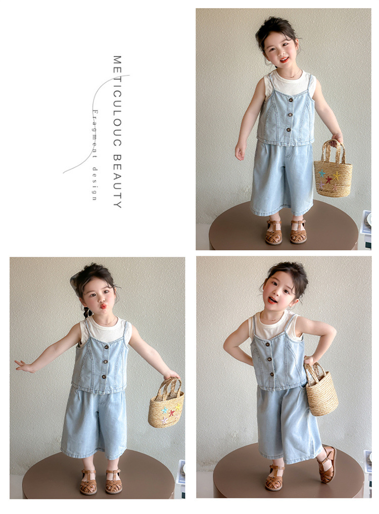【多巴胺懒人套装】韩国潮流女童刺绣卡通短袖套装 洋气网红休闲两件套