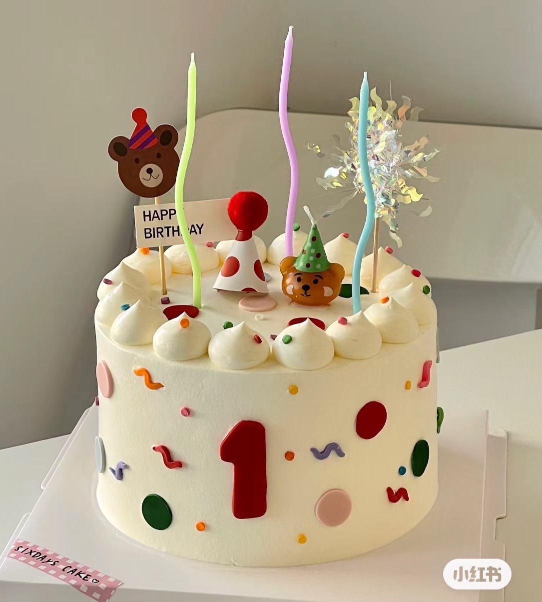 【优品系列】---【侧面周岁数字翻糖贴片】蛋糕