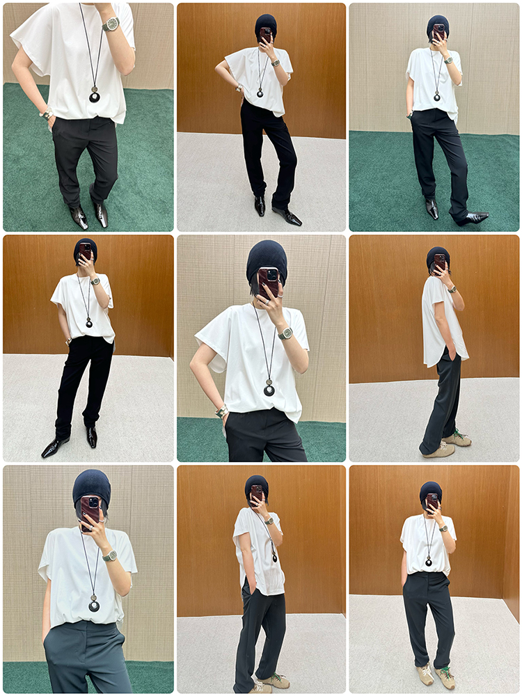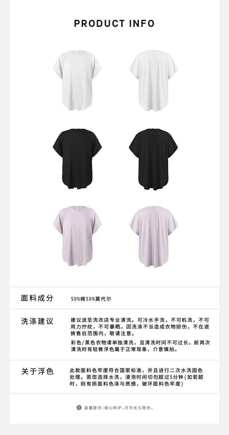 HIDEMI 春夏基础简约经典圆领廓形感柔软女装短袖T恤打底衫