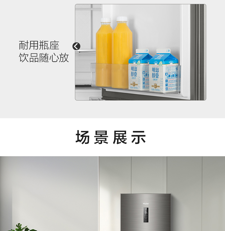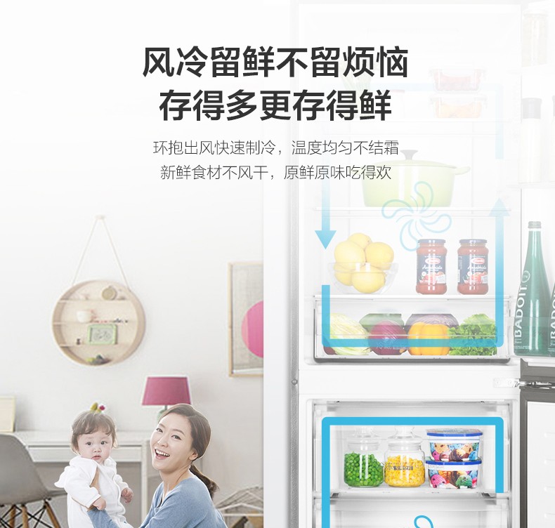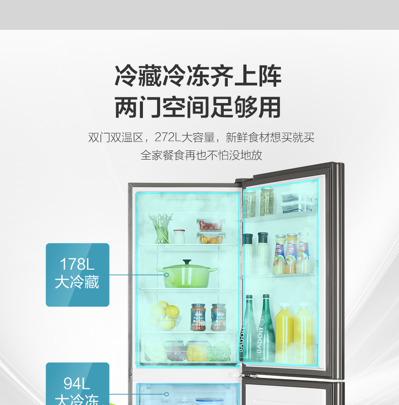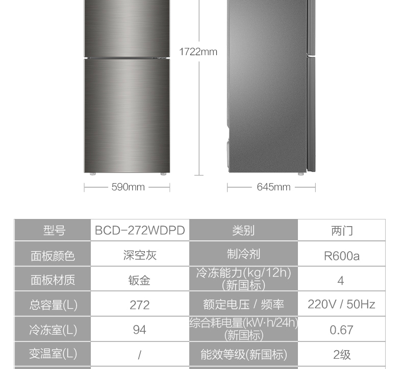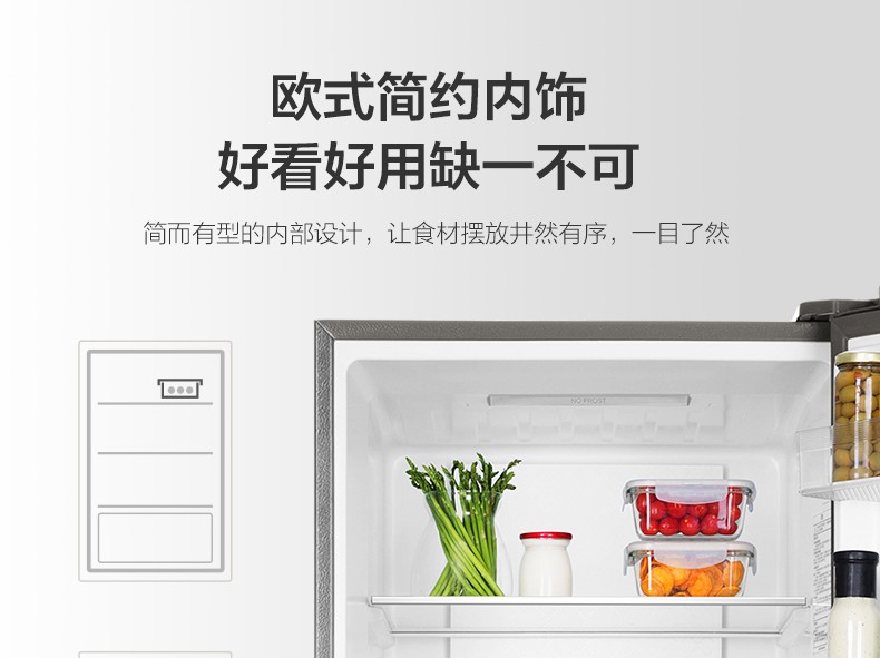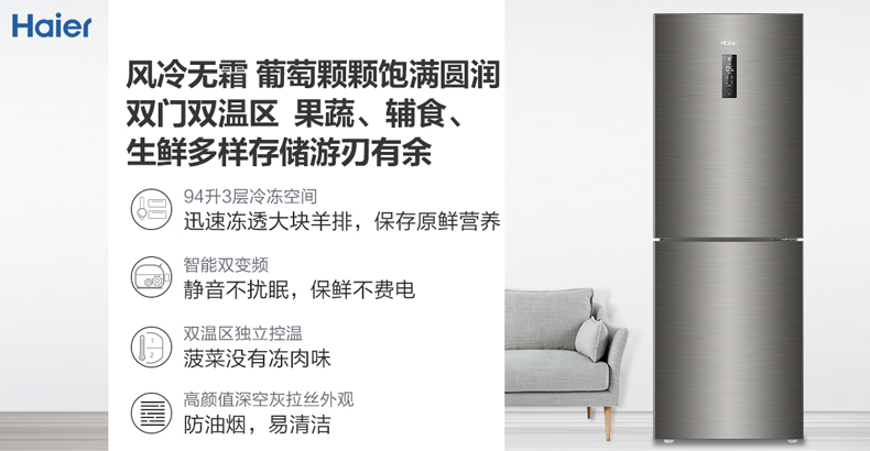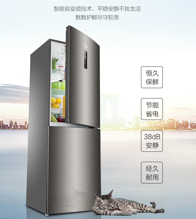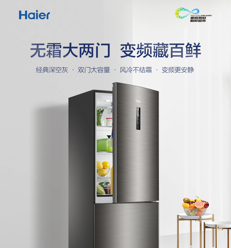 海尔272升两门二门双开门小户型家用迷你电冰箱无霜节能宿舍出租房办公室冷藏冷冻2人用