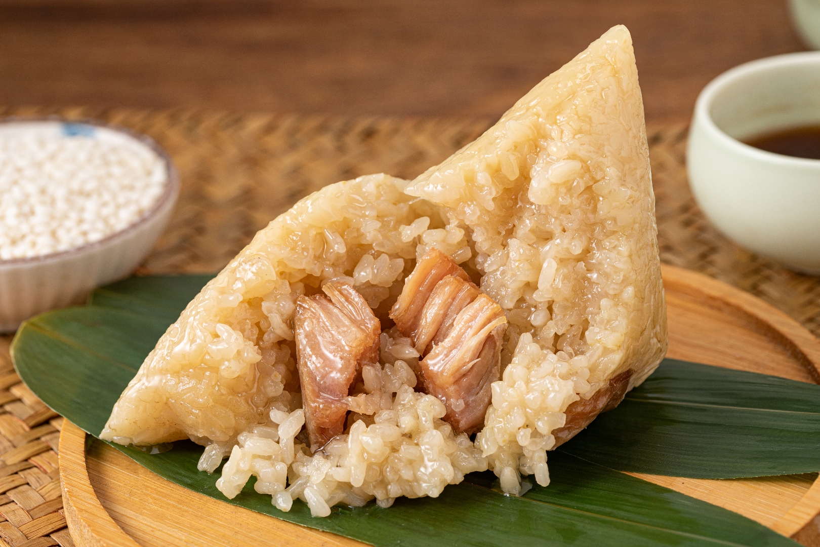 高汤肉粽&高汤蛋黄肉粽:高汤浸润,仿佛每一粒都吸满了精华,精选优质的猪后腿肉,体验大口吃肉的快感。嫩、弹、香、润,全在这一口经典滋味里,加入蛋黄,更是经典!鲜、松、沙、油的咸蛋黄,与米粒融为一体,搭配肉香,回味无穷~