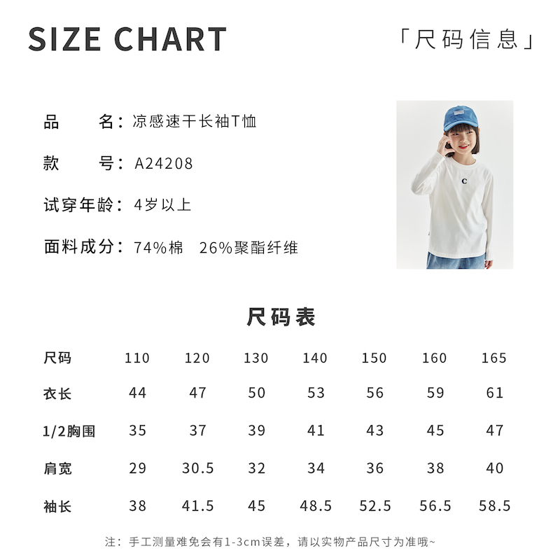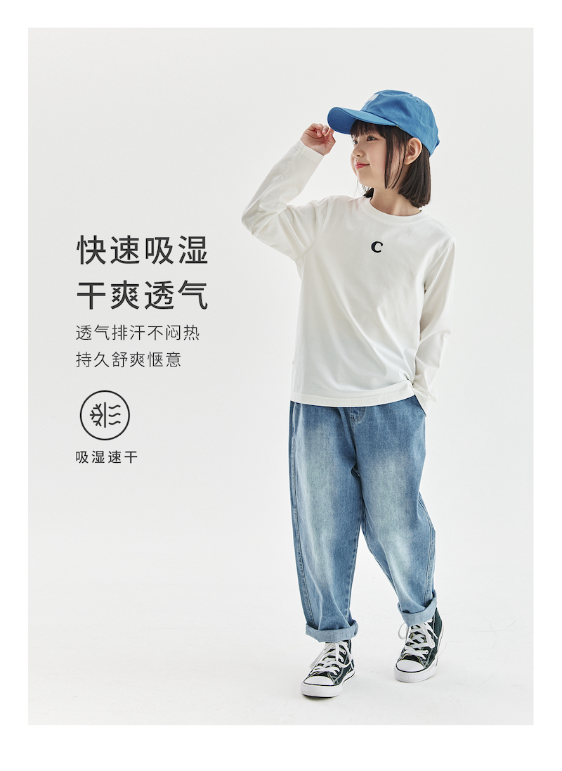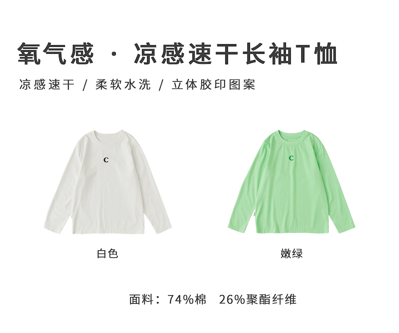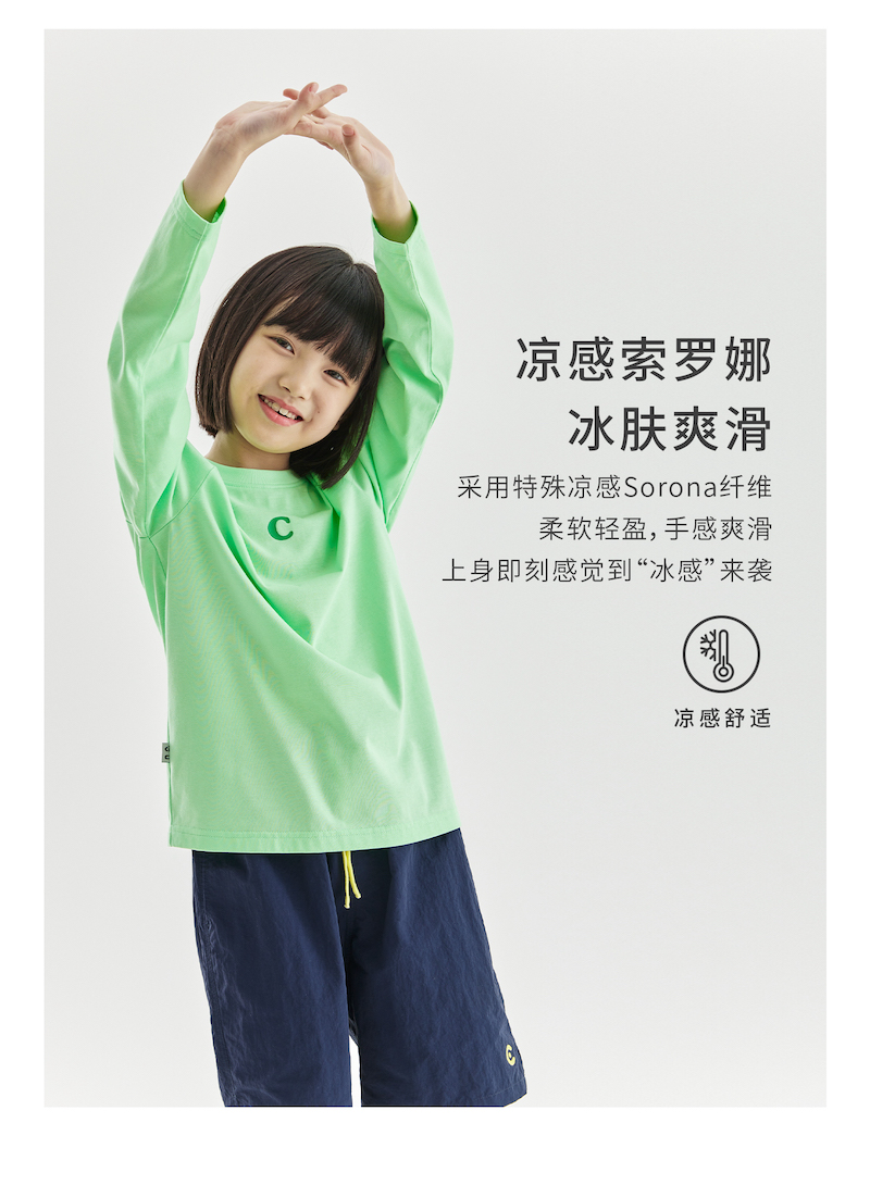 cicochild24春夏氧气感凉爽速干长袖T恤男女童户外休闲纯色运动衣