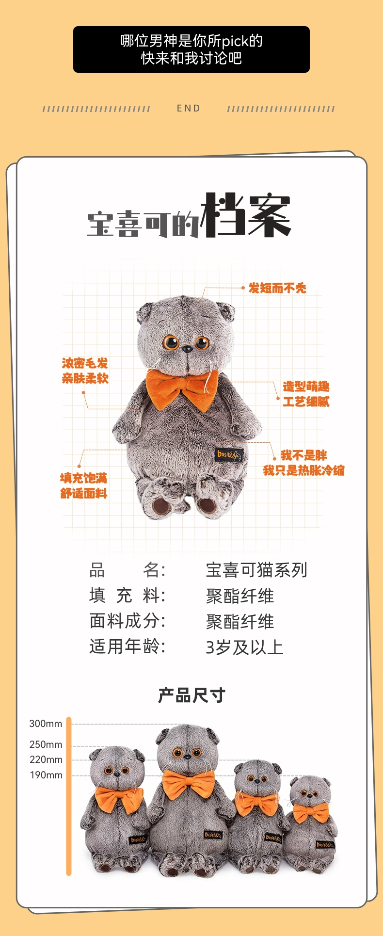 Budibasa LI-LI猫+粉丝格纹围巾, 24CM 27CM(毛绒玩具)