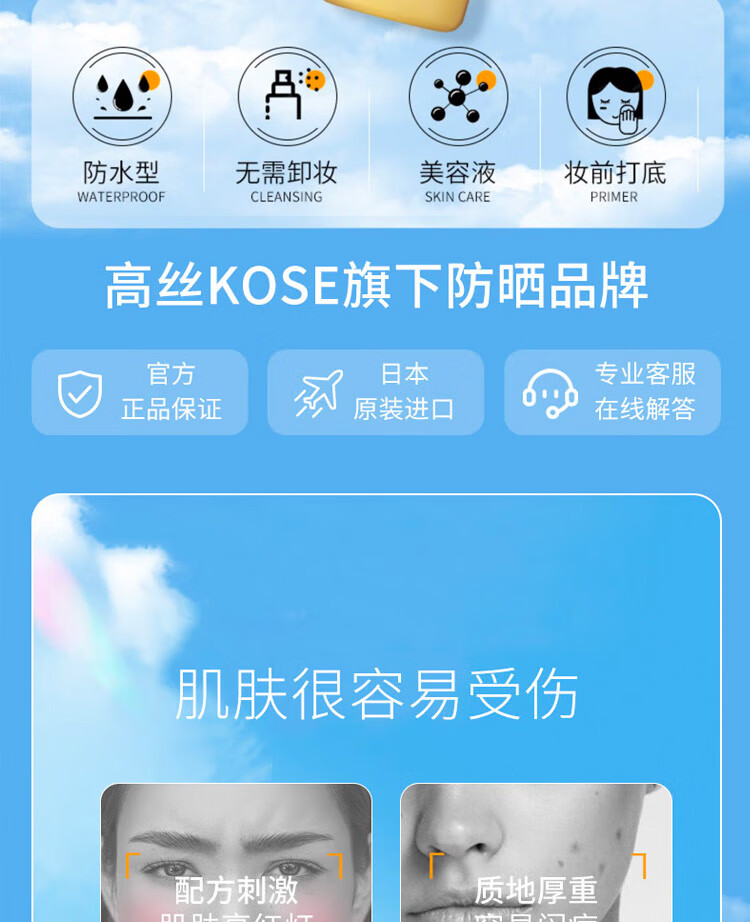 【中欧班列精选2支】日本高丝防晒霜 原装进口 SPF50+ 不粘腻防汗型水型防晒乳 60g/瓶 SHMP