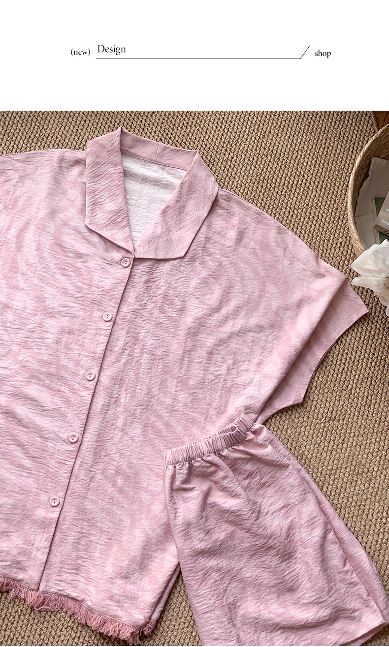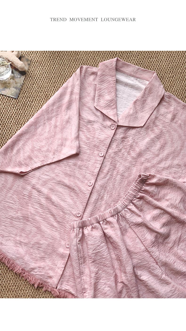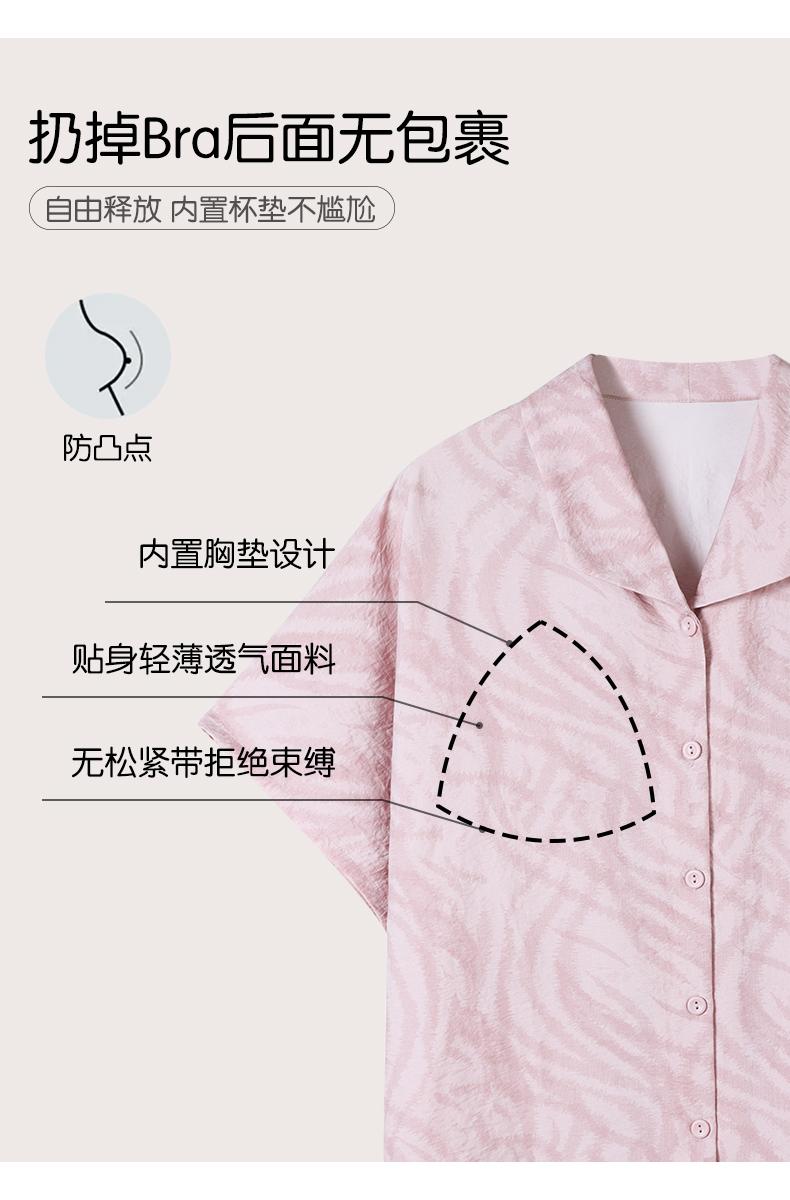 可人儿小众设计师新款泡泡绵女士睡衣夏季短袖可外出家居服三件套