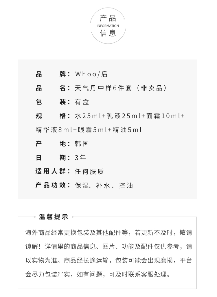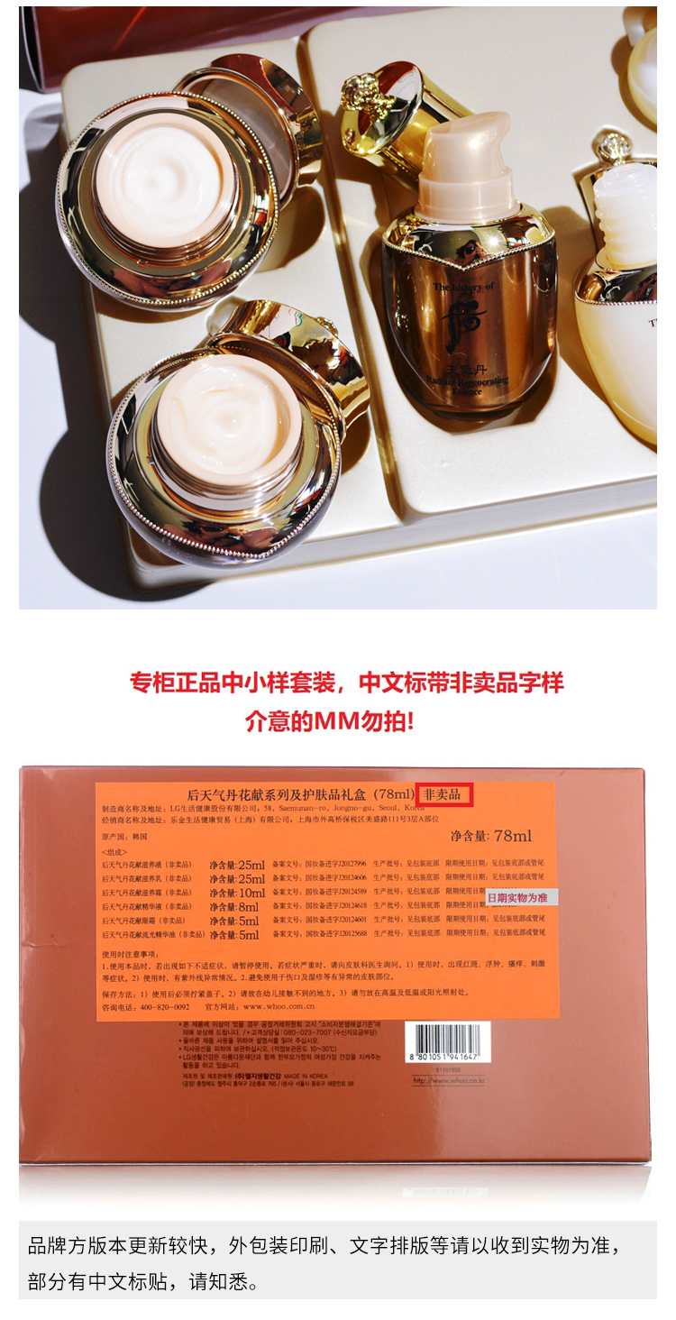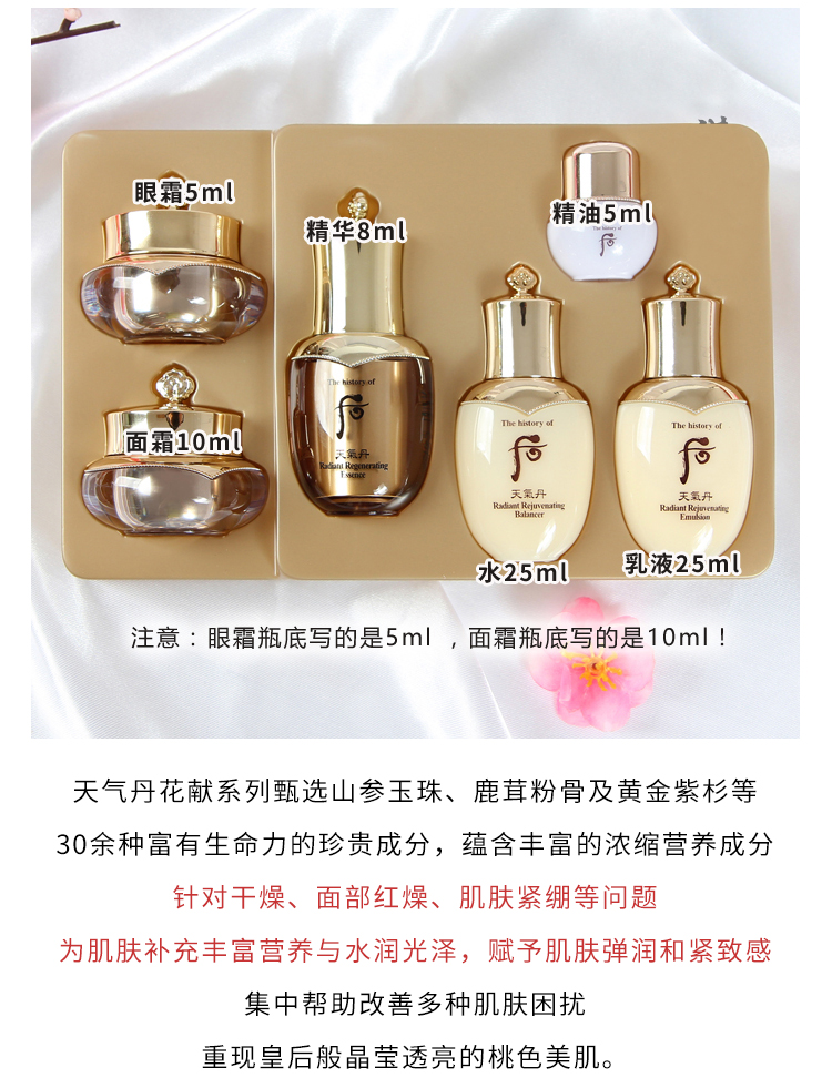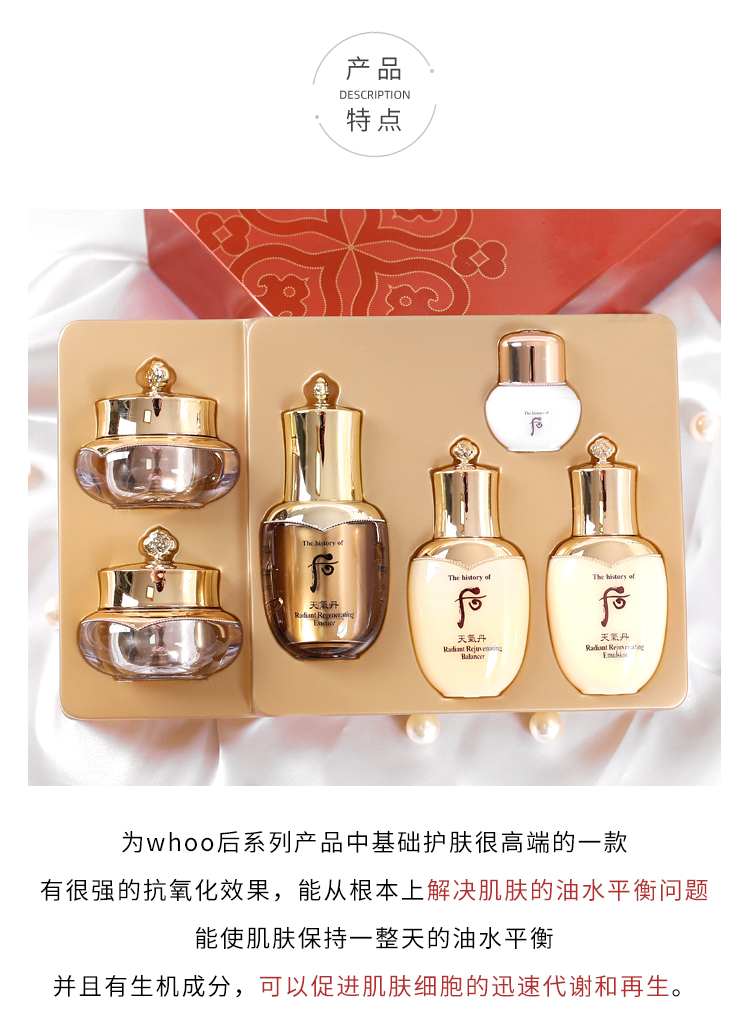 whoo/后 天气丹花献光彩紧颜中样6件套补水保湿改善肌肤旅行套装