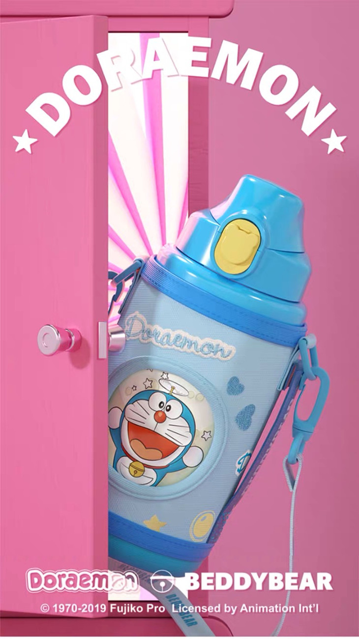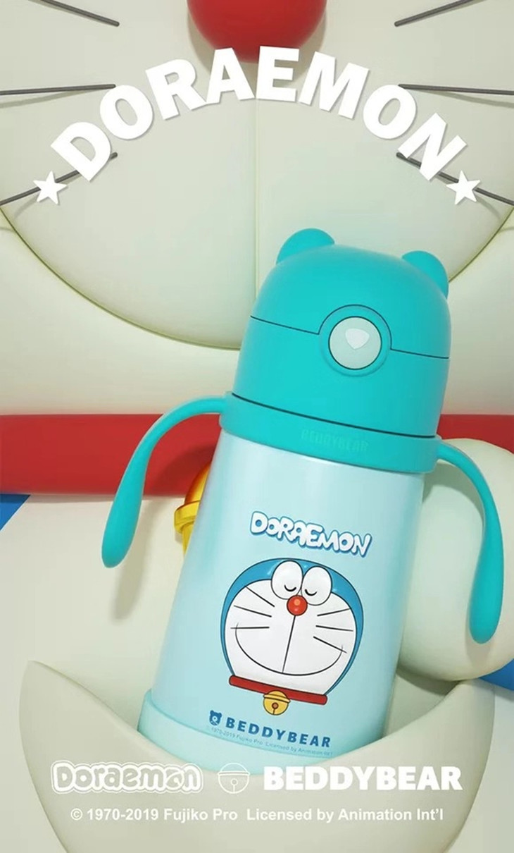 杯具熊哆啦A梦吸管学饮杯儿童保温水杯带把手便携男女宝宝防呛水