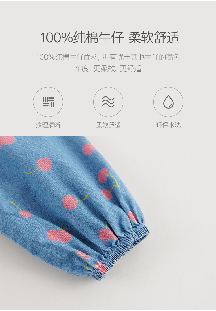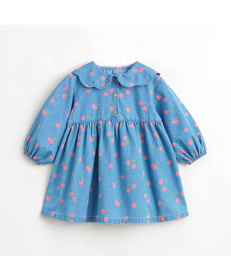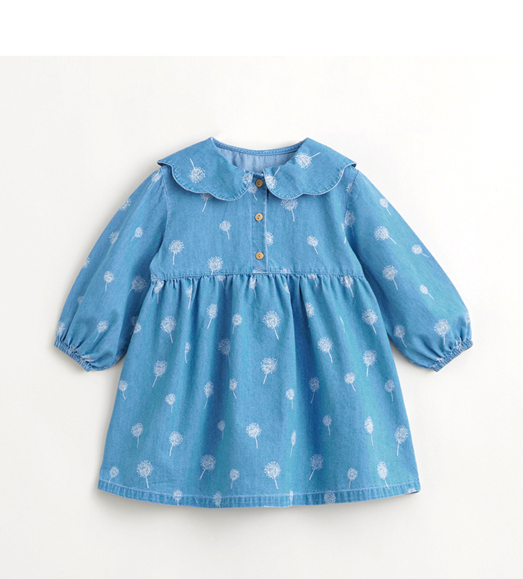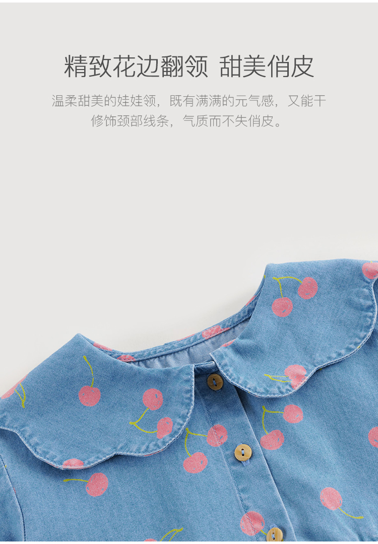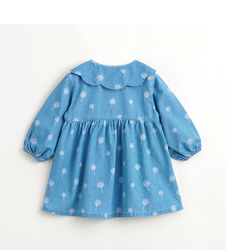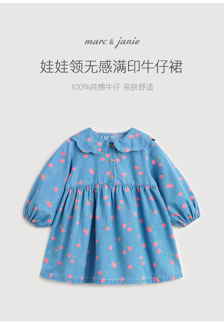 马克珍妮女童花边娃娃领牛仔连衣裙儿童纯棉碎花裙子春款240098