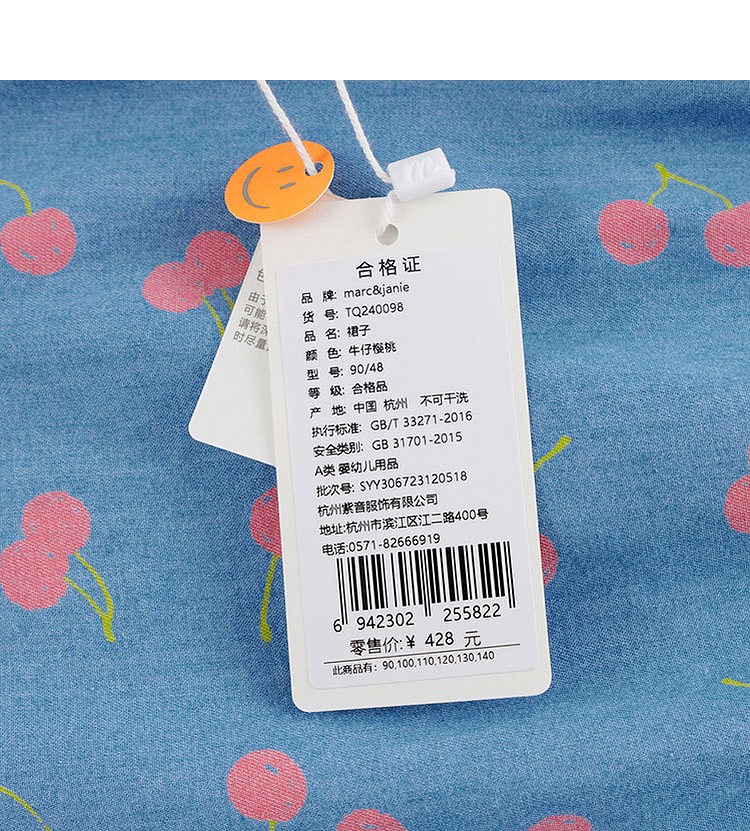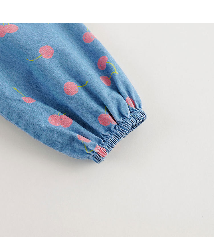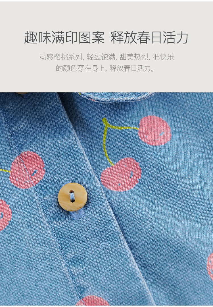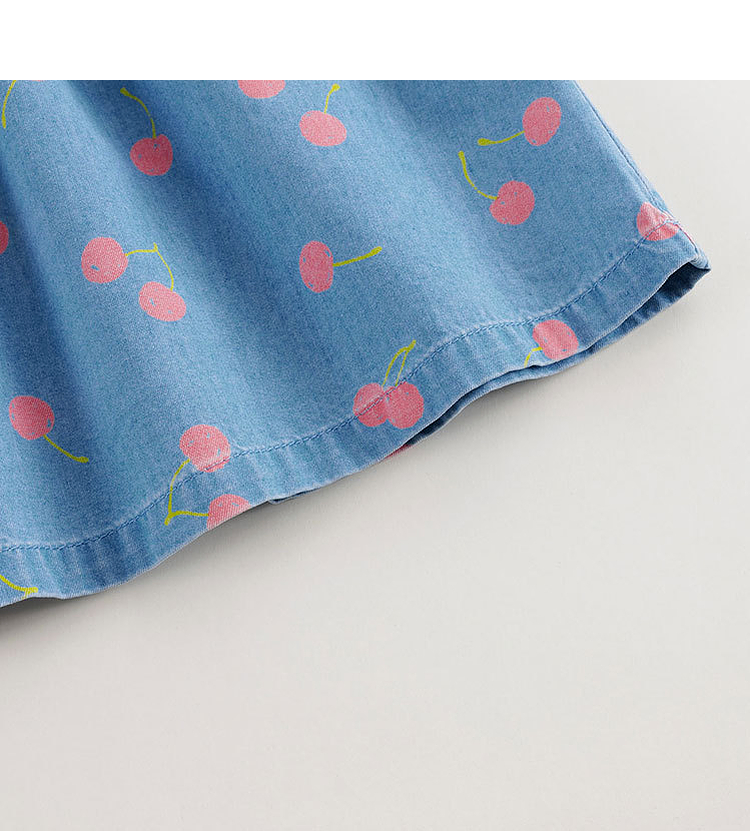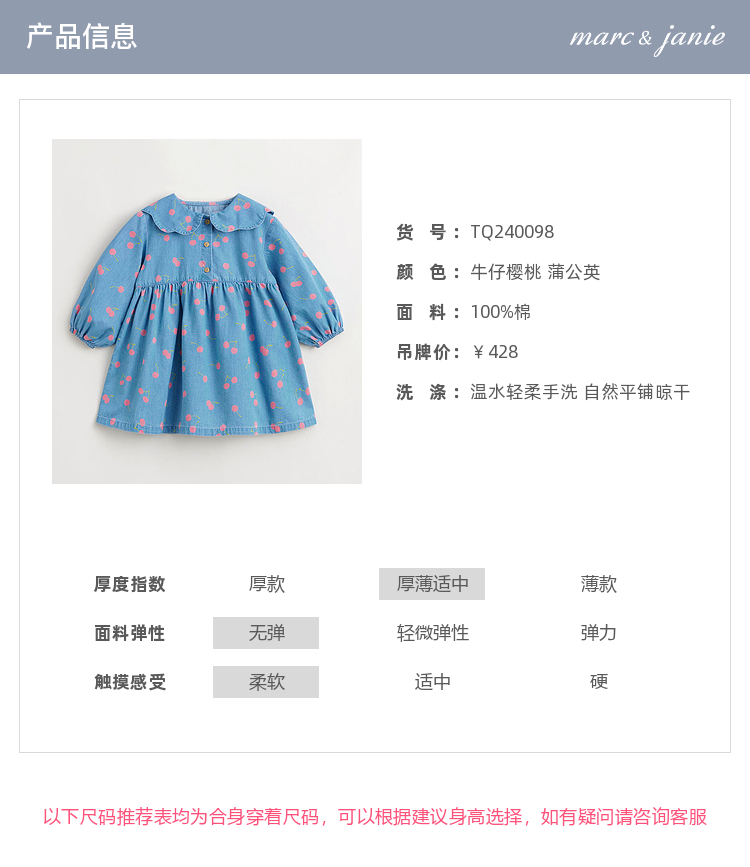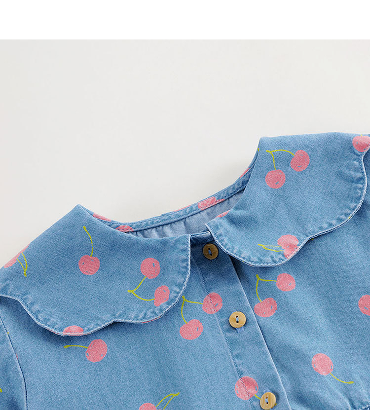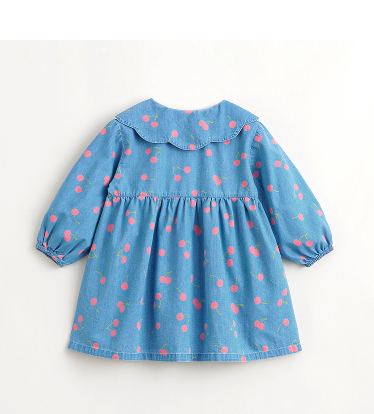 马克珍妮女童花边娃娃领牛仔连衣裙儿童纯棉碎花裙子春款240098