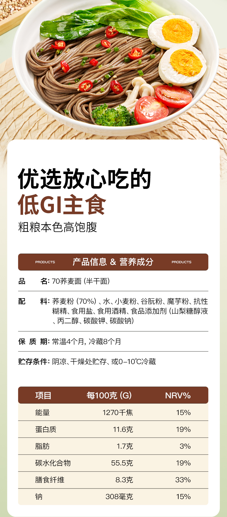 爱杂杂黑麦荞麦面0脂肪挂面黑全麦粗粮饱腹代餐杂粮主食半干鲜面