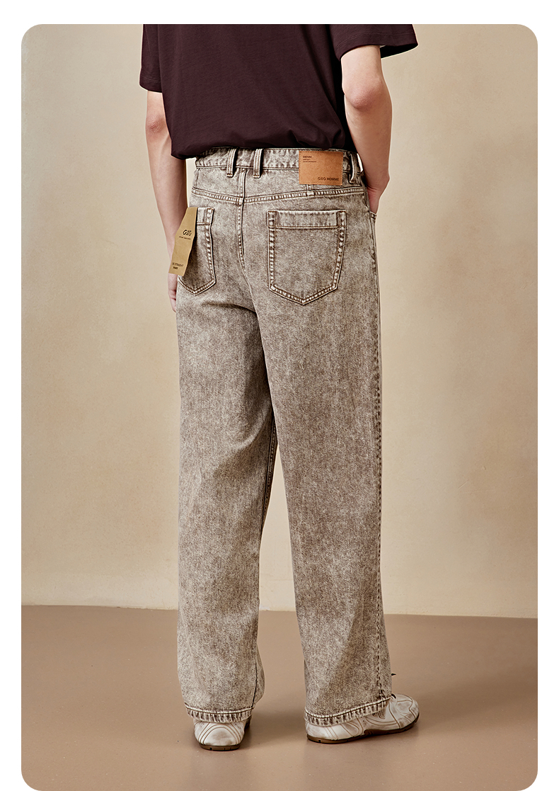 GXG男装 宽松直筒复古咖色水洗牛仔裤休闲弹力长裤2025夏季热卖