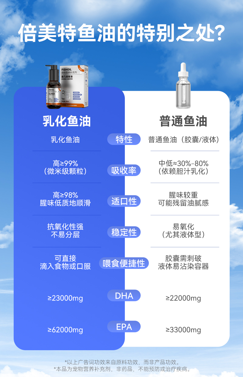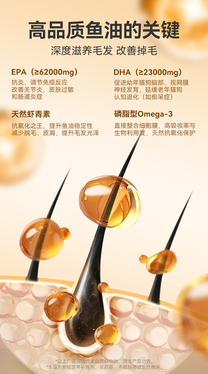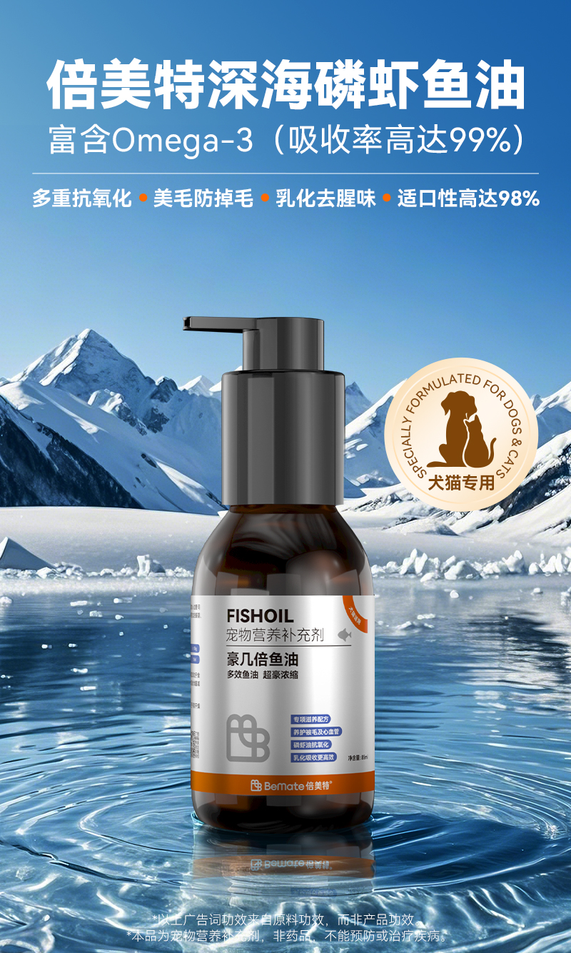 BeMate倍美特 豪几倍鱼油 超豪浓缩鱼油 养护被毛及心血管 原料组成:纯水,鱼油、磷虾油、菊粉纯