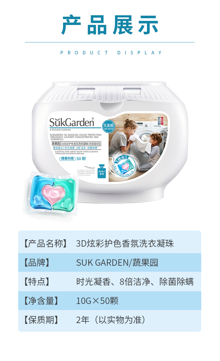 蔬果园3D洗衣凝珠(浓缩强效型)-10g*50颗*3盒+蔬果园留香珠15g*6袋