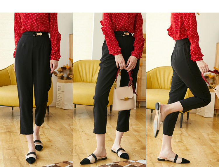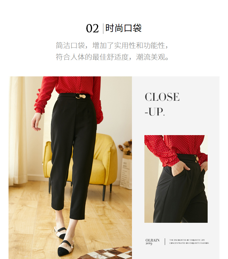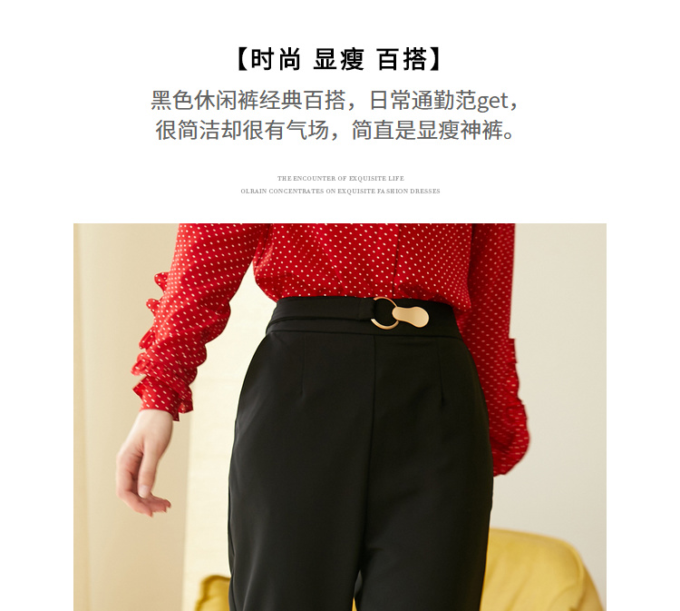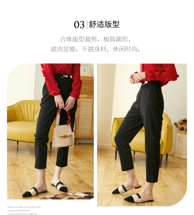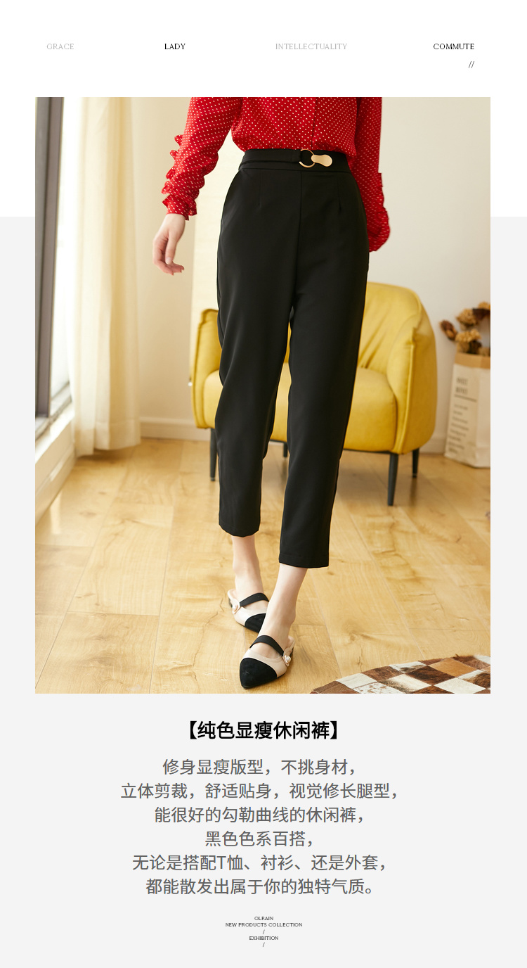 欧芮儿九分西装裤女2020新款秋装高腰显瘦黑色休闲裤女简约哈伦裤