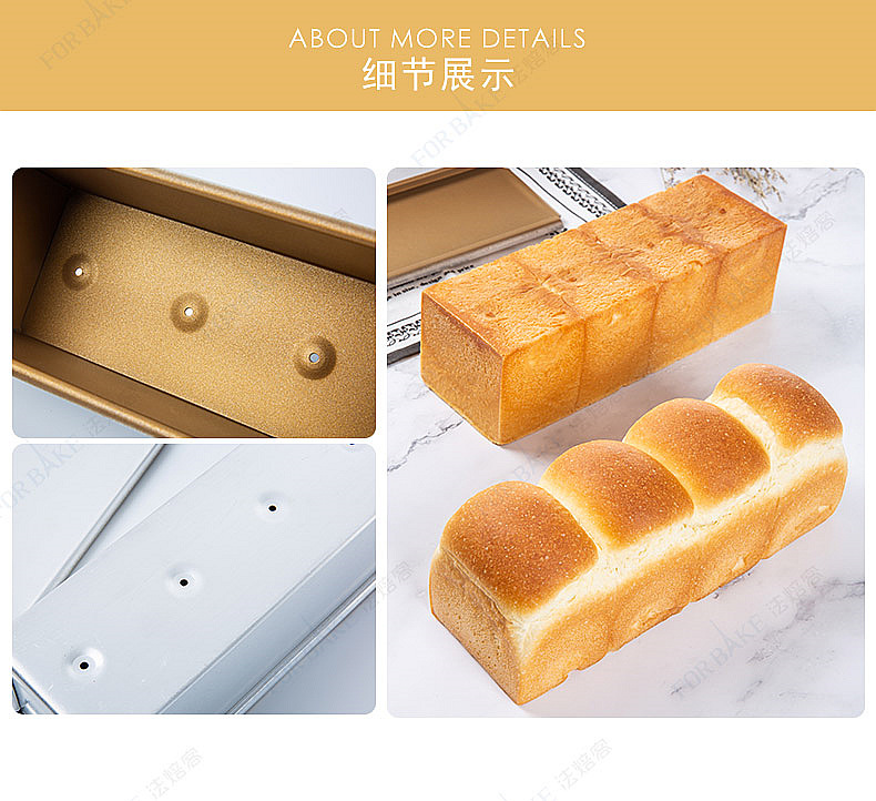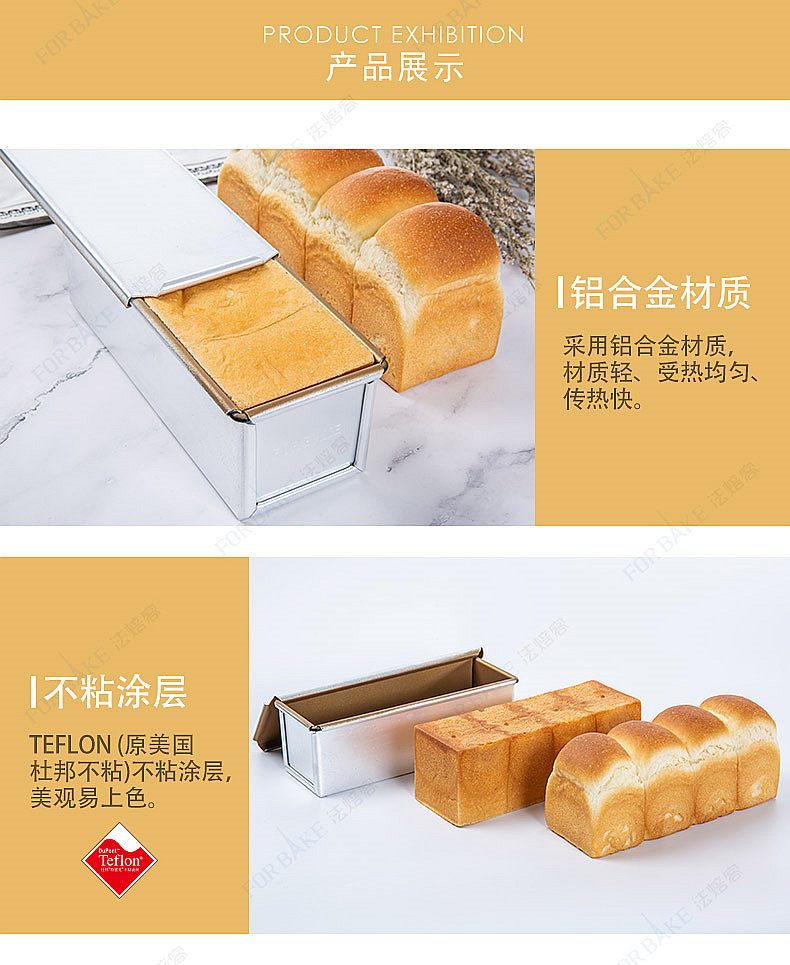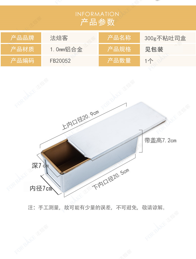 FB20052 法焙客300g不沾吐司盒(长款带盖)蛋糕面包土司模家用