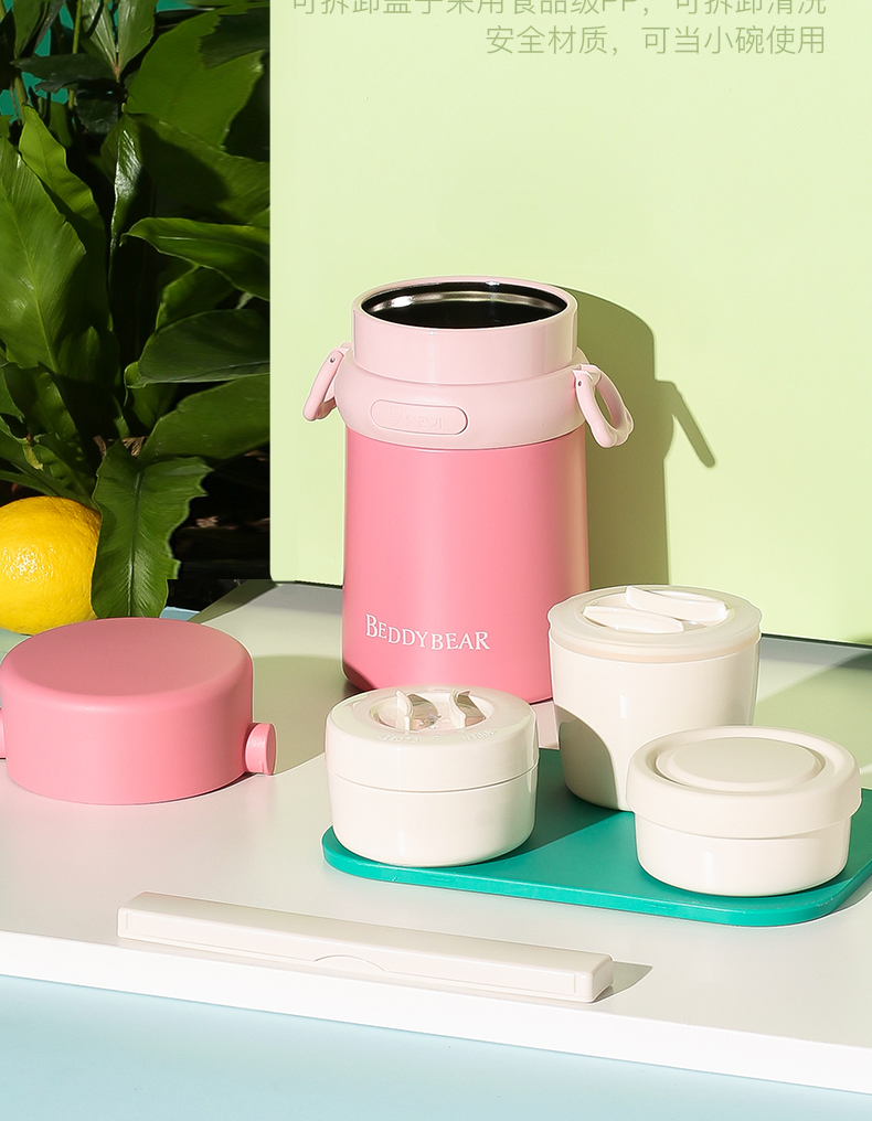 【品牌直发】【杯具熊缤纷元气系列保温饭盒】上班族便当多层超长保温桶600ml
