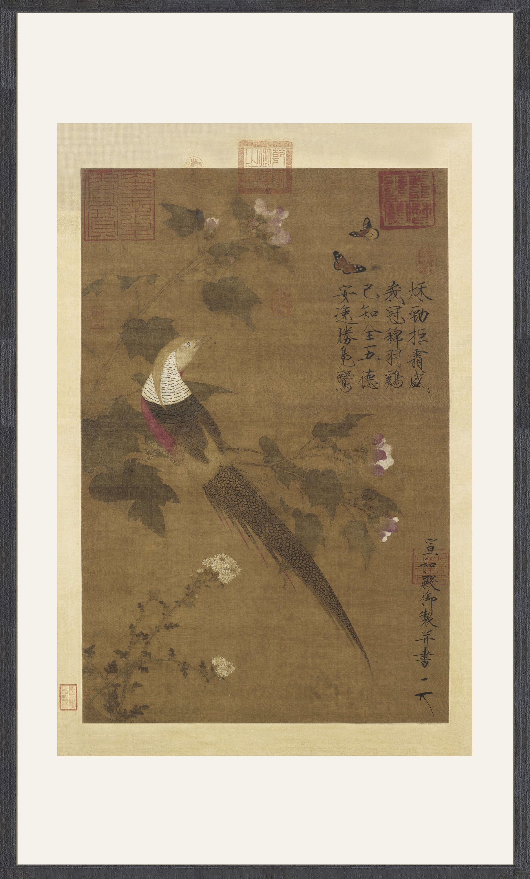 【定制书画】(宋)宋徽宗赵佶《芙蓉锦鸡图》绢本 镜片镶画框 成品 馆藏书画Gao仿复制艺术品(付款后28天内发货,顺丰快递请当场拆箱验收)