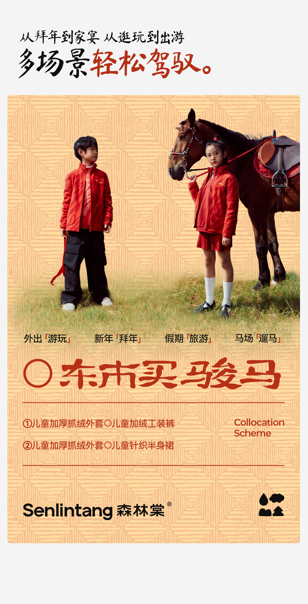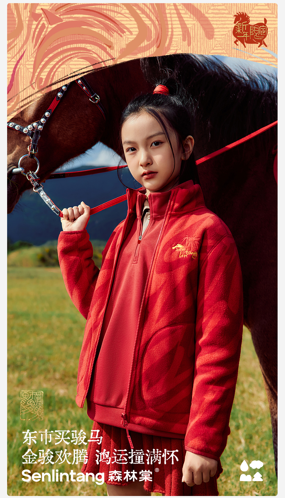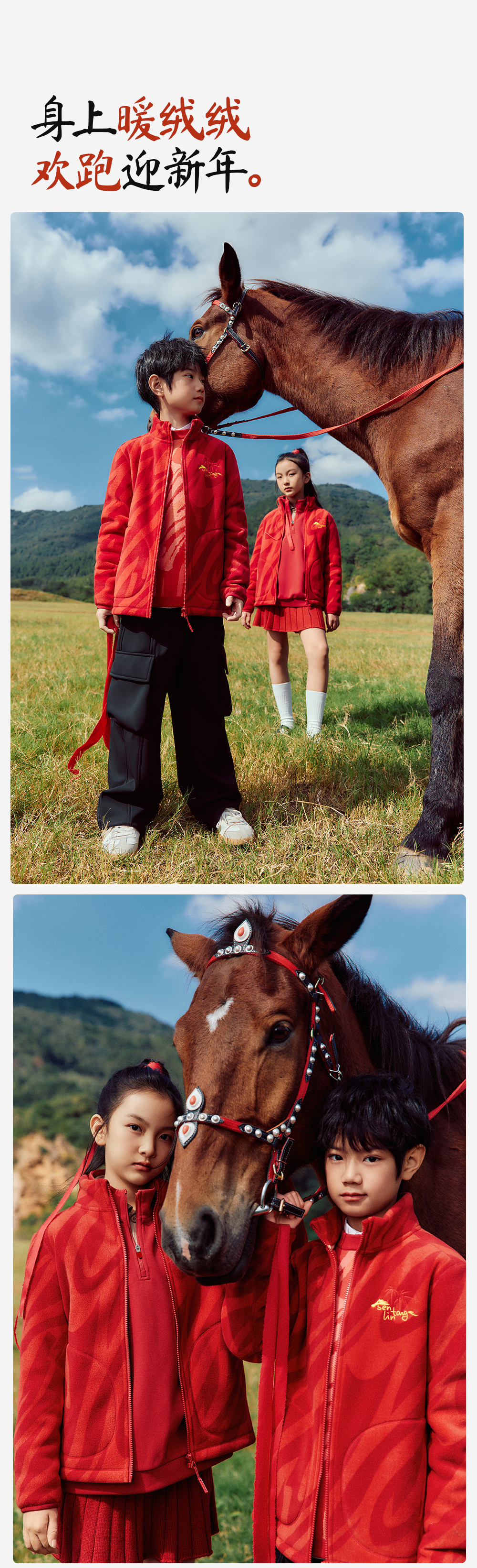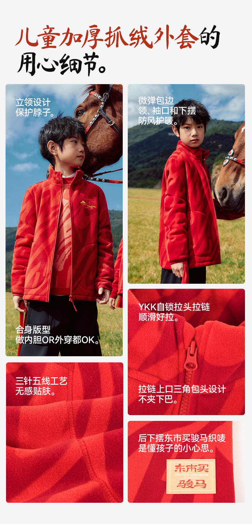 【新年款立领抓绒外套】森林棠26新款「电跑跑」保暖儿童鸿运相伴抓绒外套21861122
