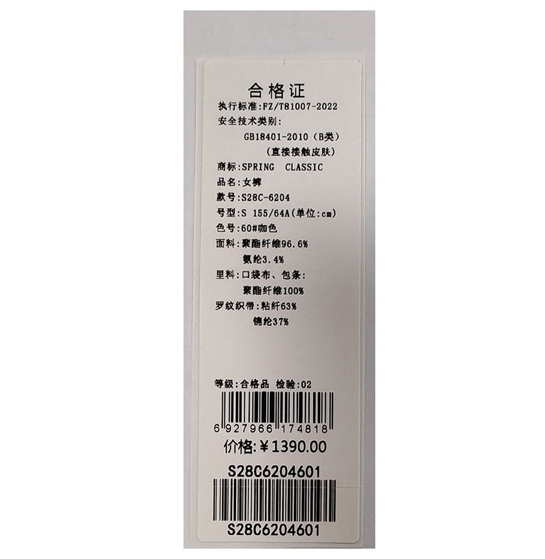 西贝伦长裤S28C6204