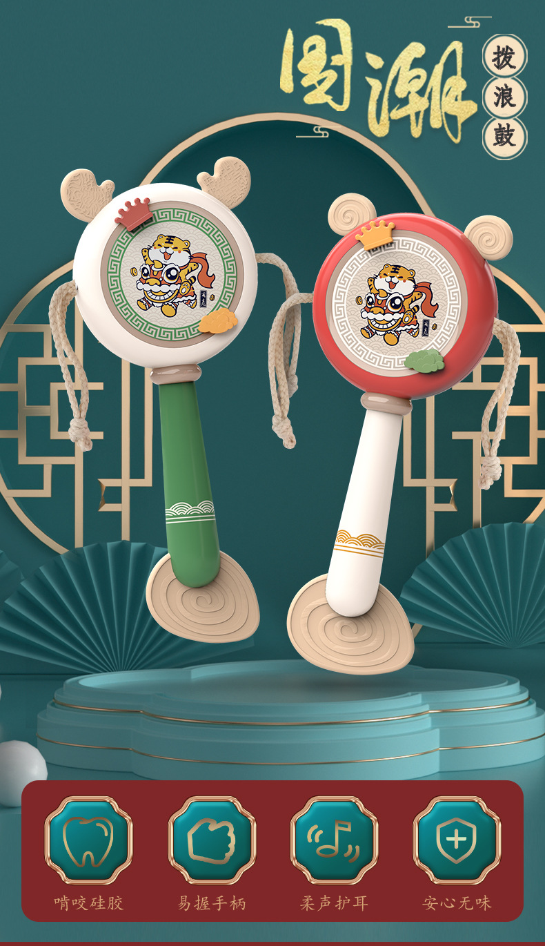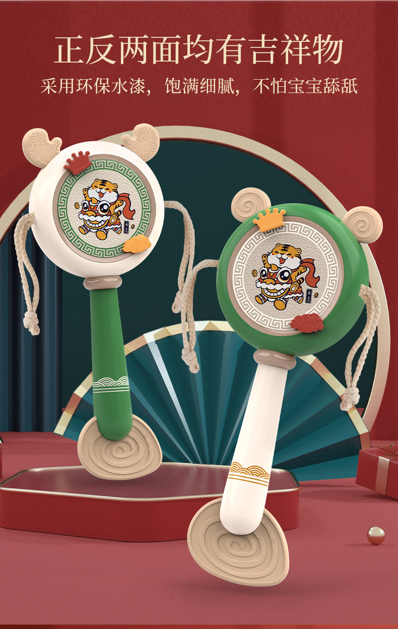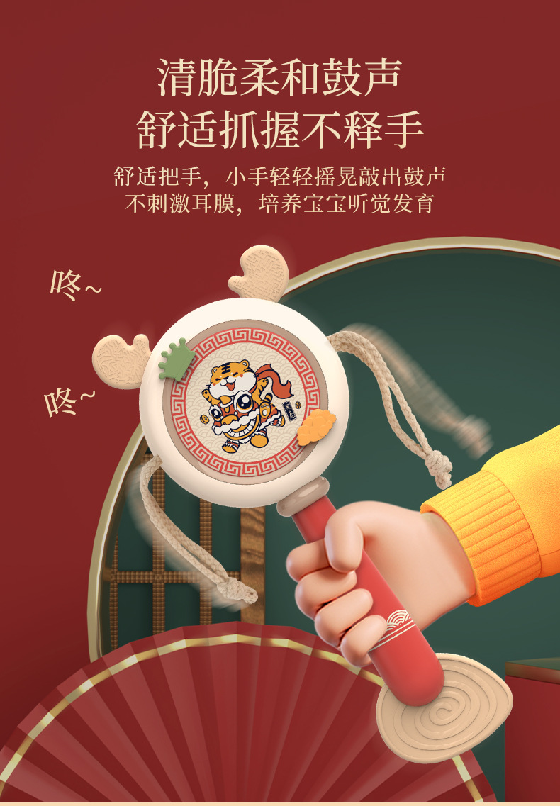 【萌趣卡通!宝宝拨浪鼓】国潮玩具婴儿大号拨浪鼓,可啃咬玩具,手摇鼓波浪鼓,益智玩具1岁宝宝-QQ
