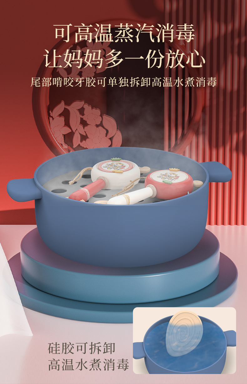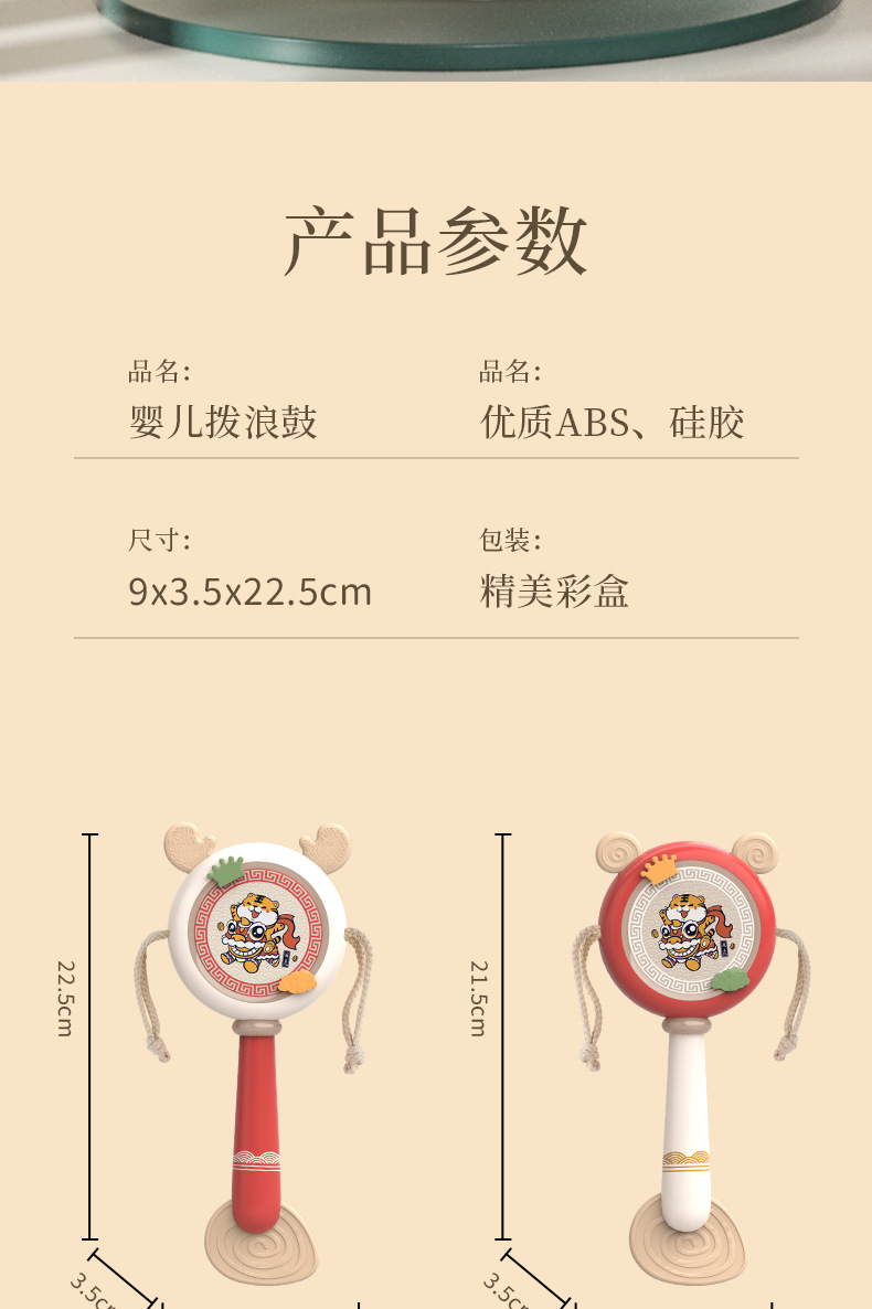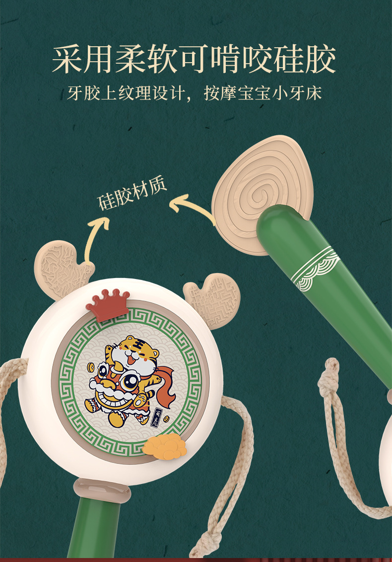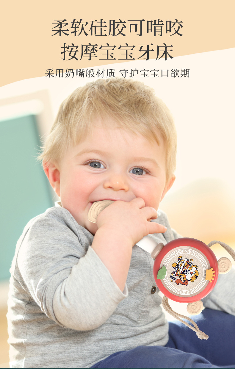 【萌趣卡通!宝宝拨浪鼓】国潮玩具婴儿大号拨浪鼓,可啃咬玩具,手摇鼓波浪鼓,益智玩具1岁宝宝-QQ
