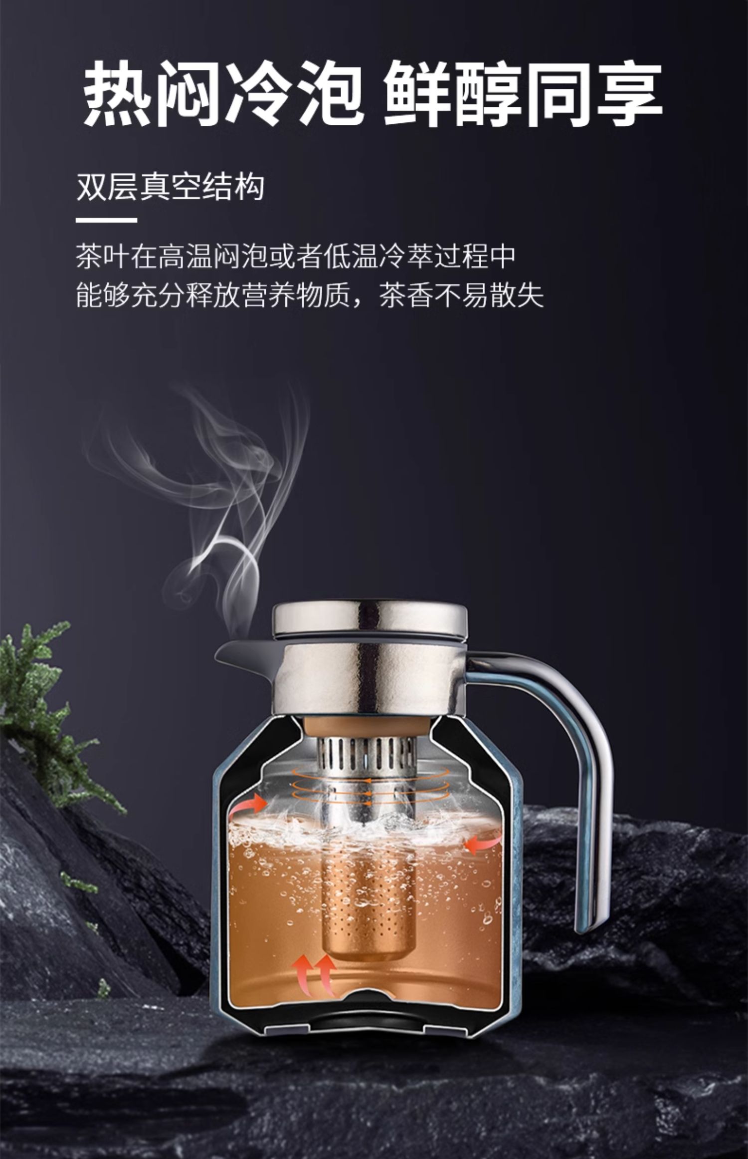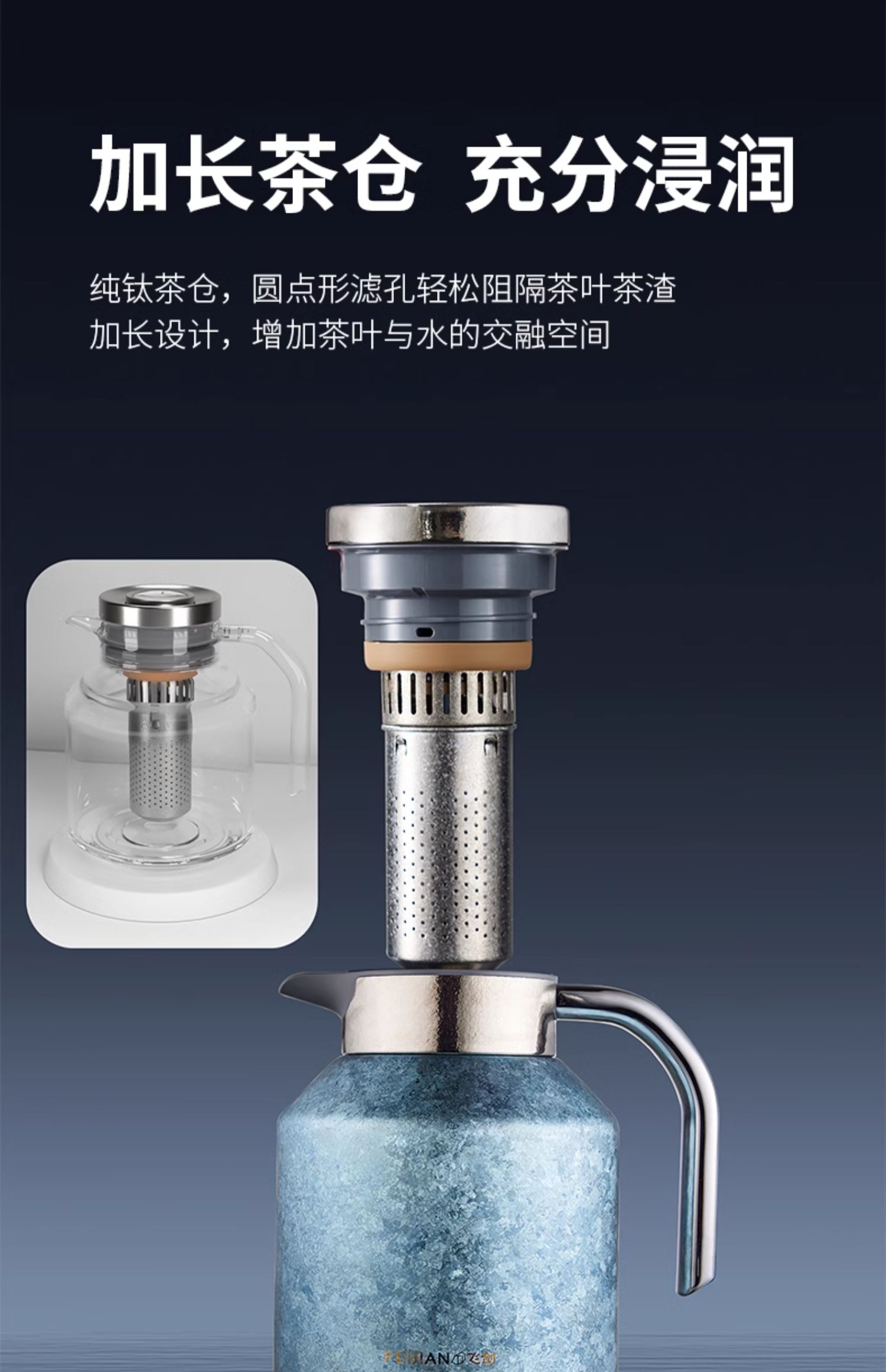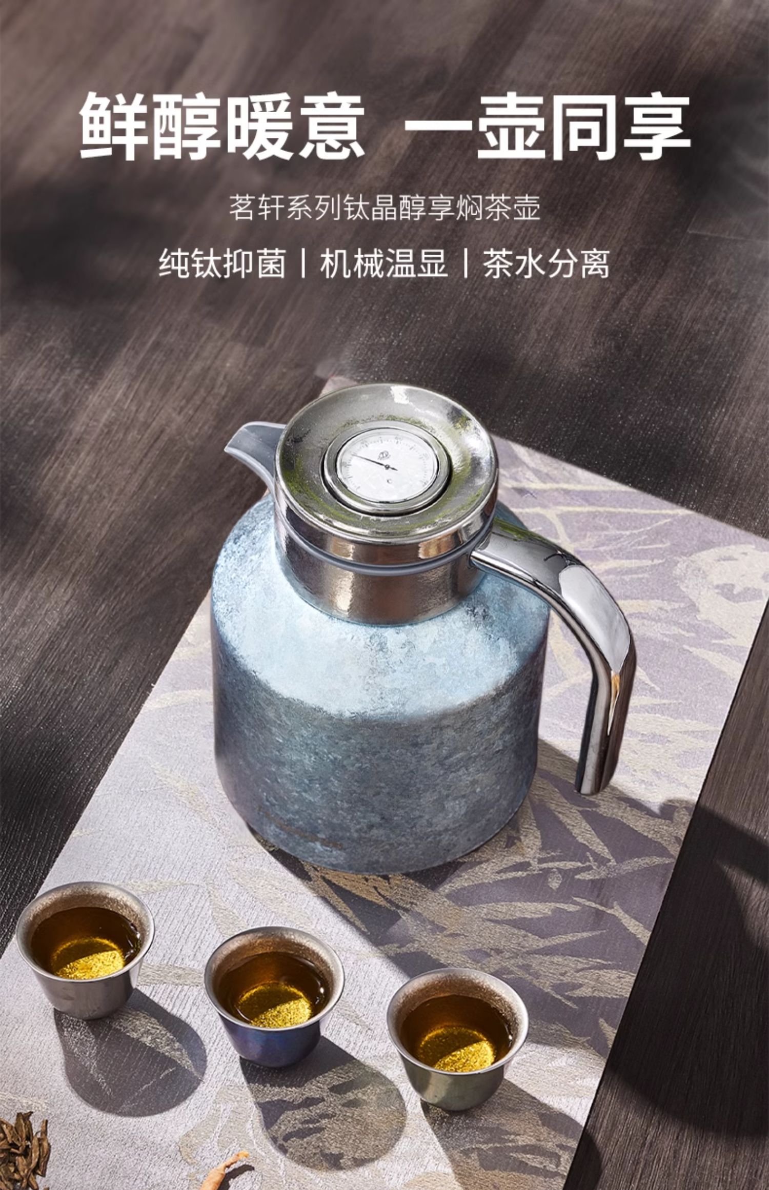 飞剑/茗轩醇享焖茶壶全钛保温壶精准测温双层钛闷泡茶水壶1800ml