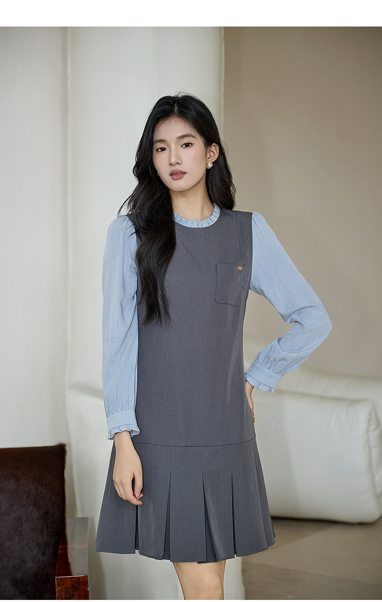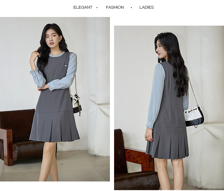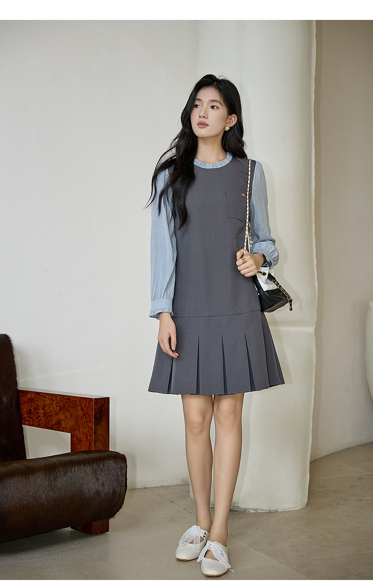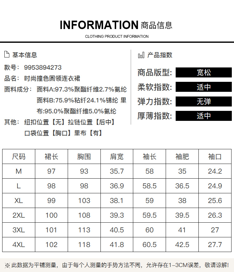 奢姿大码女装2025秋季胖妹妹时尚撞色设计气质花边装饰圆领连衣裙9953894273