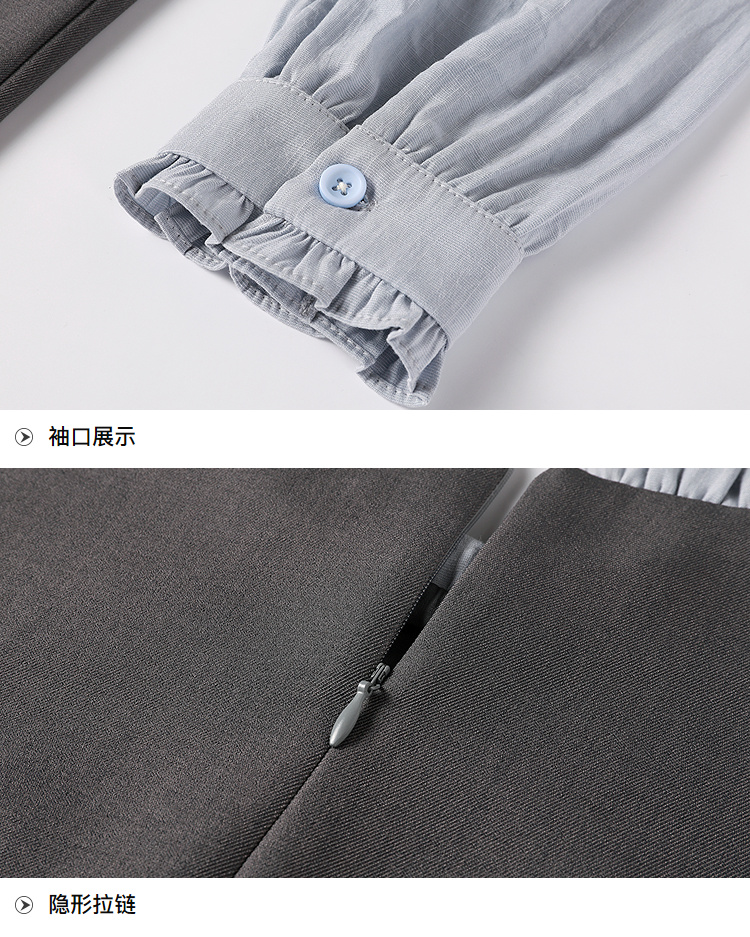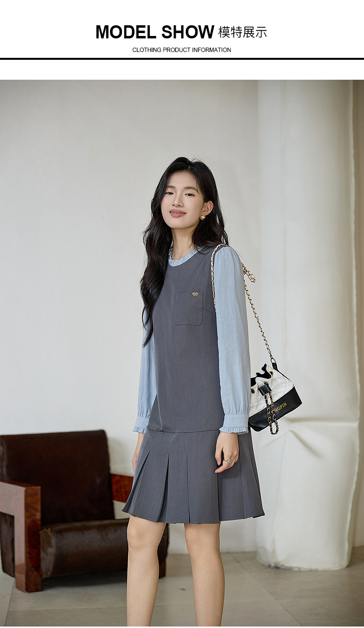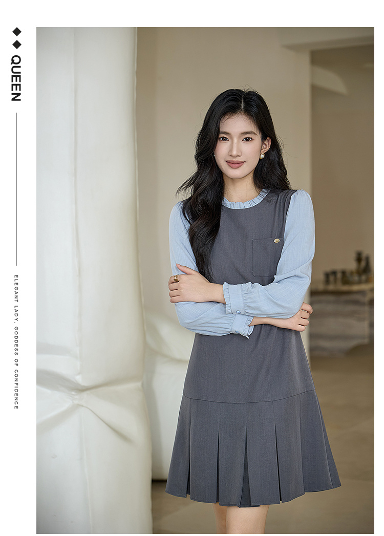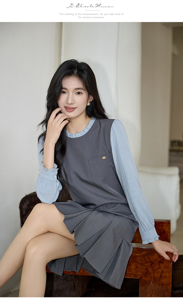 奢姿大码女装2025秋季胖妹妹时尚撞色设计气质花边装饰圆领连衣裙9953894273