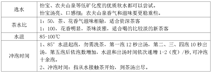 茉香与茶香相融,清花韵与清花果蜜韵相和、汤香清雅、稳定持久。