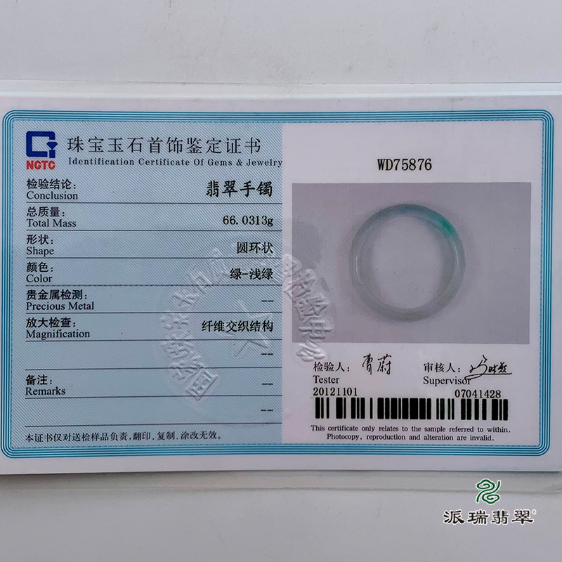 派瑞翡翠 翡翠手镯 糯种 浅绿