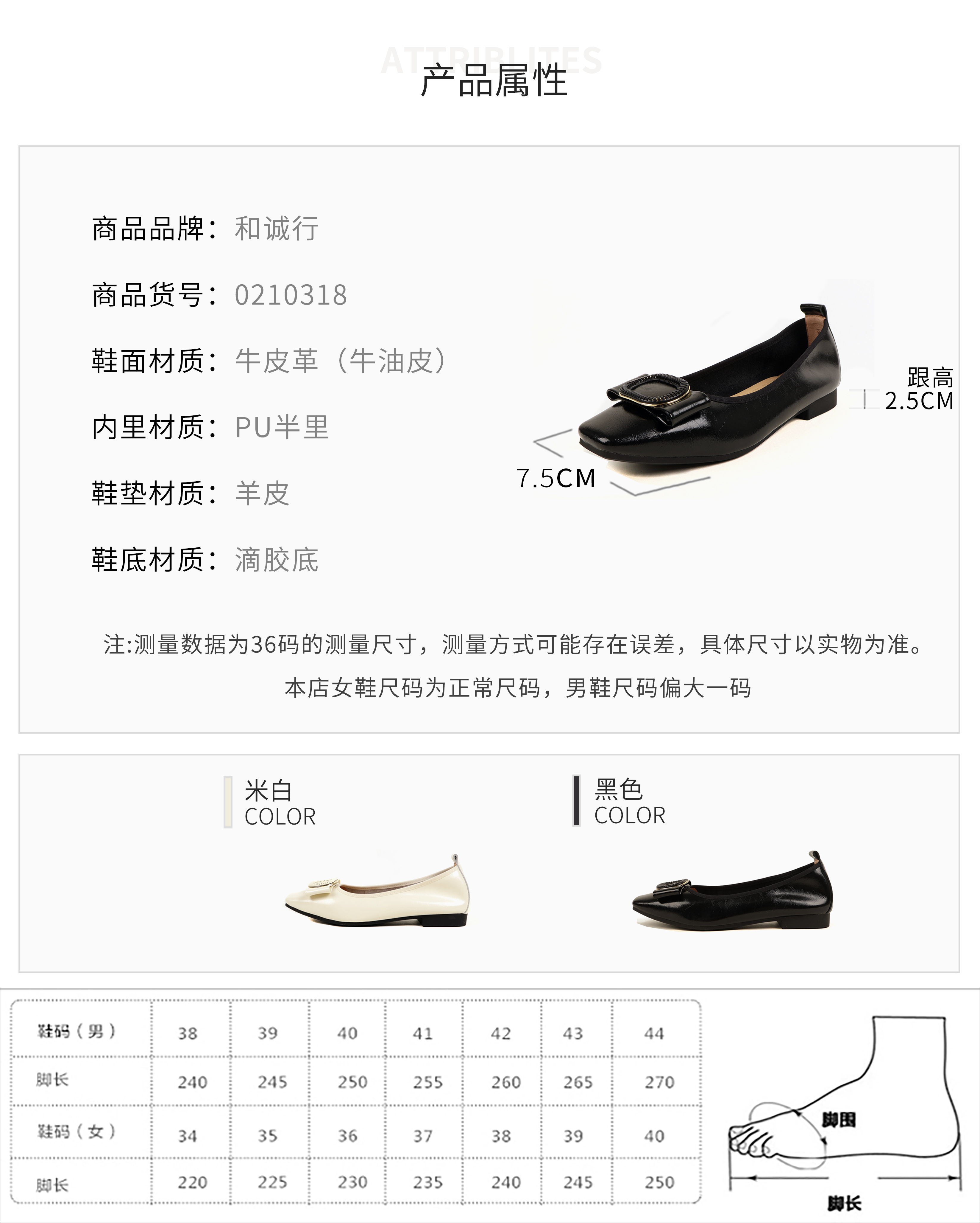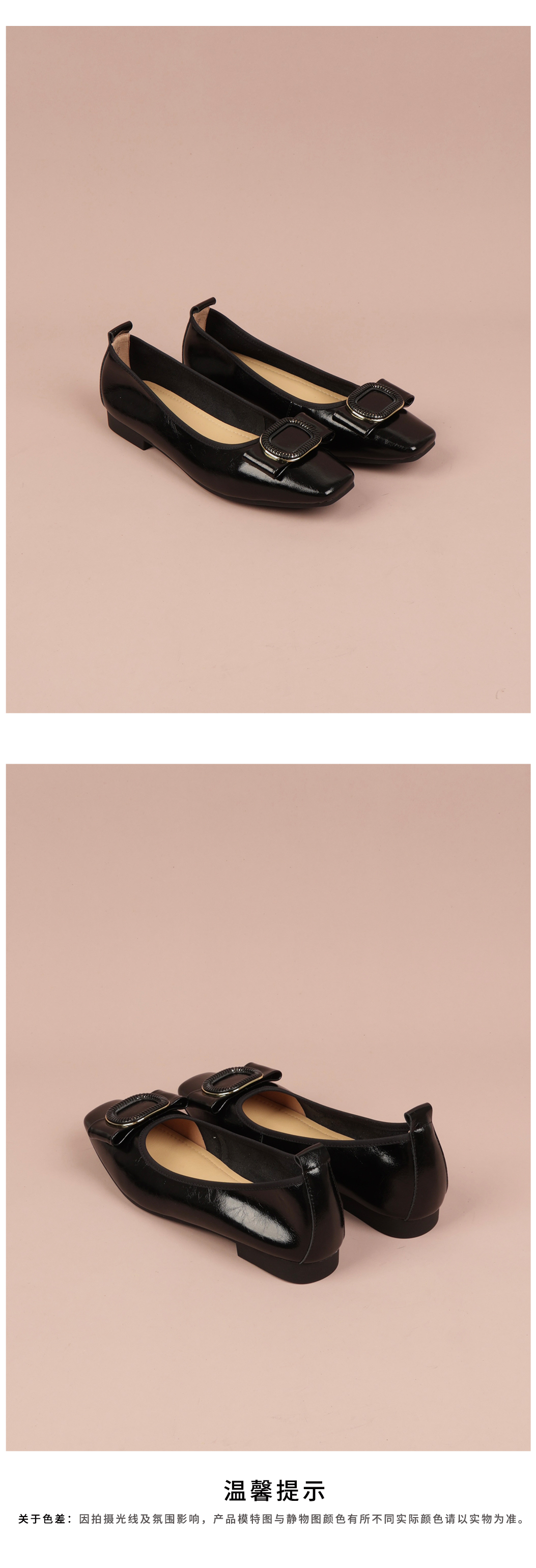 和诚行2026春季新款真皮软底方头舒适不累脚牛皮平跟单鞋0210318