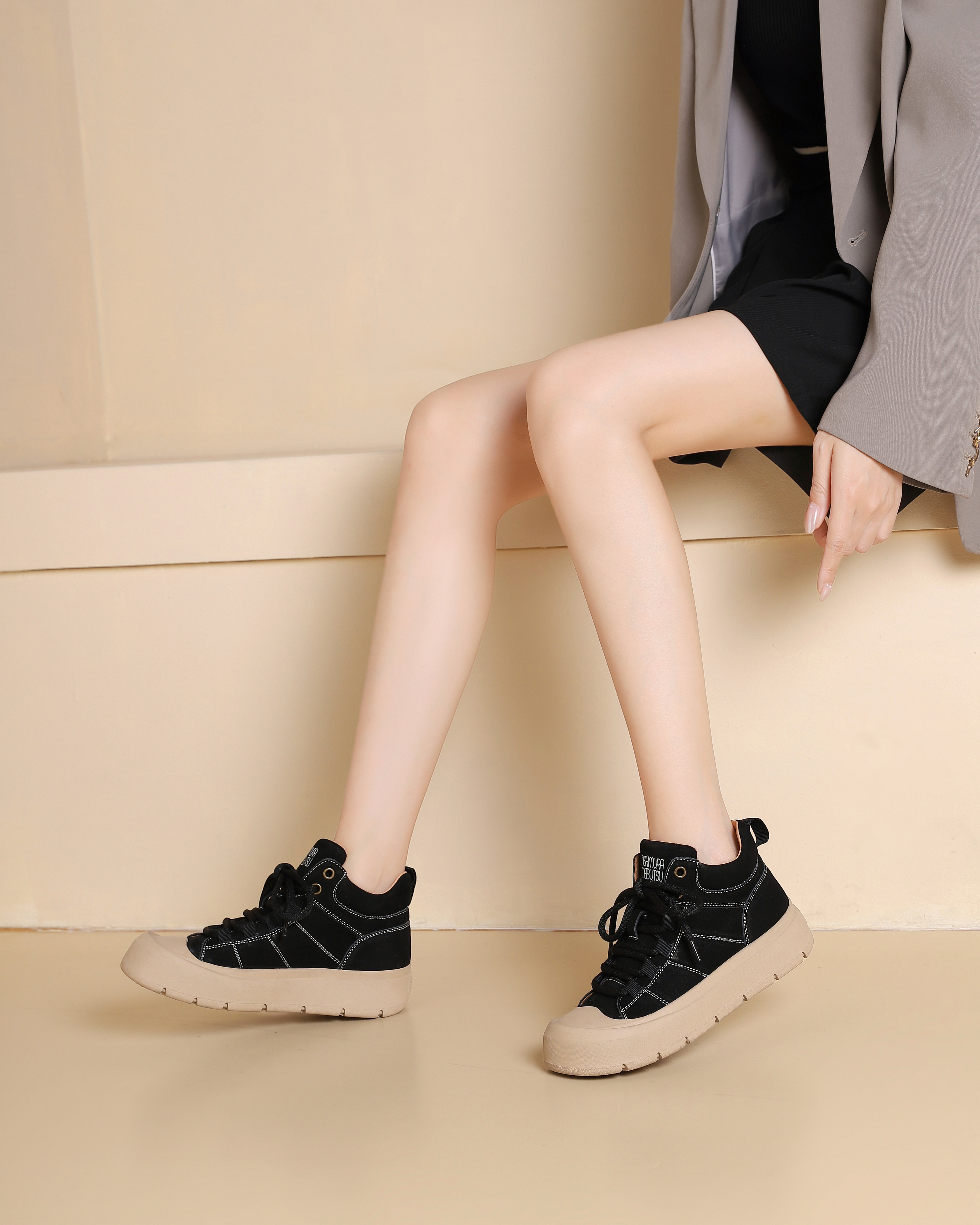 西村名物2024年冬季新款高帮系带舒适百搭板鞋矮靴X24DS46911