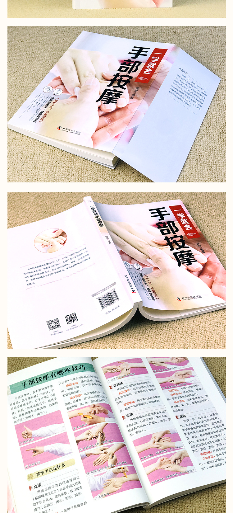 【推荐】全3册 一学就会的头耳手部足部头部中医推拿按摩书 人体经络穴位按摩大全足疗经络图拍打手法养生调理书籍图解教程零基础健康正版