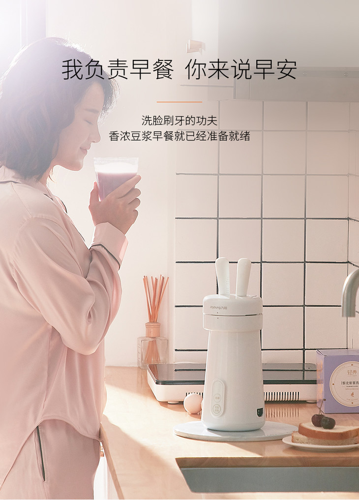 南5 九阳(Joyoung) 小兔子豆浆机DJ03E-A1mini(白)免滤无网 快速制浆 高速破壁 易清洁 1-2人饮 萌型