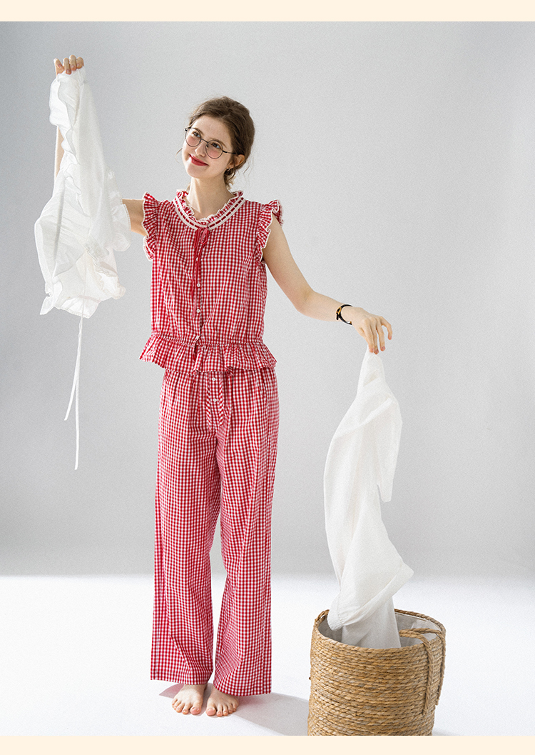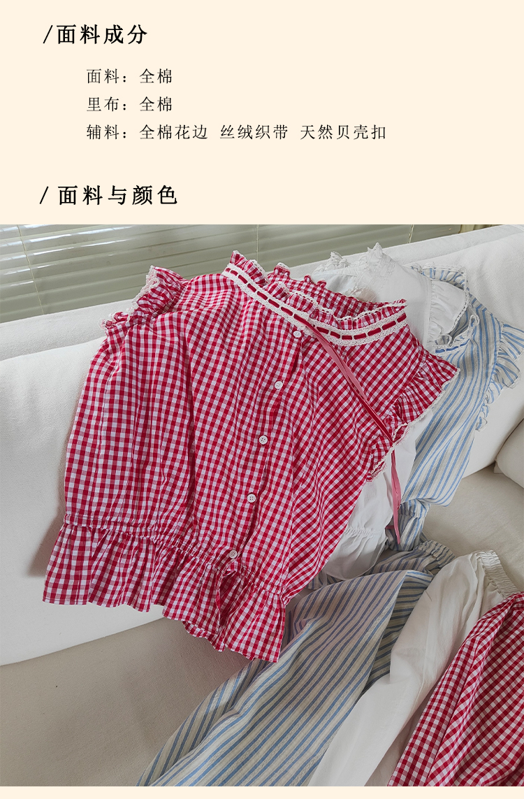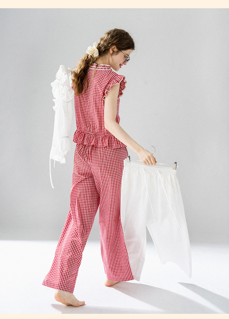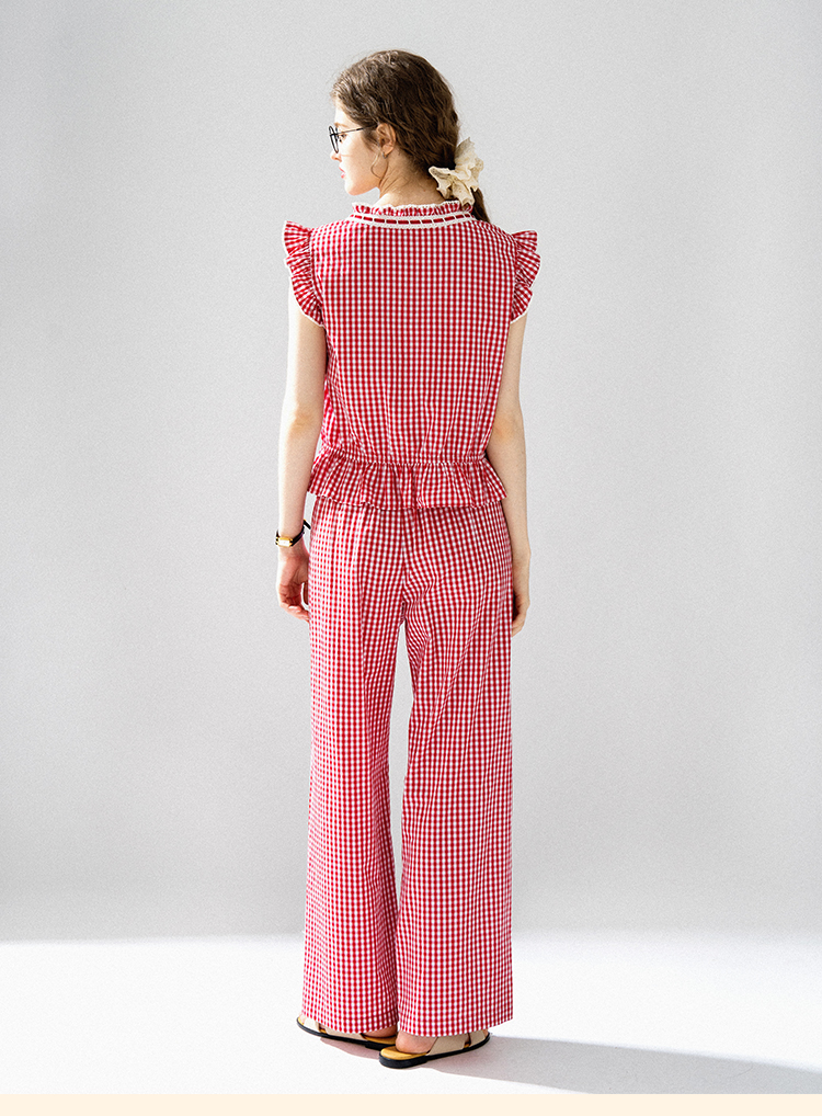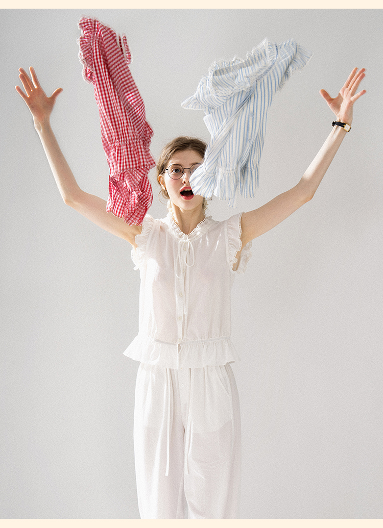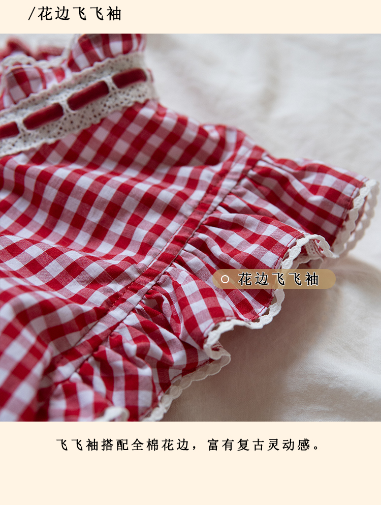 浮生八记/24A036/复古全棉格纹飞飞袖小衫