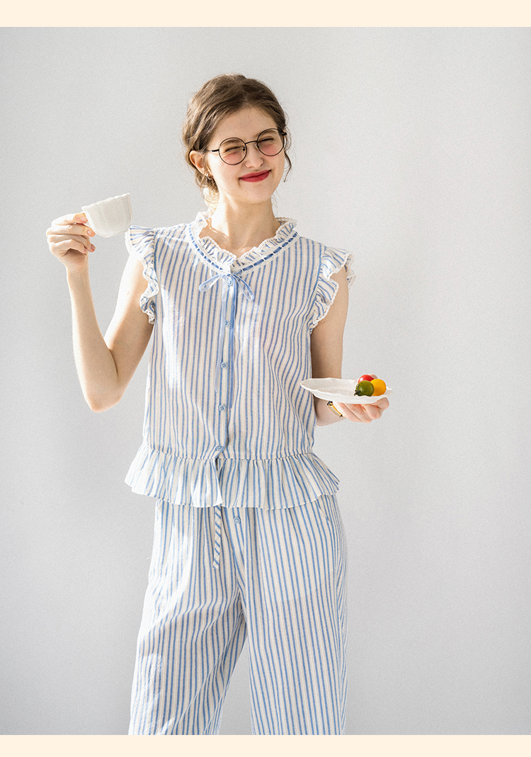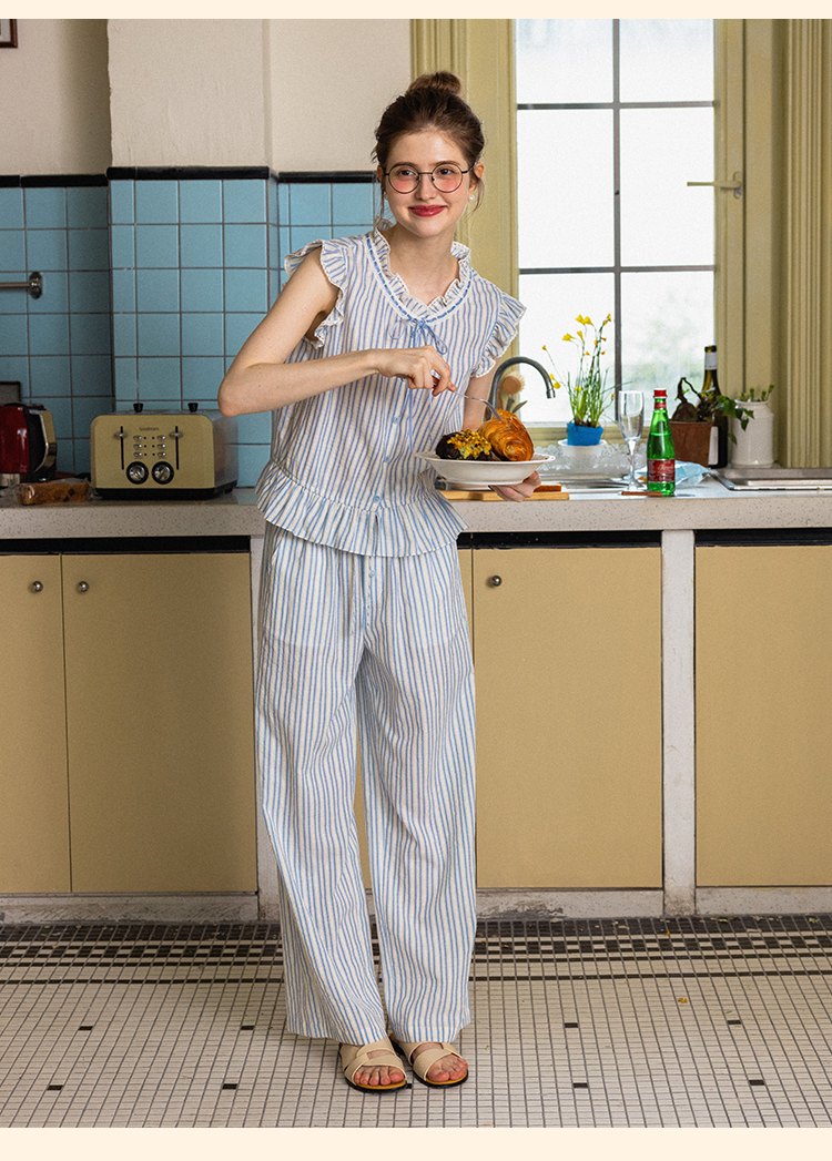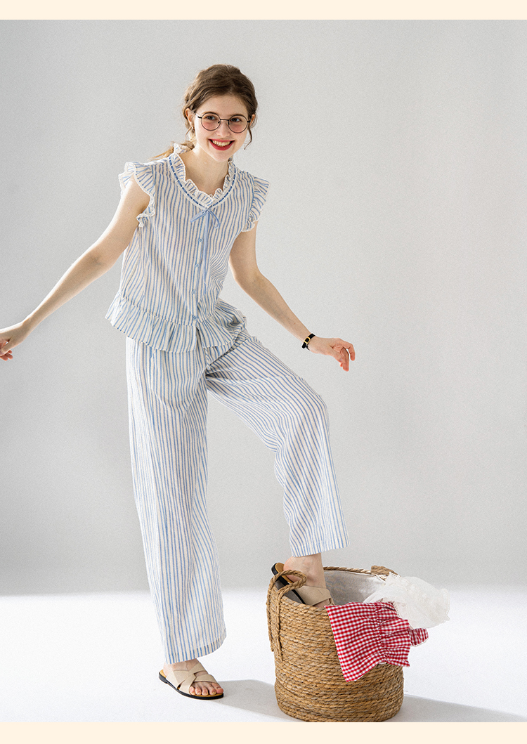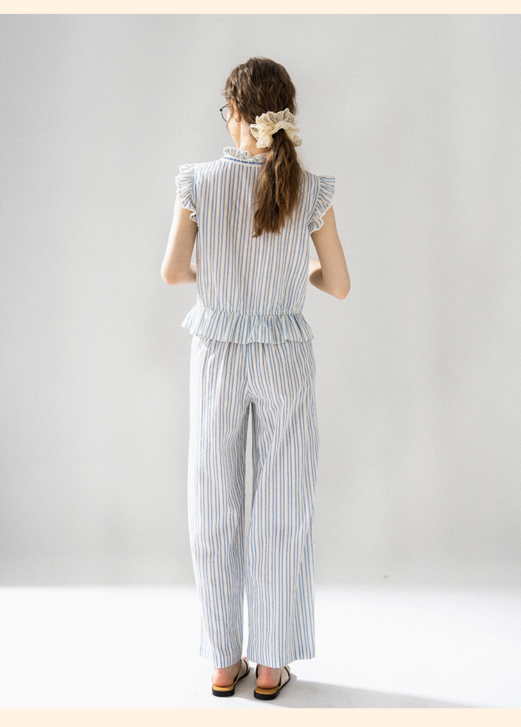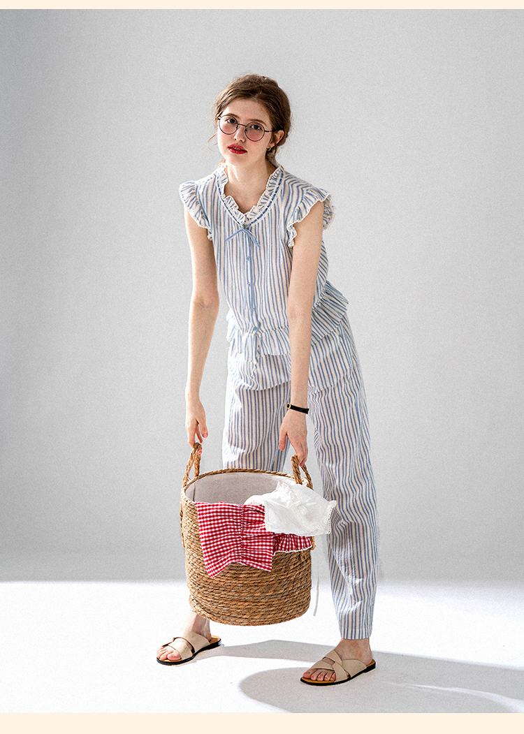 浮生八记/24A036/复古全棉格纹飞飞袖小衫