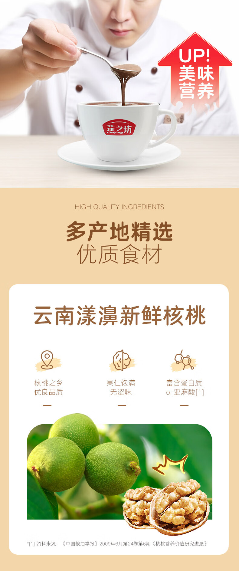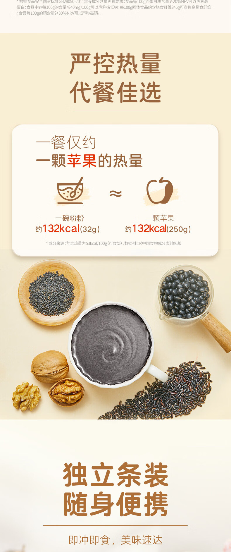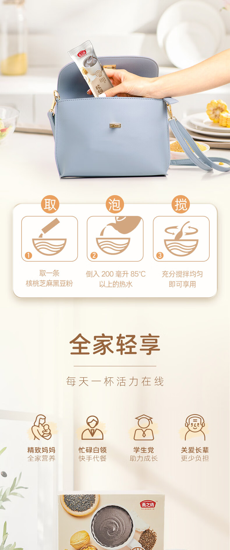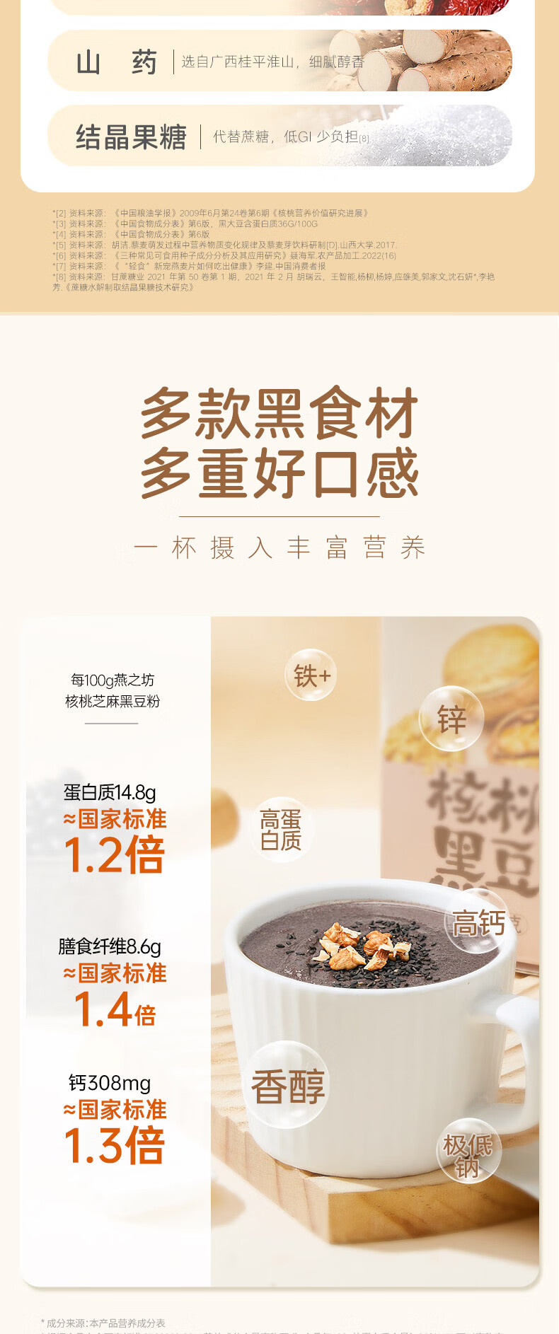 燕之坊 核桃芝麻黑豆粉 豆浆粉 粗粮粉 营养早餐 冲饮代餐即食粉 饱腹 盒装 320g 1盒