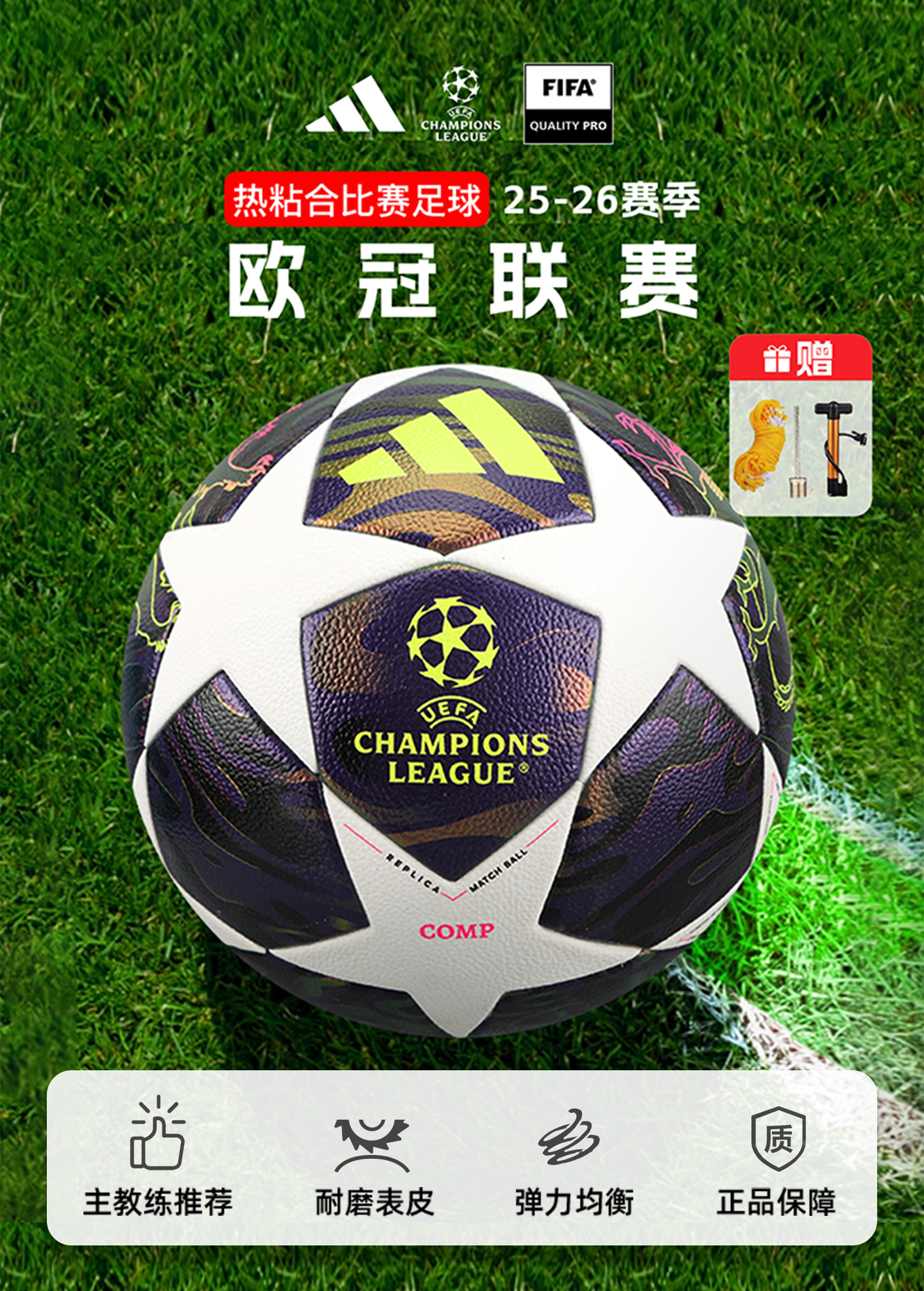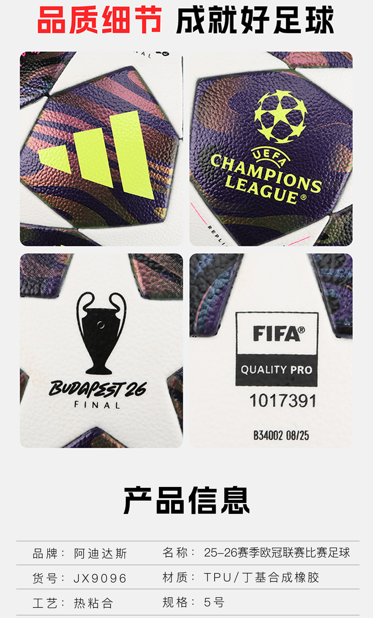 小李子阿迪达斯25-26赛季欧冠联赛5号热粘合比赛训练球JX9096