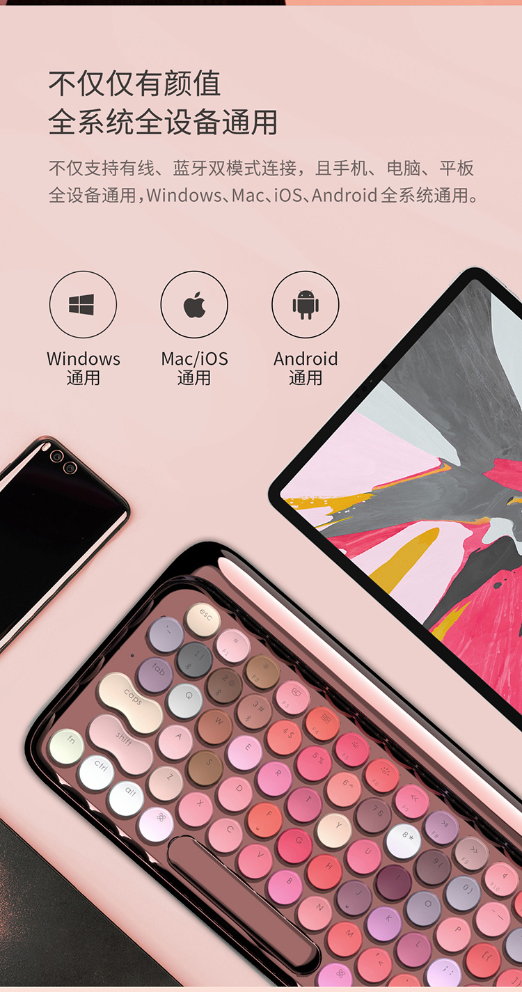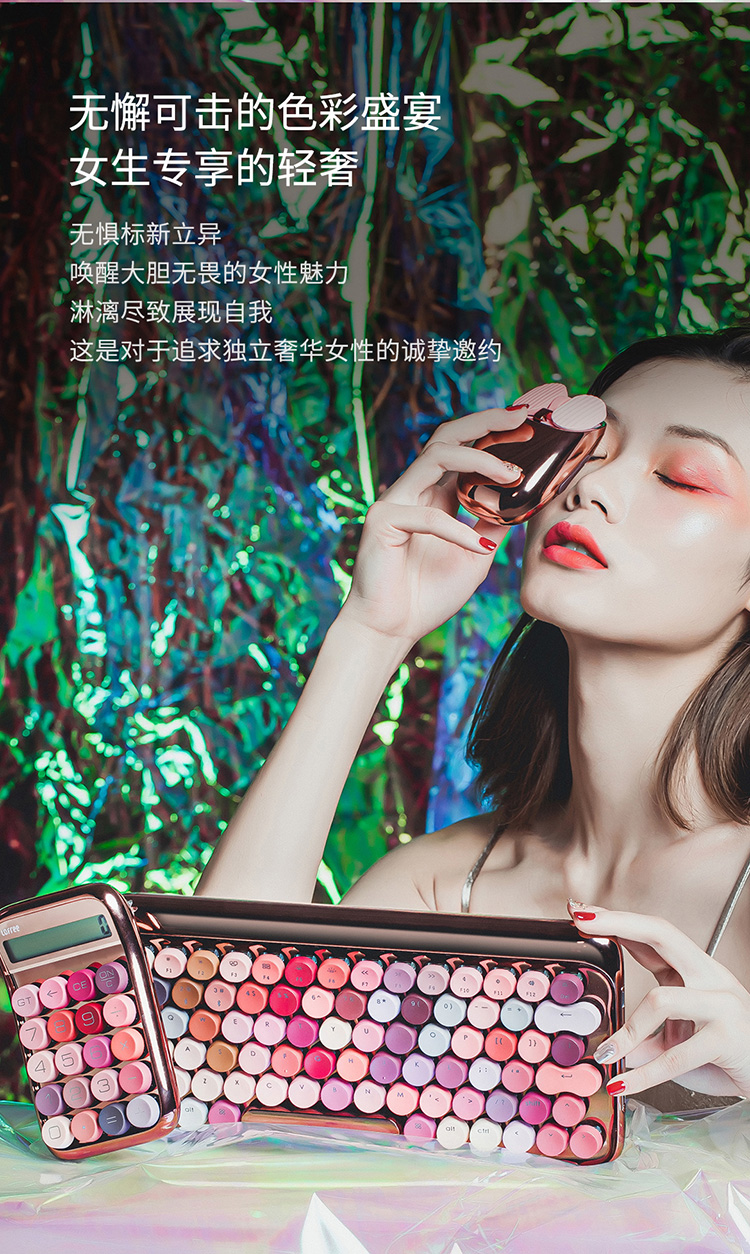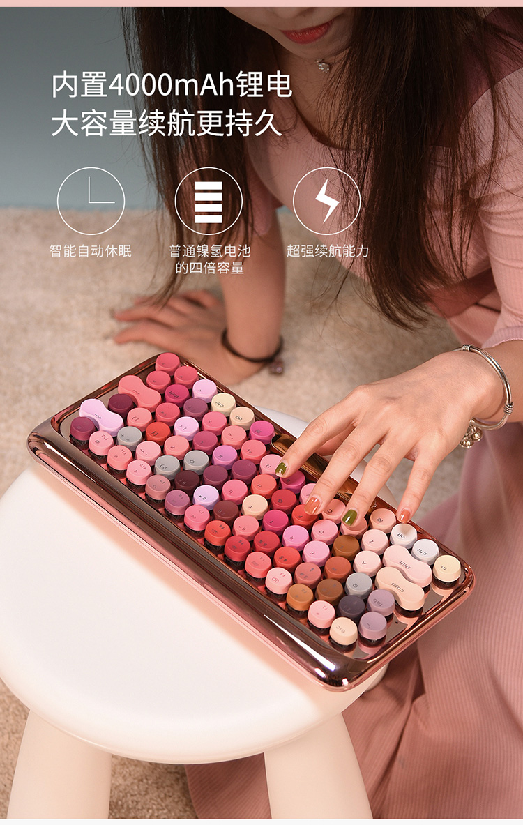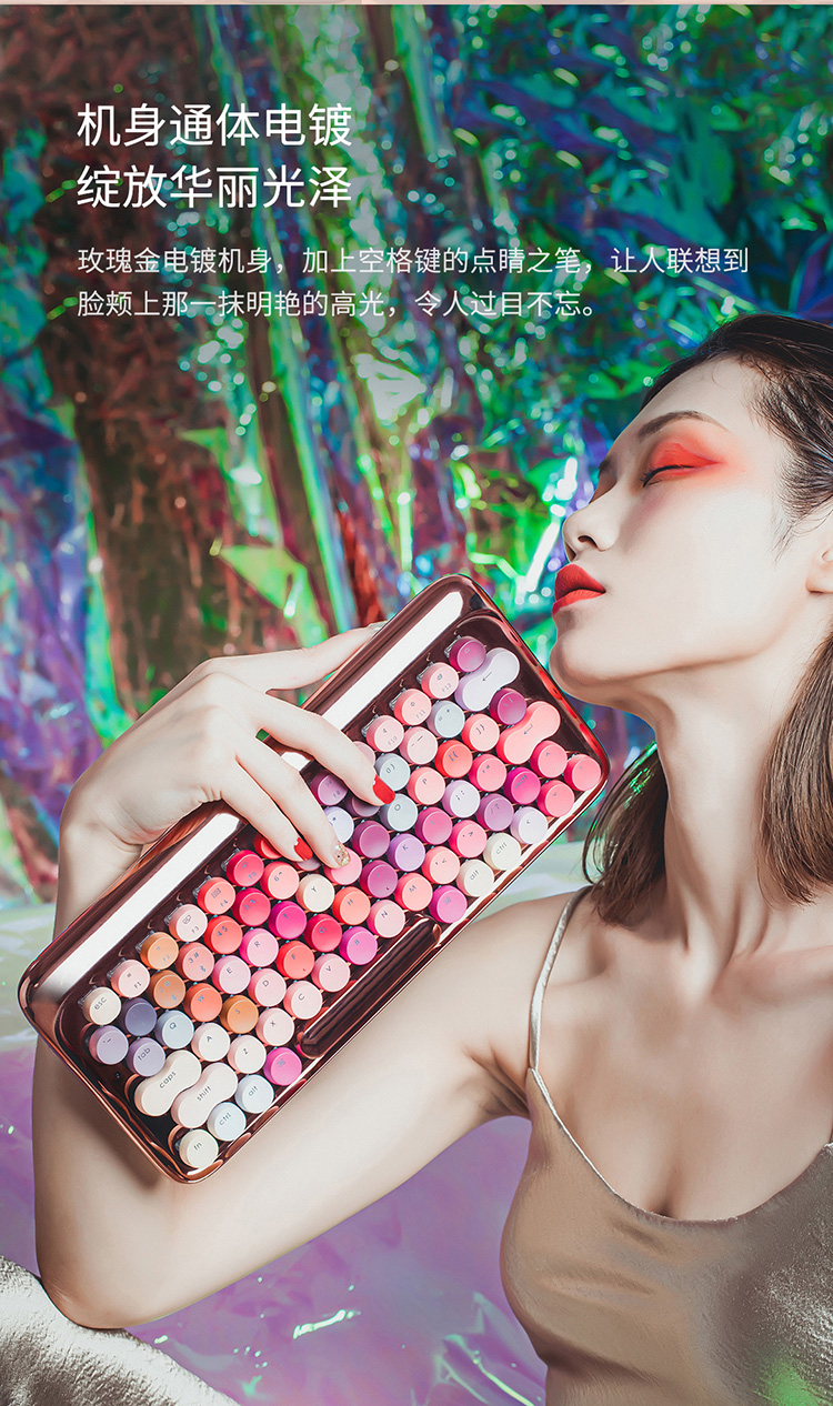 洛斐限量款无线蓝牙机械键盘-玫瑰金