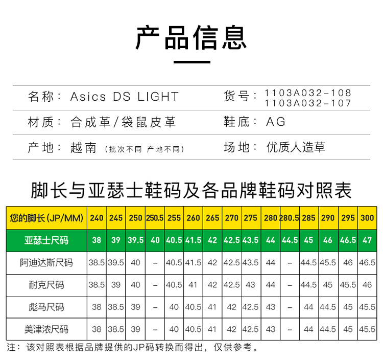 Asics/亚瑟士DS LIGHT AG短钉次顶袋鼠皮成人足球鞋男1103A032-108