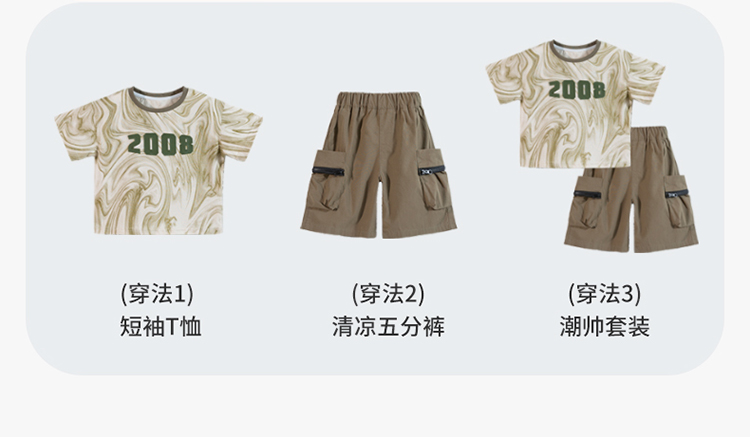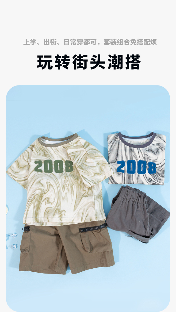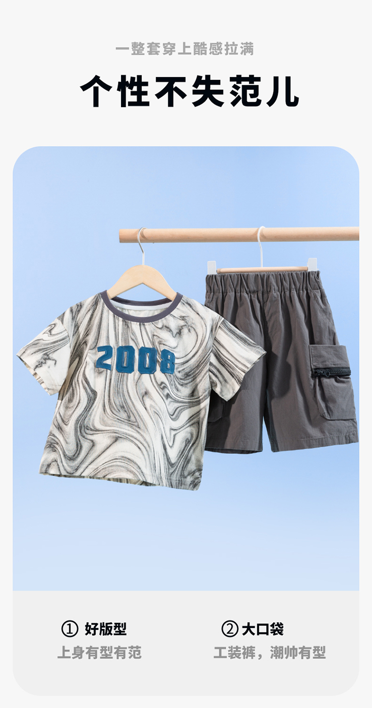 贝贝怡男童短袖套装夏装中童宝宝衣服儿童t恤两件套232T2616