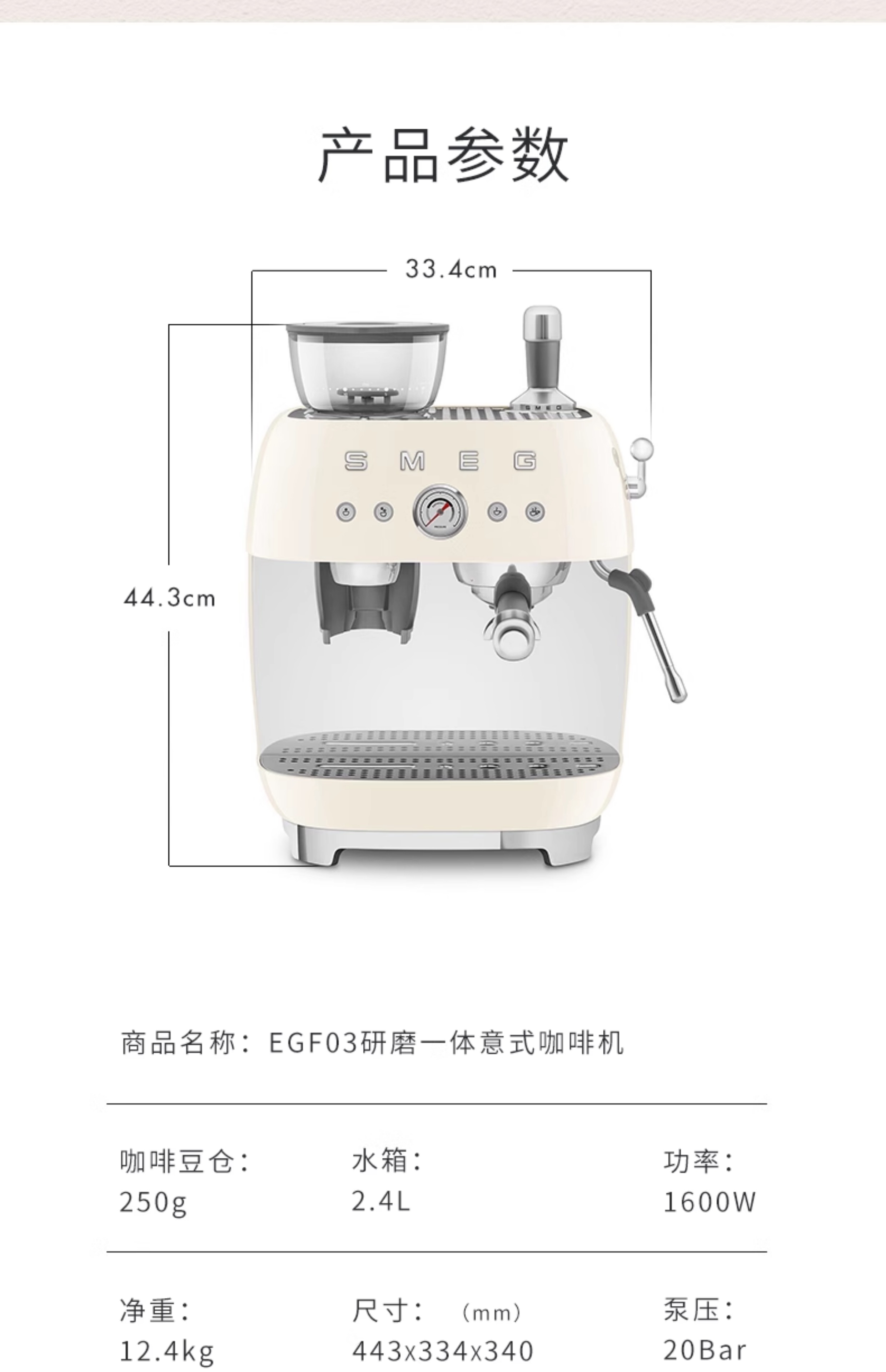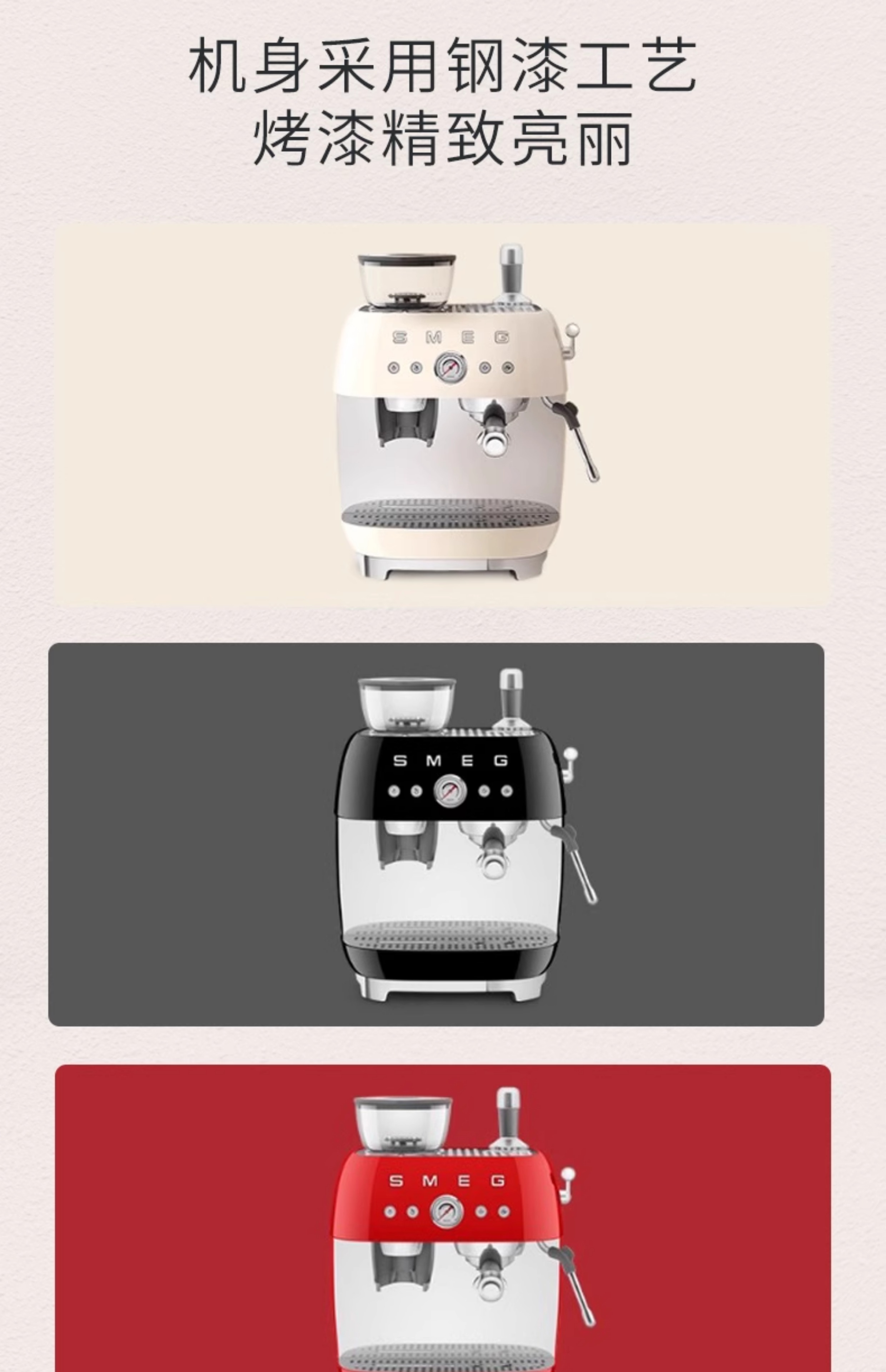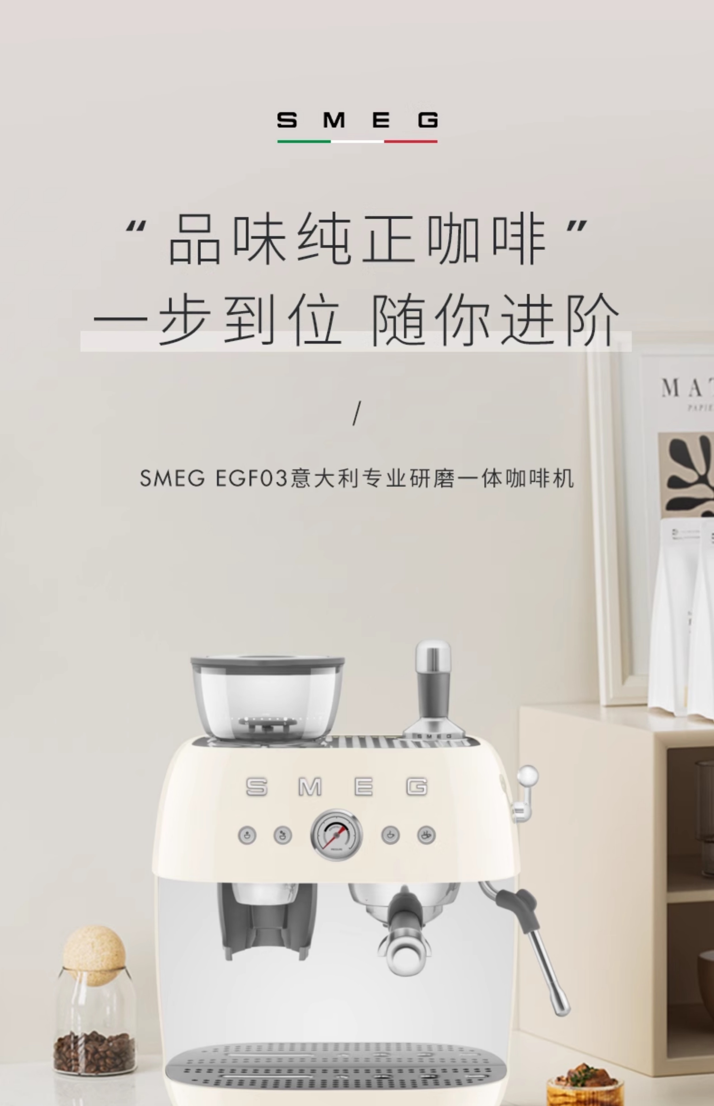 SMEG/斯麦格 EGF03咖啡机研磨一体家用专业级意式料理机蒸汽打奶泡