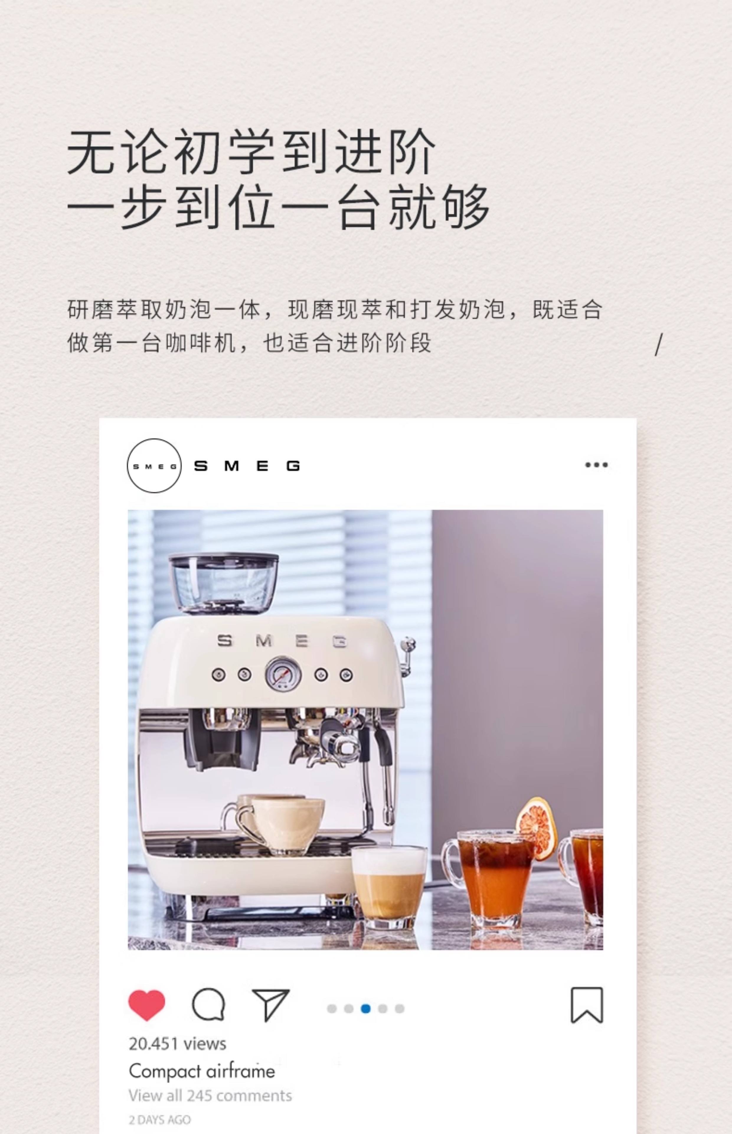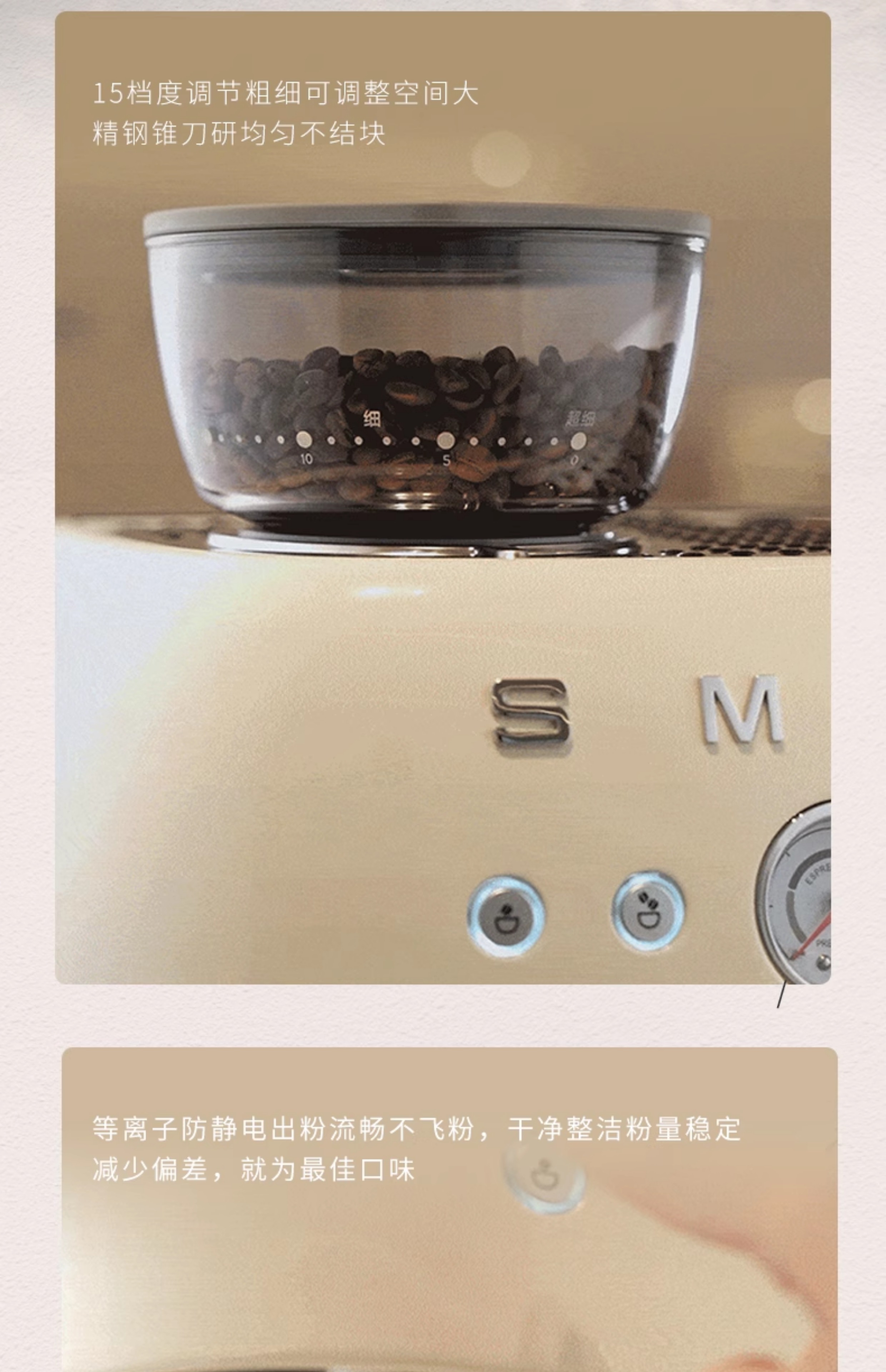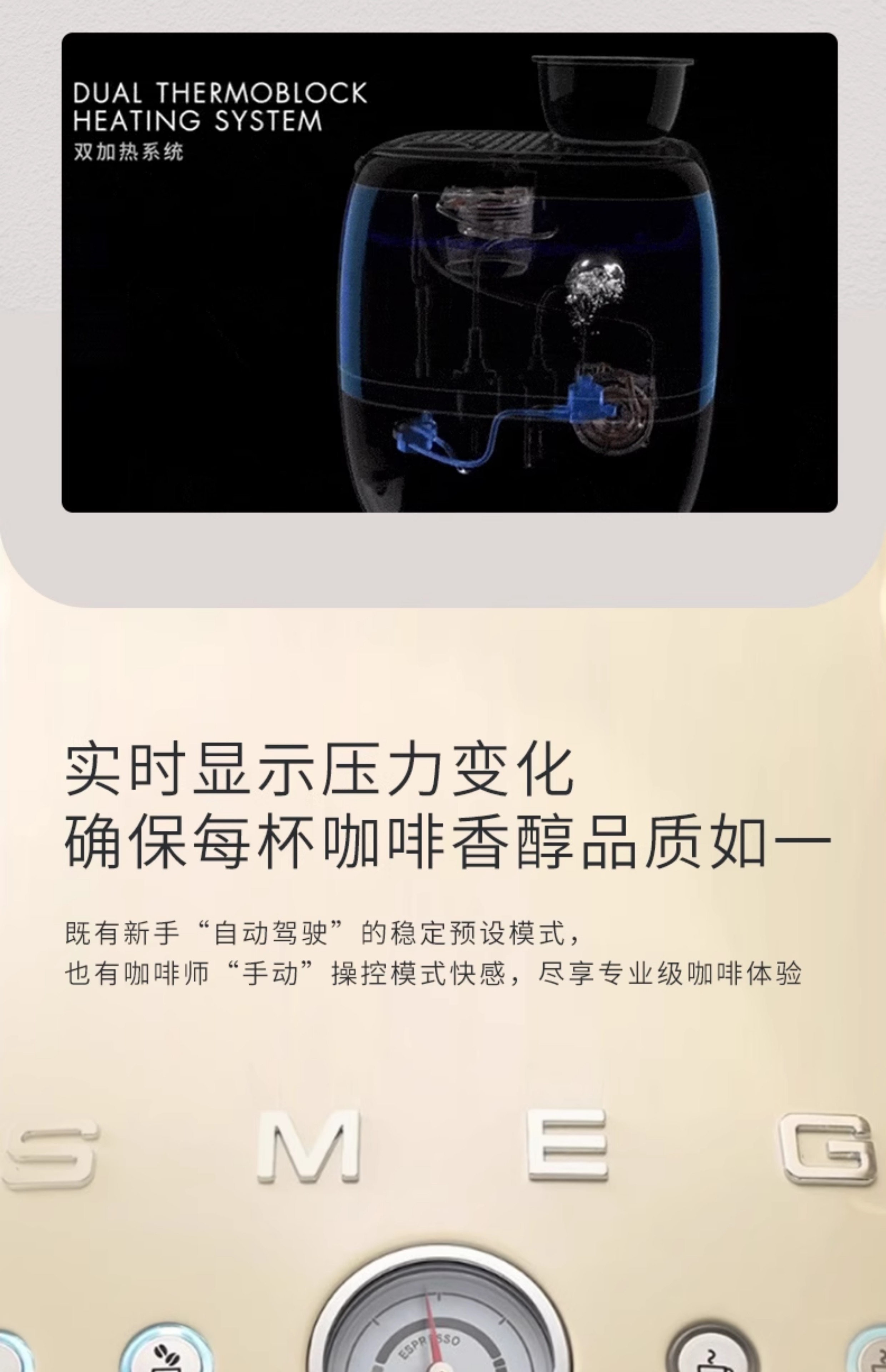 SMEG/斯麦格 EGF03咖啡机研磨一体家用专业级意式料理机蒸汽打奶泡